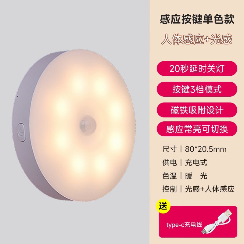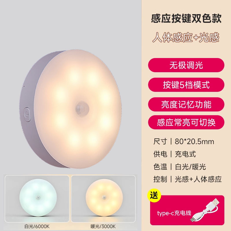 智能人体感应灯泡节能家无线自粘充电式小夜灯宿舍楼道照明床头灯