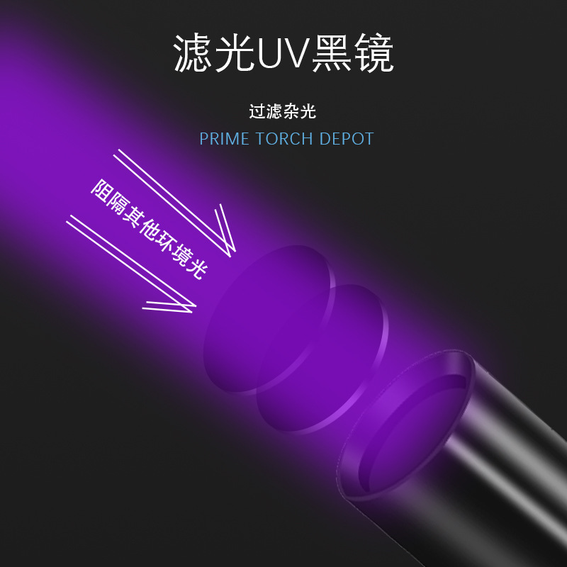 跨境365nm检测黄曲霉菌猫癣蝎子紫光灯手电筒 鉴定玉石验钞专用