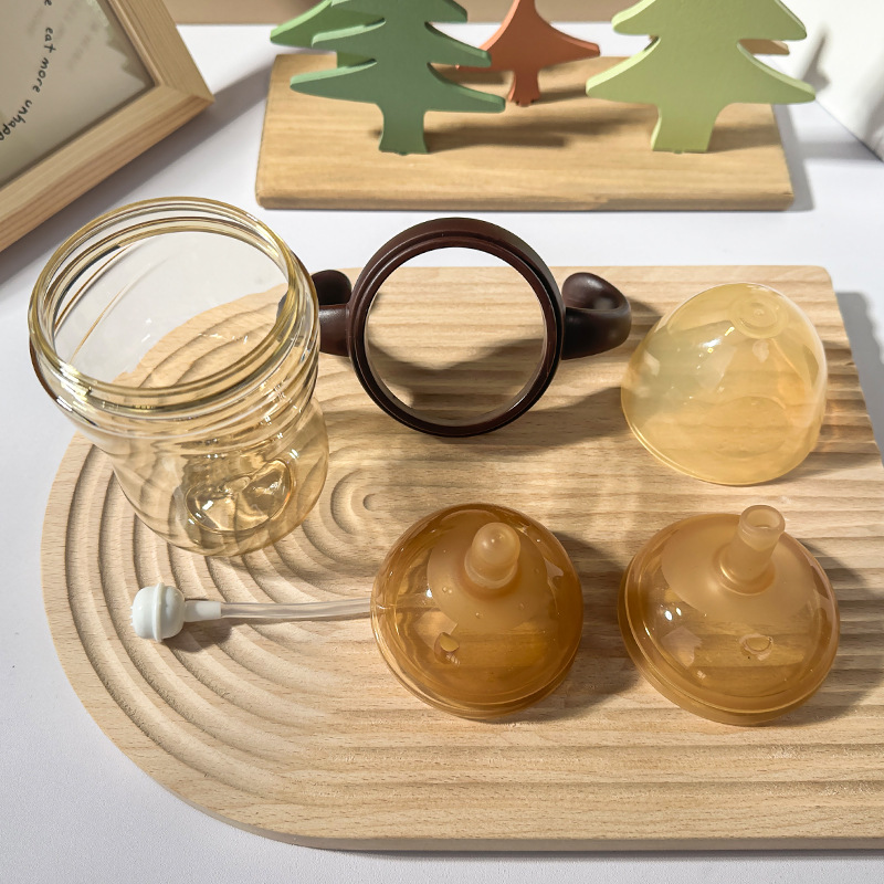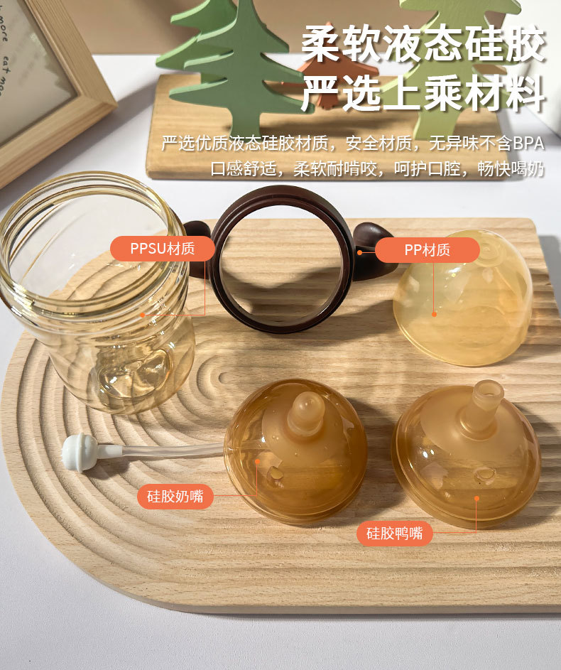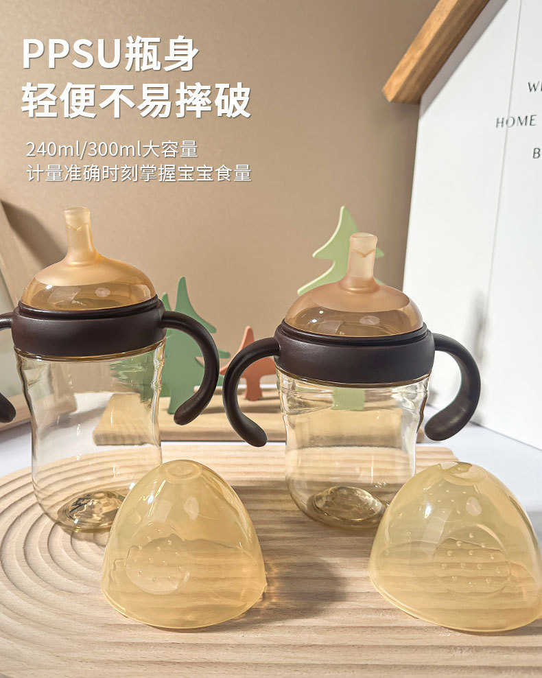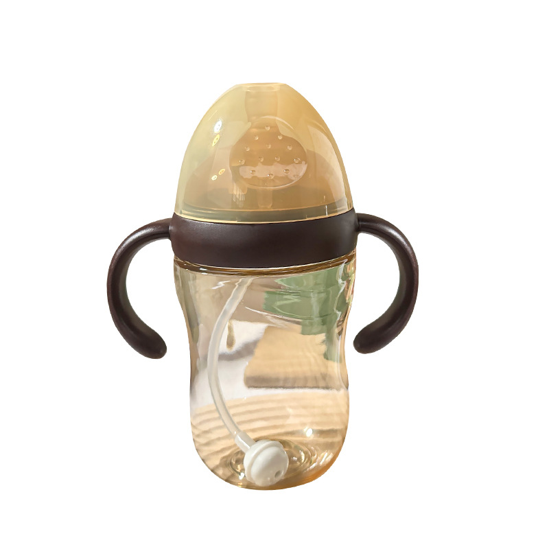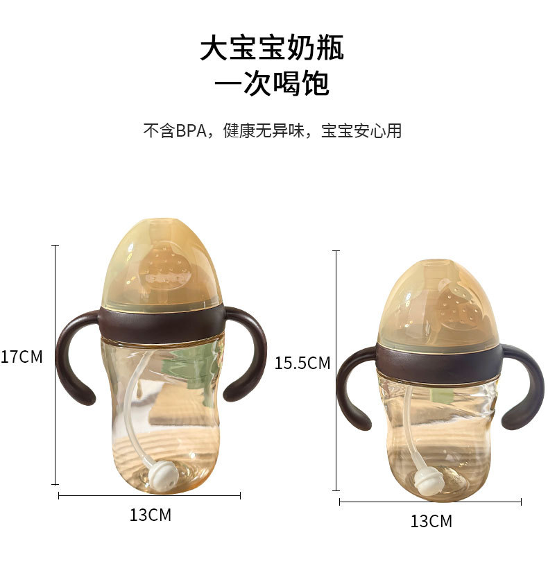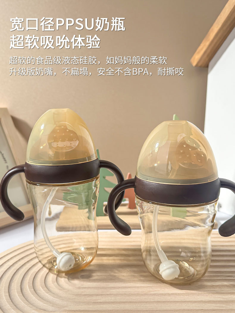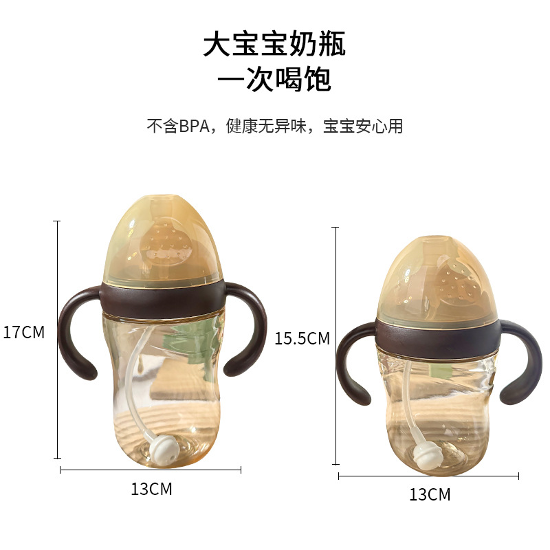 高端新款宝宝PPSU奶瓶宽口径大容量水杯带吸管手柄耐摔防胀气批发