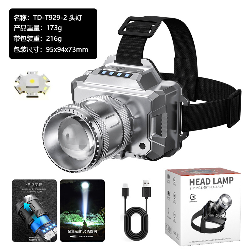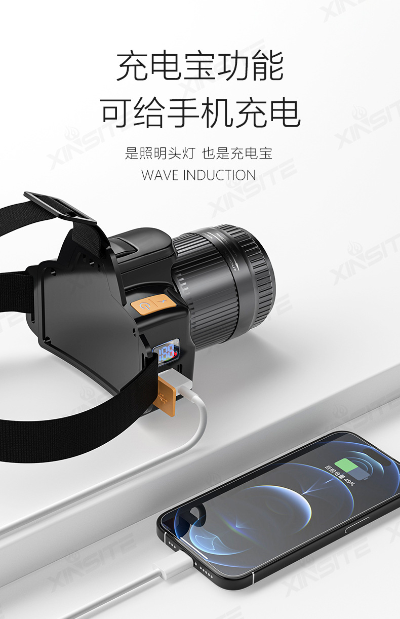 新款跨境头戴式白激光头灯户外多功能数显输出智能感应调焦头灯