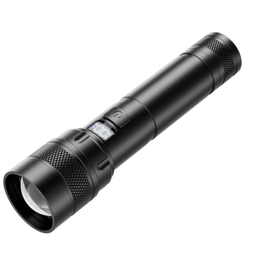 跨境电显家用户外超亮远射便携多功能手电白激光充电强光手电筒