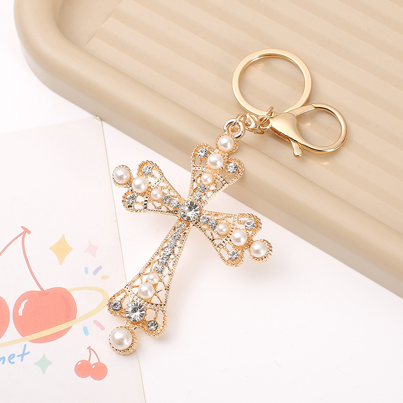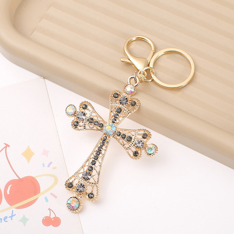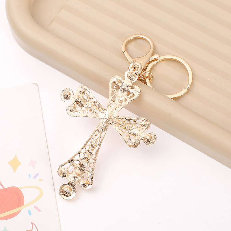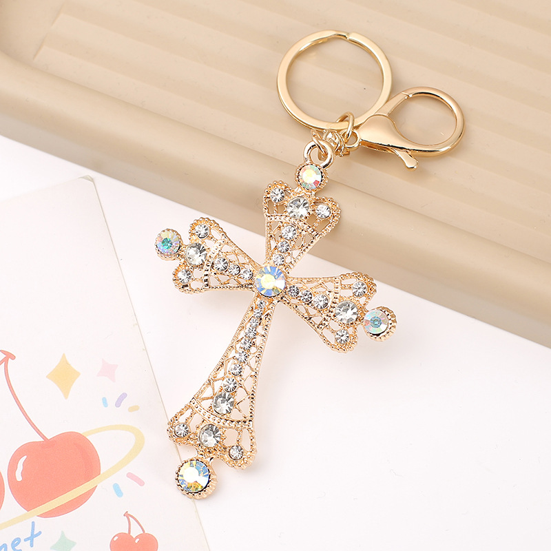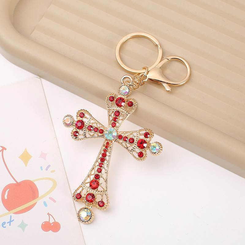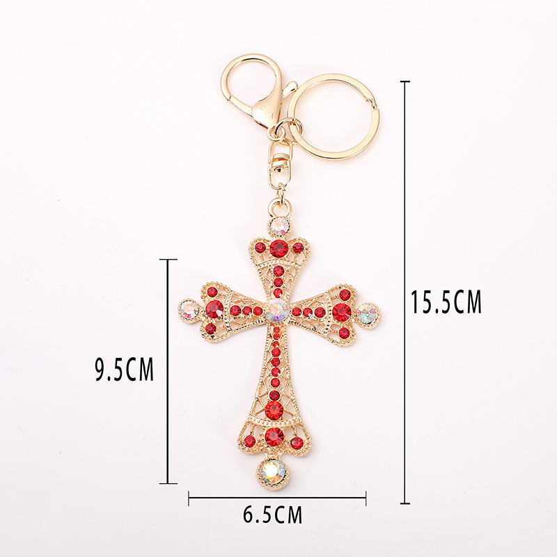 严选潮流新款个性满钻十字架造型汽车钥匙扣挂件时尚包包挂饰礼品