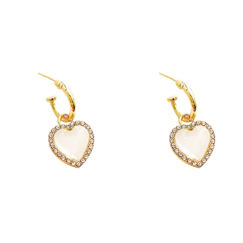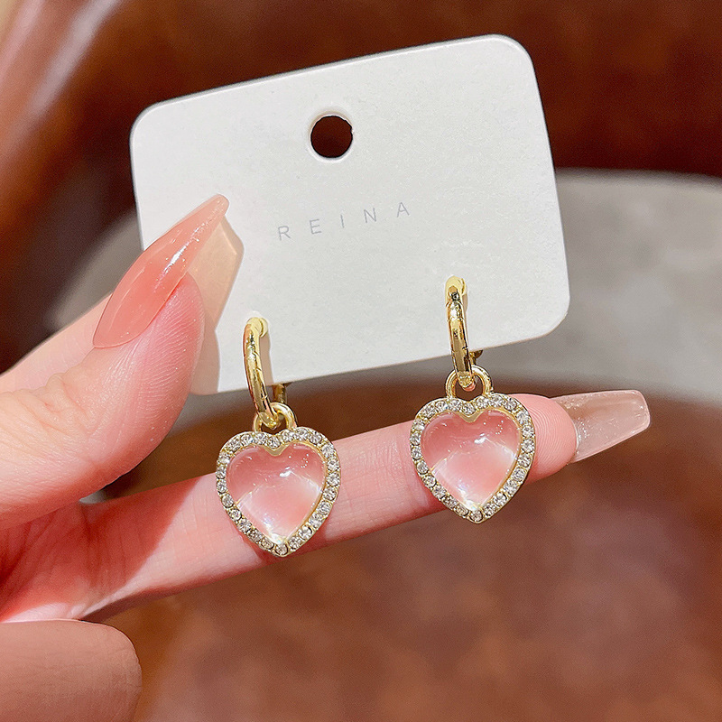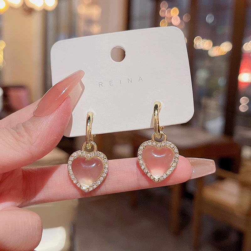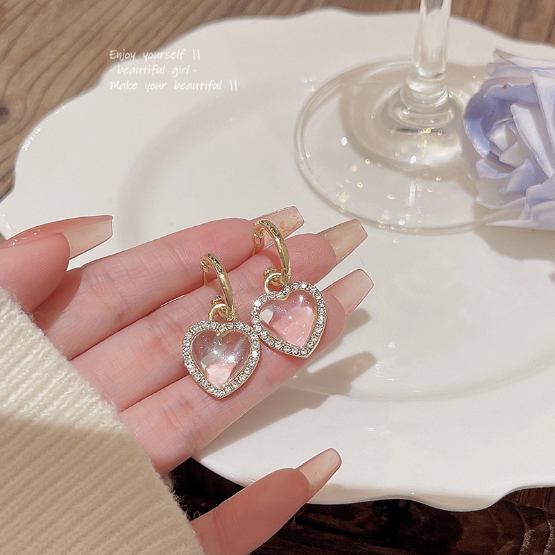 925银针高级设计感透明水晶爱心耳环女ins潮精致镶钻耳钉网红耳饰