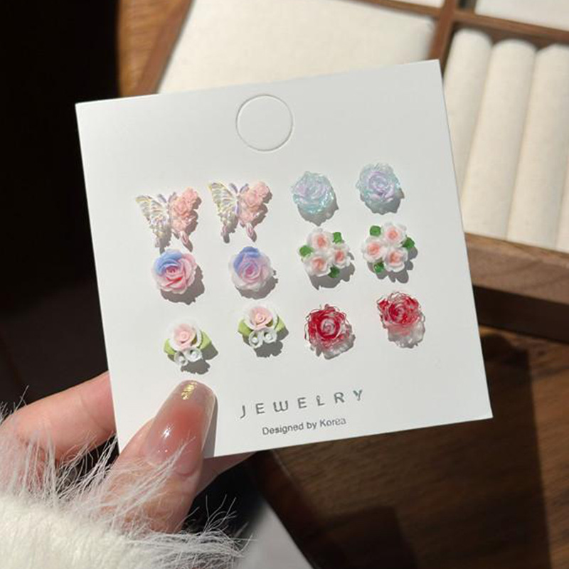 春夏爆款小清新花朵耳钉女学生养耳洞套装栀子花耳环百搭气质耳饰