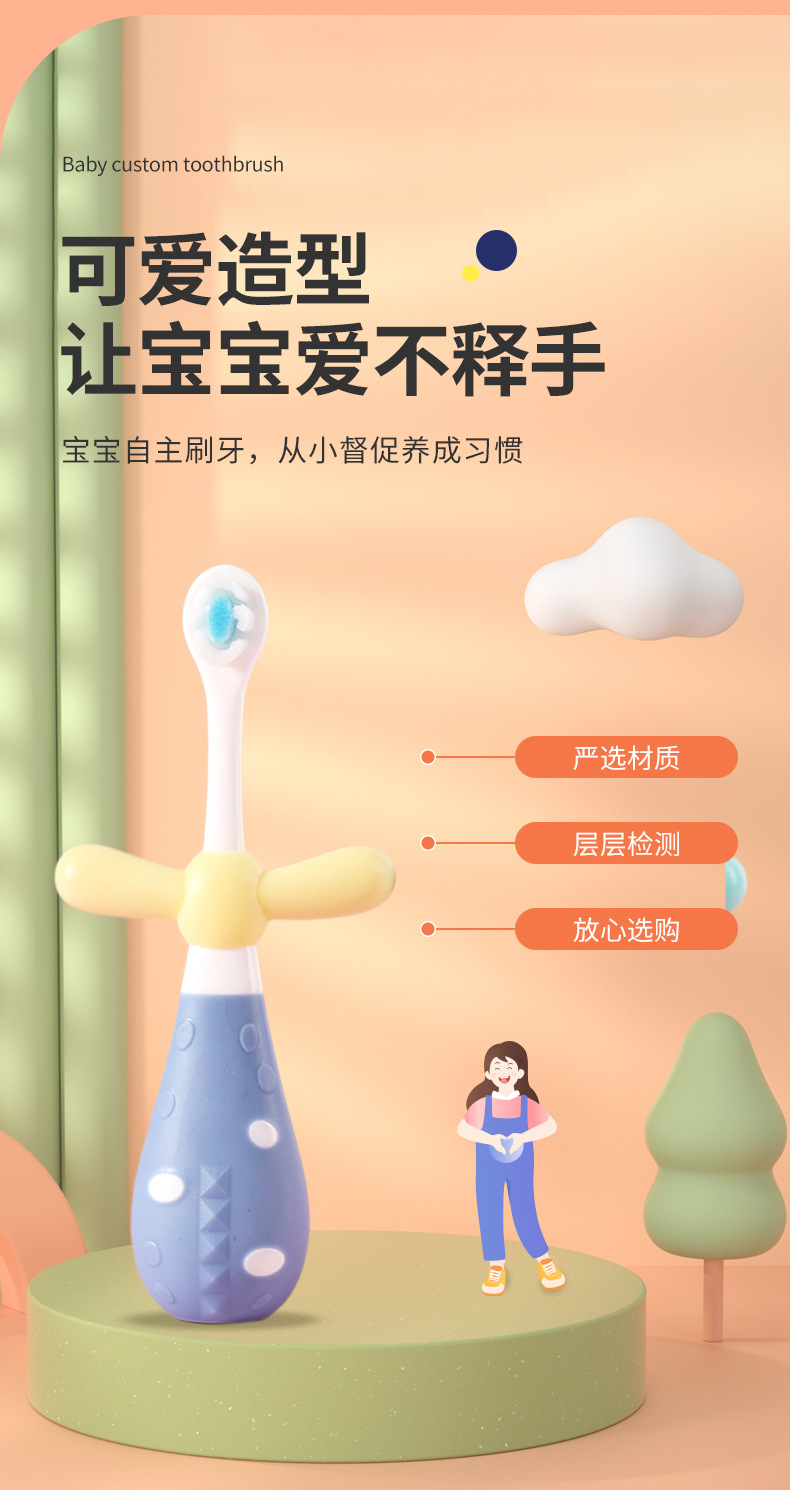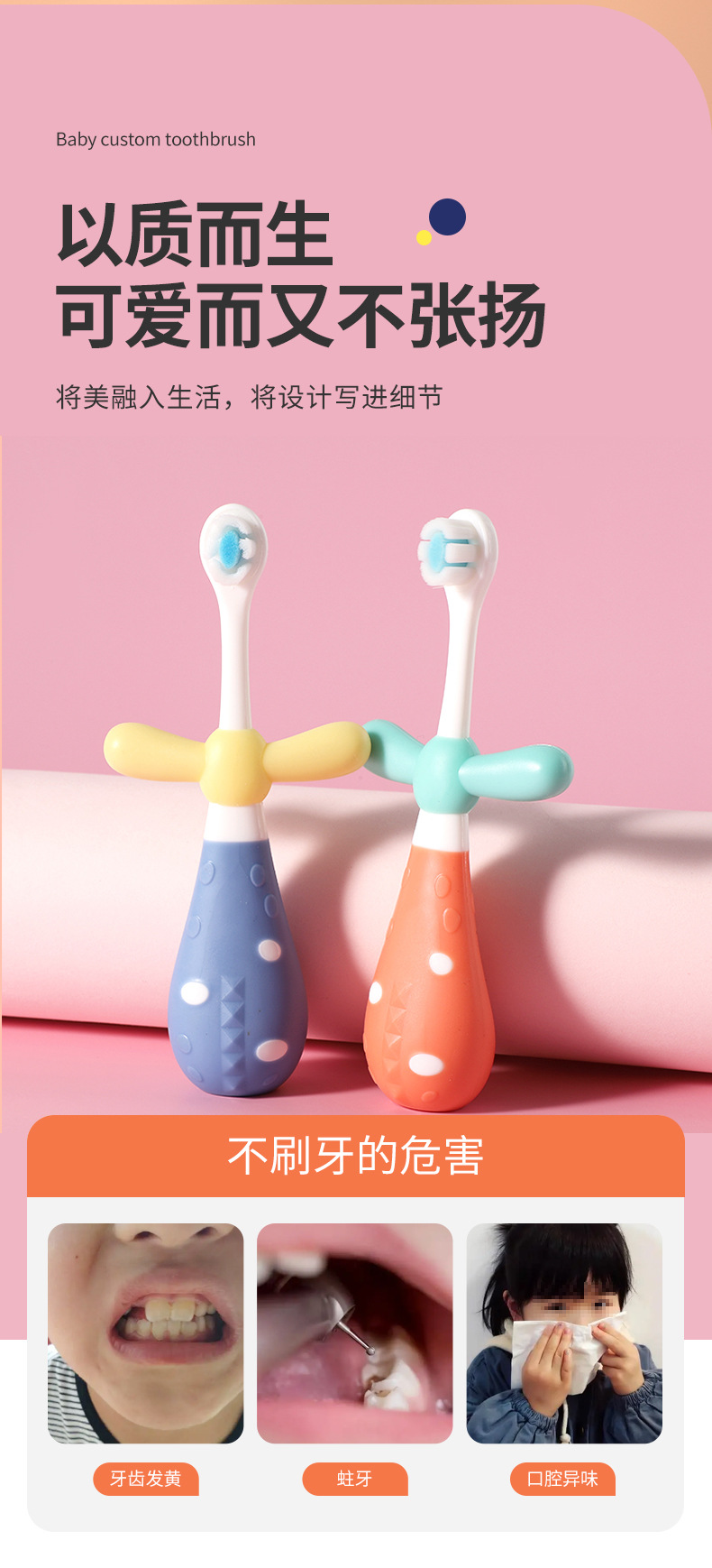 牙刷软毛可爱儿童牙刷婴儿清洁护齿软毛翅膀易握防卡喉万毛牙刷