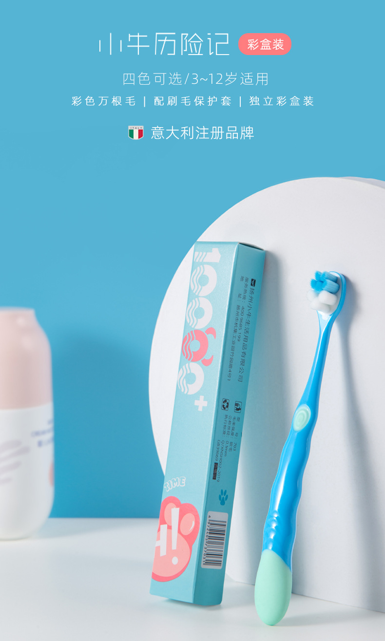 小牛历险记儿童牙刷3-12岁万根毛猫爪花式牙刷软毛批发正品单支装