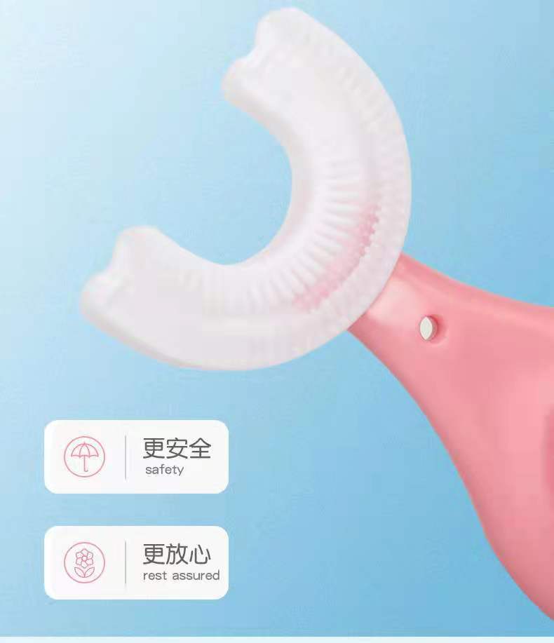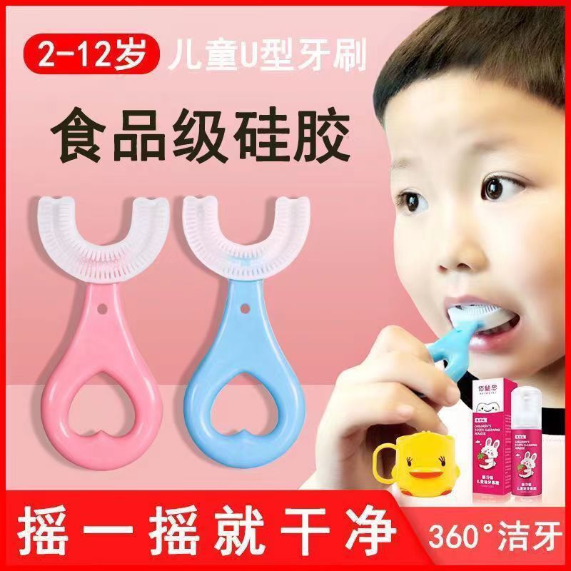 新款儿童牙刷0-6岁婴幼儿超声波软毛牙刷U形硅胶口含手动宝宝牙刷