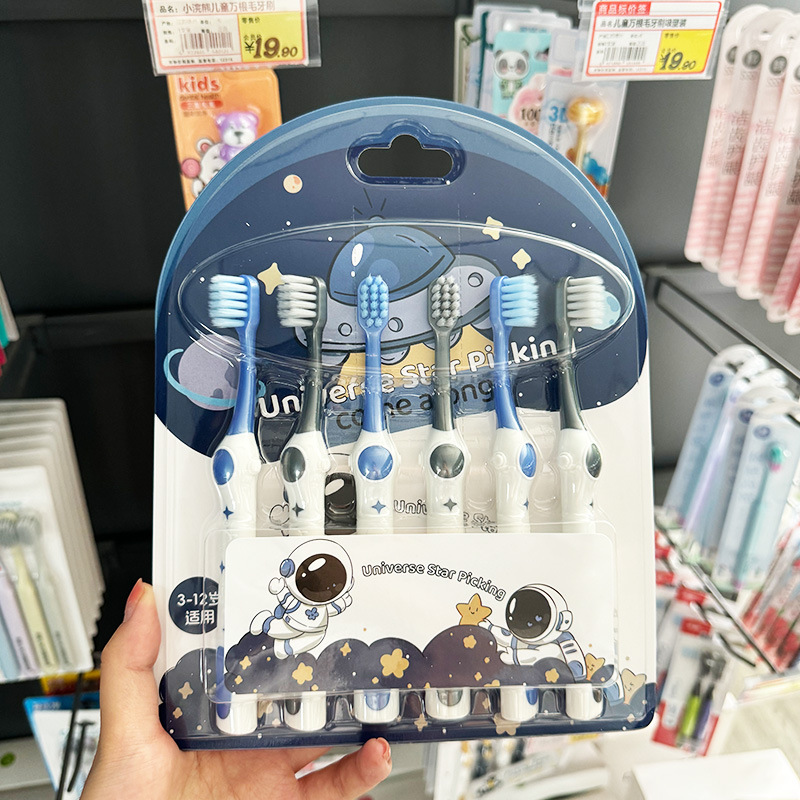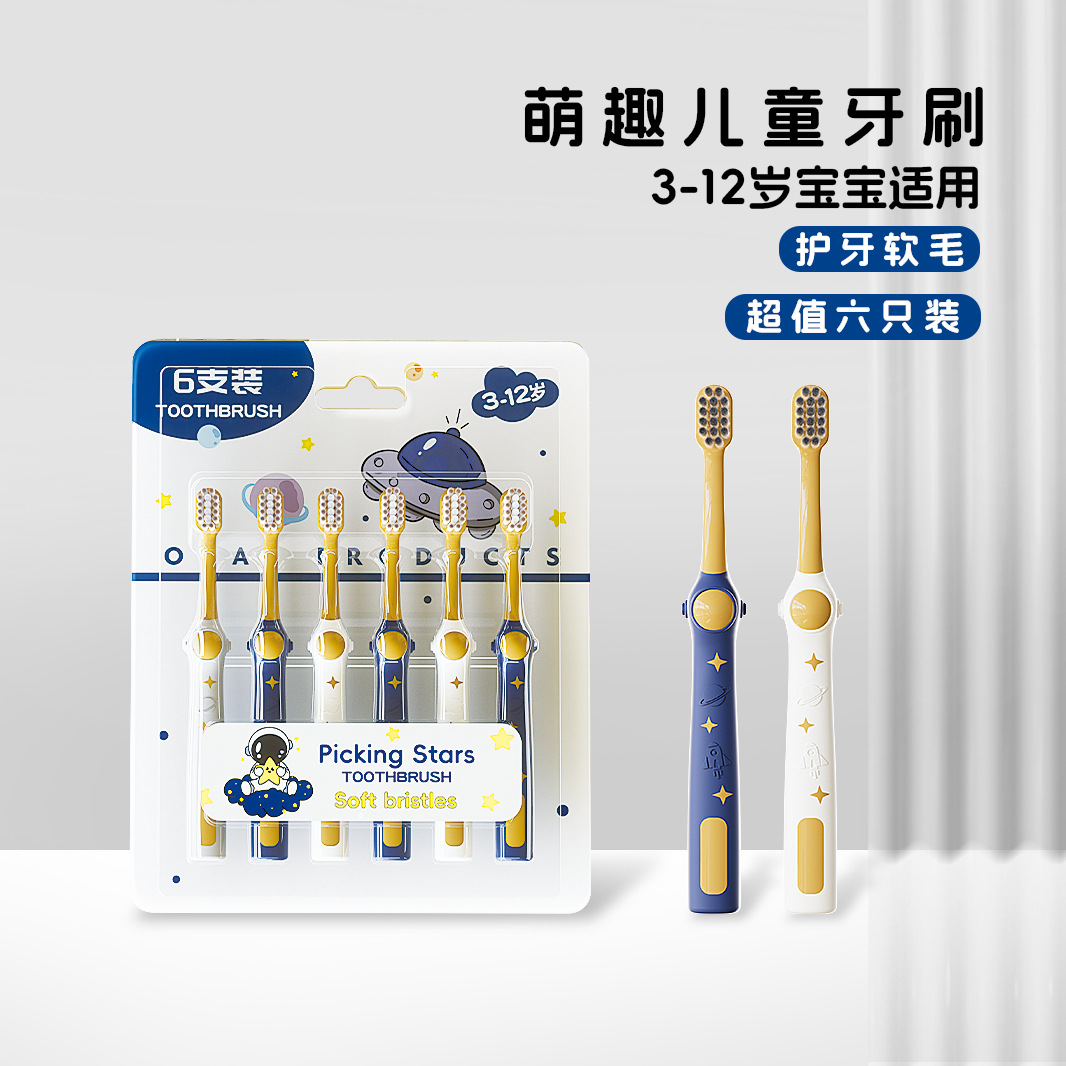 抖音爆款太空人儿童牙刷细密软毛护龈3-6-12岁6支装贴牌厂家直销