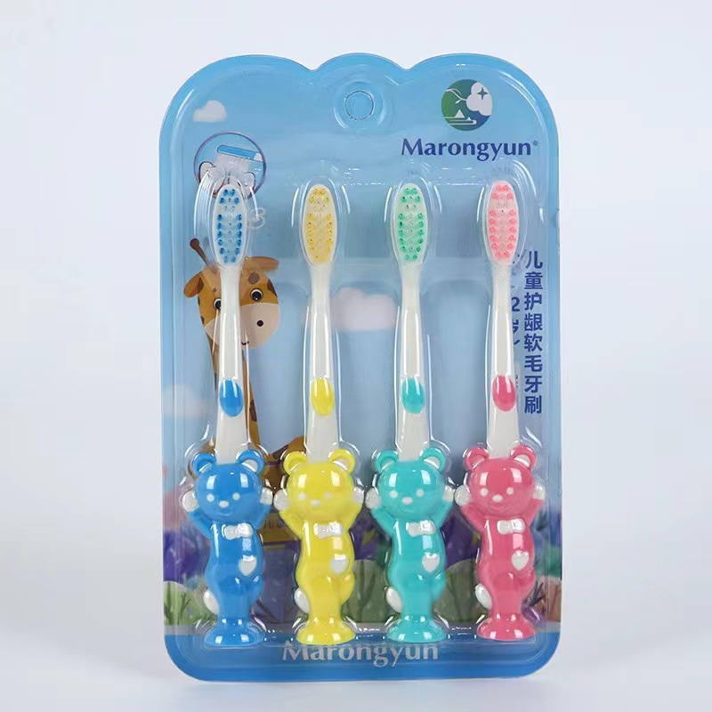 新款推荐儿童卡通熊软毛牙刷四支袋装可爱宝宝口腔护理牙刷批发
