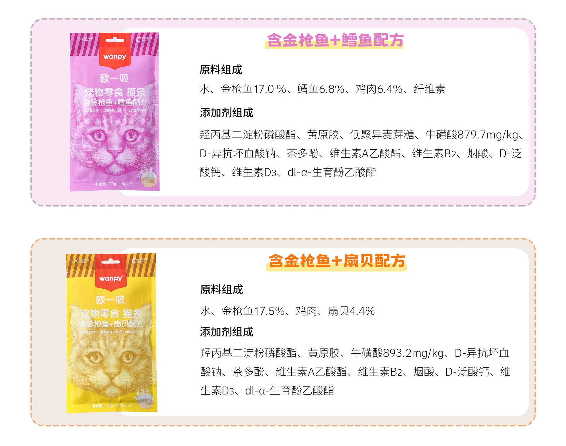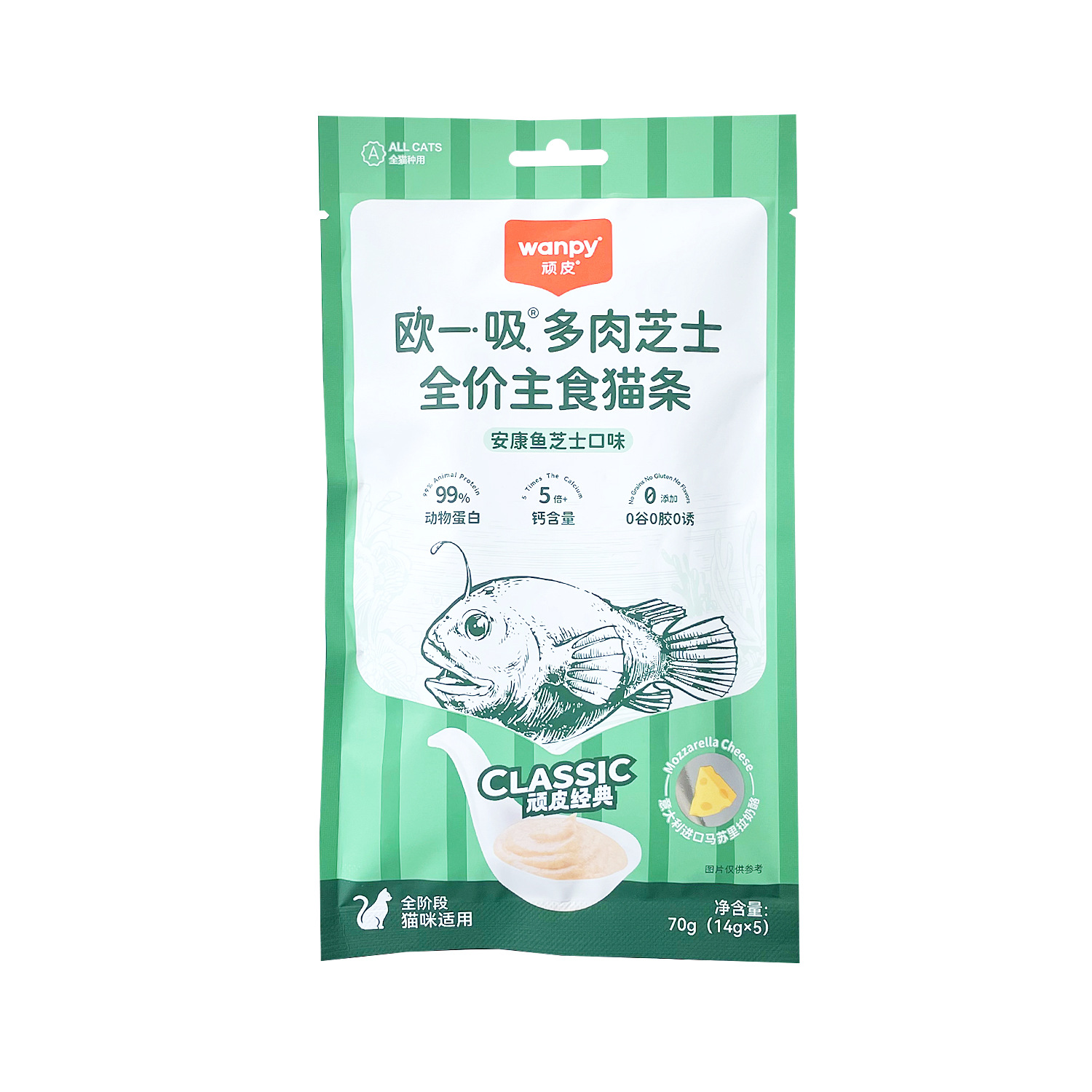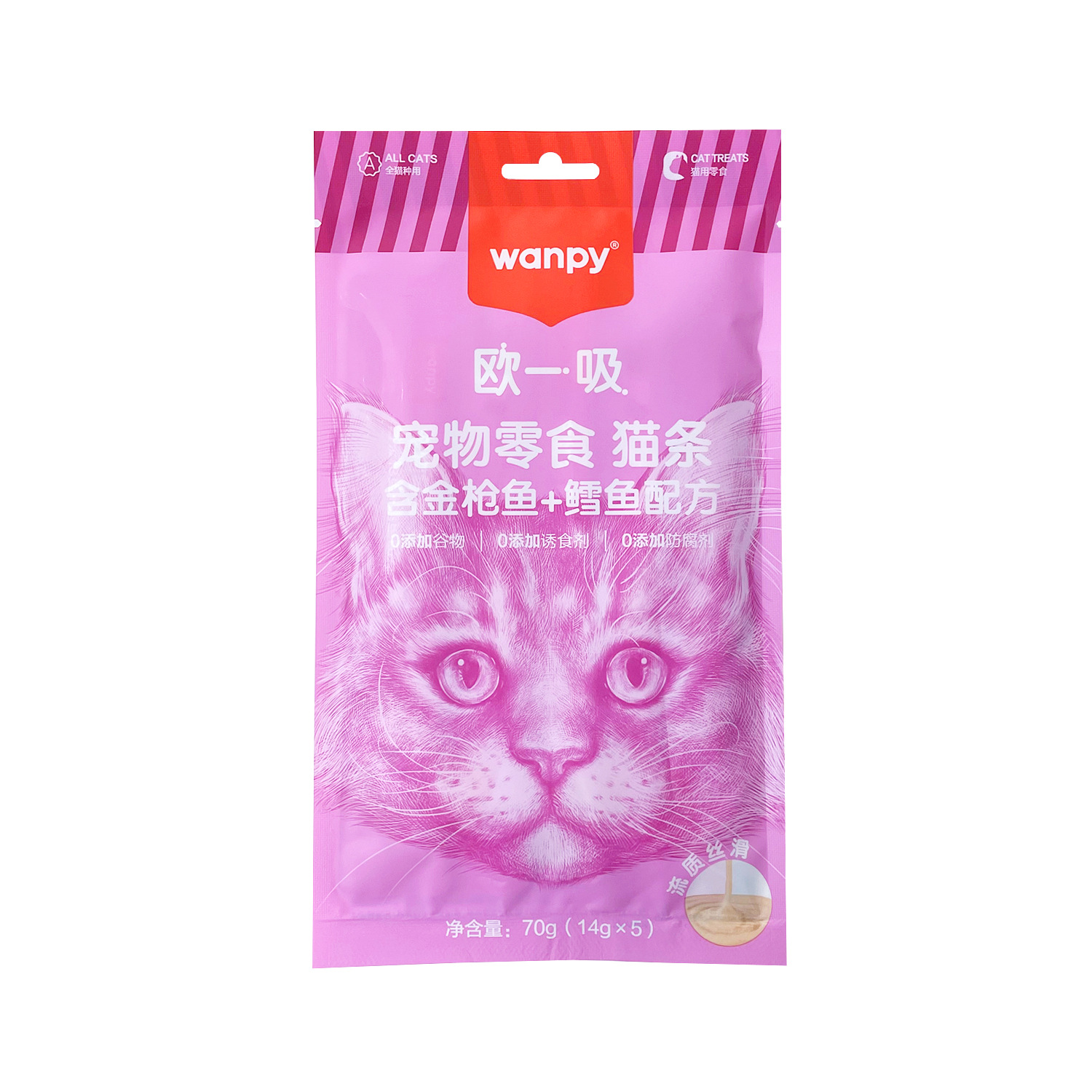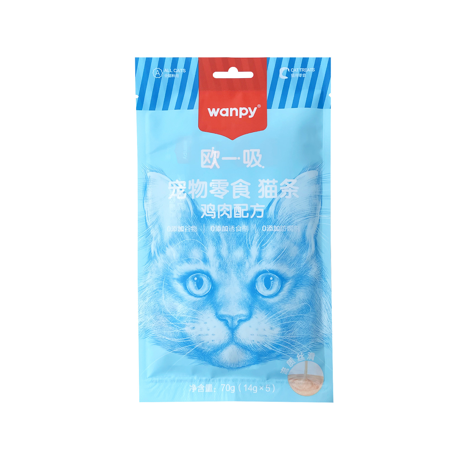 Wanpy顽皮猫条欧一吸幼猫成猫湿粮拌粮营养发腮长胖猫咪零食70g
