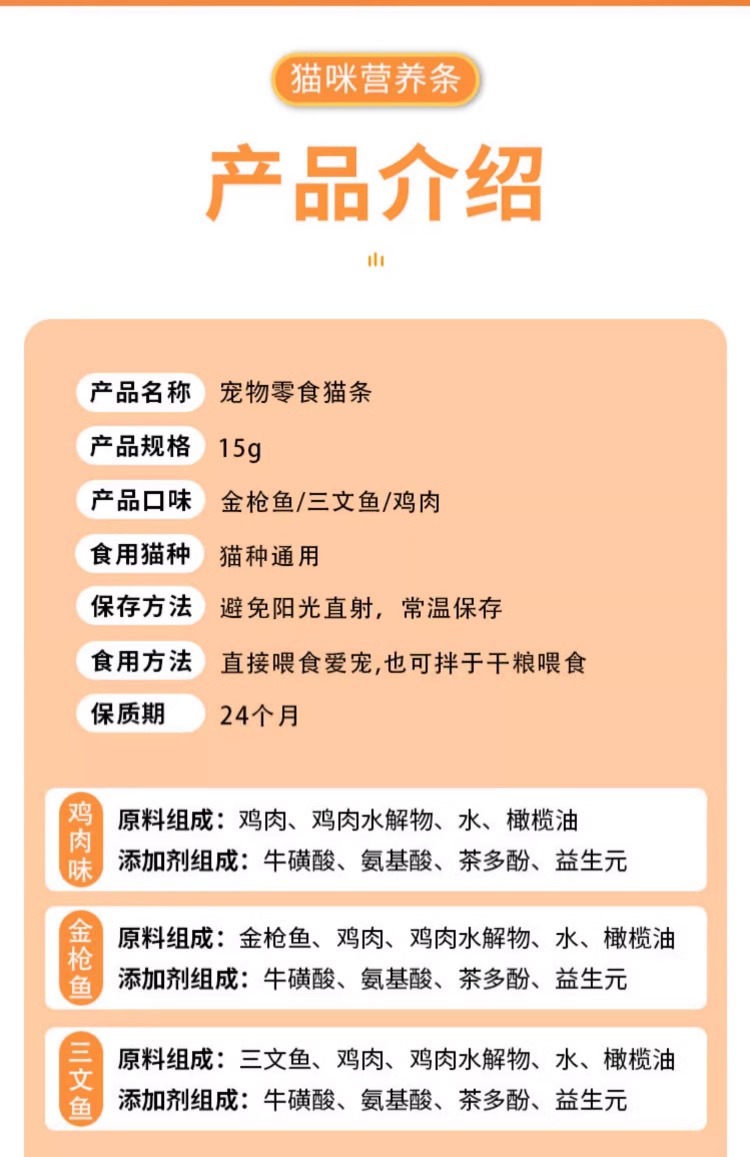 | pet cat strip mixed flavor (15 pcs)(宠物猫条混合味(15支装)) | USD $1.23 | 9960 bag available |