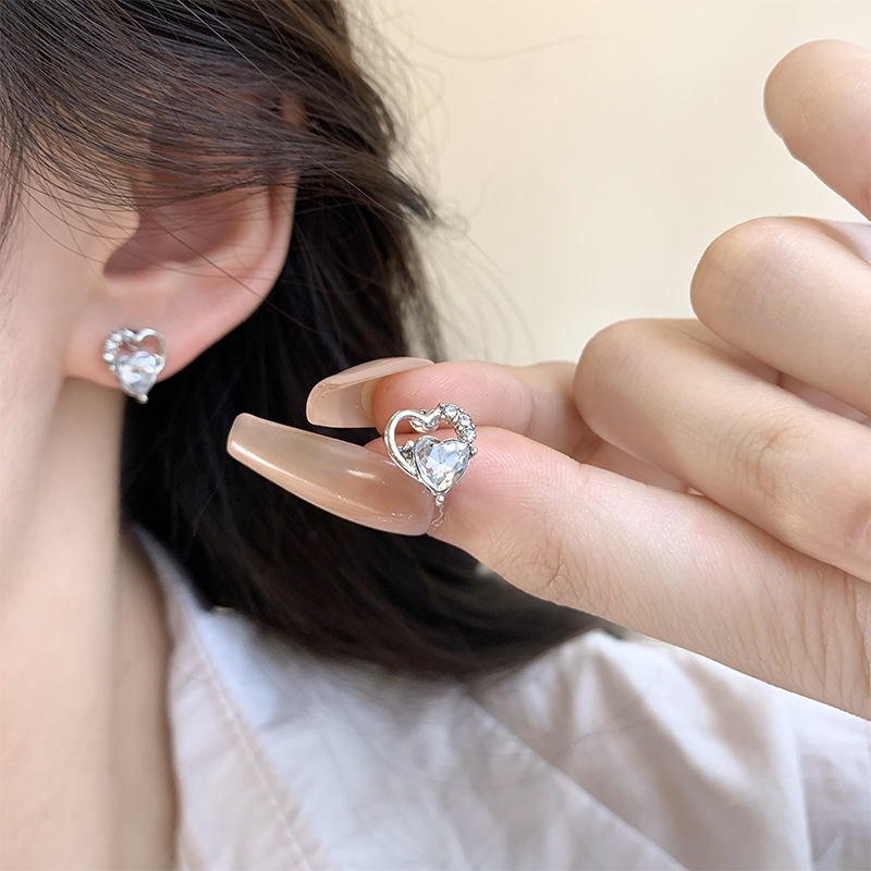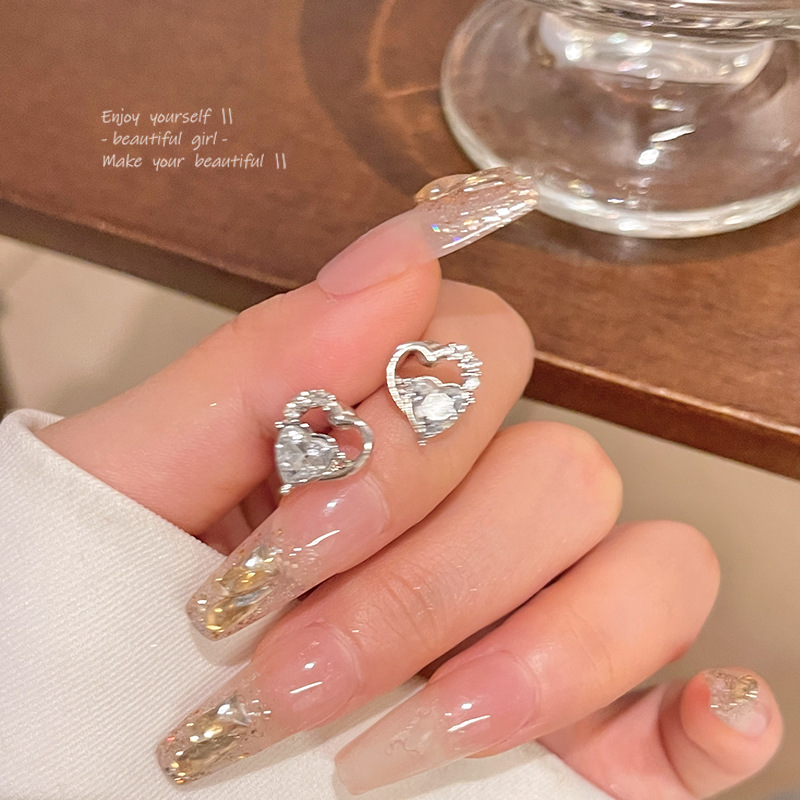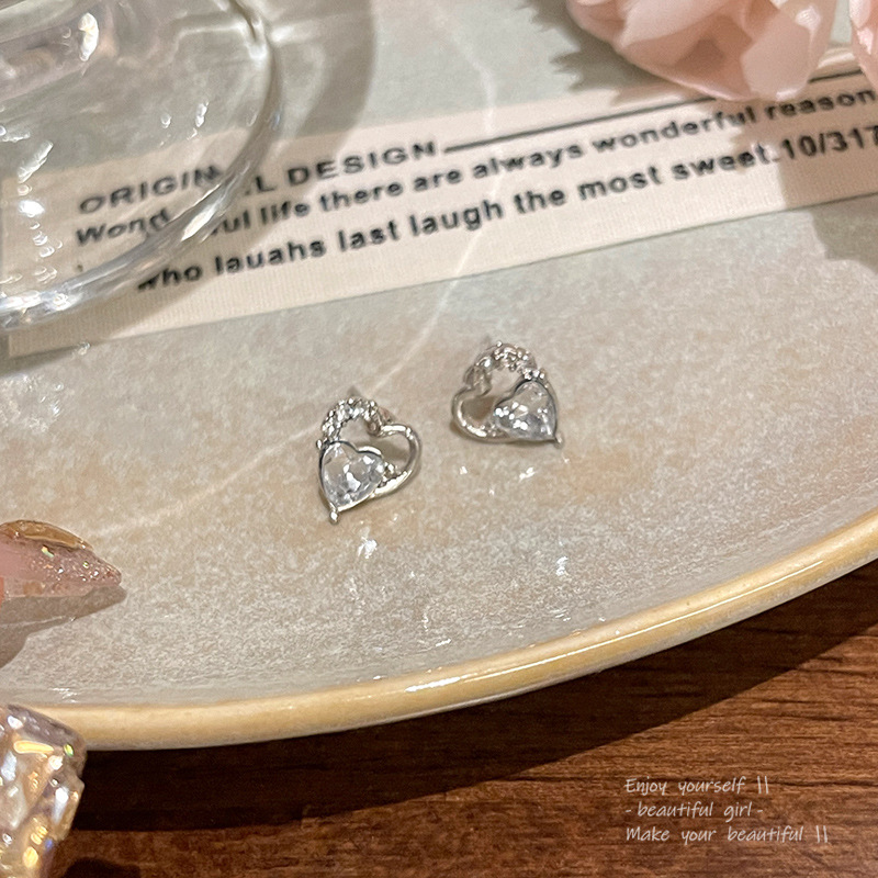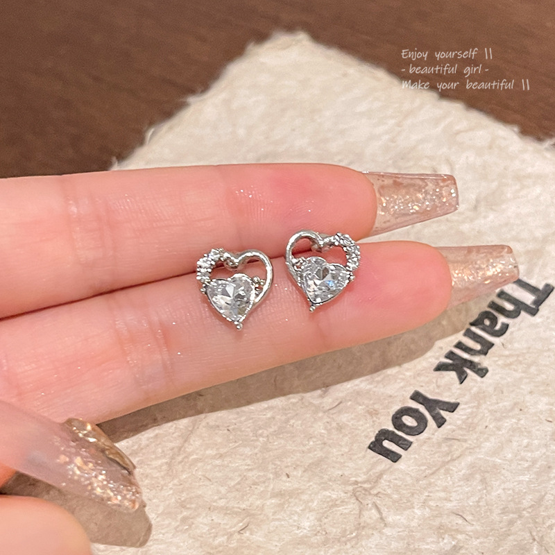 S925银针轻奢小众高级感爱心耳钉独特高级设计感镂空气质锆石耳环
