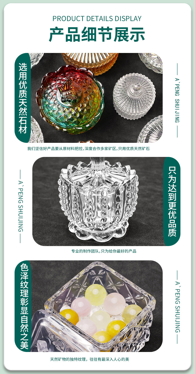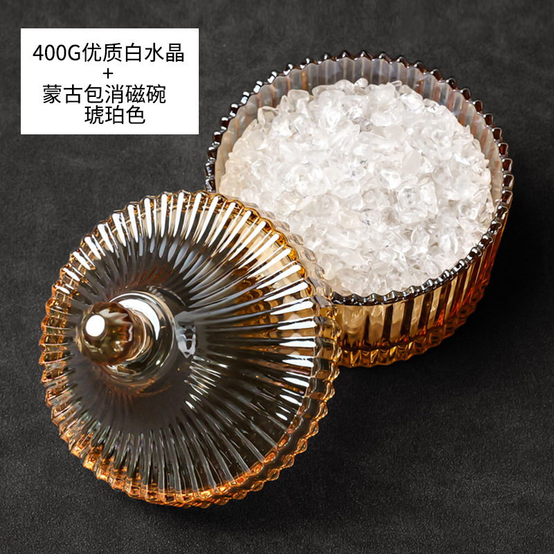 天然水晶碎石消磁碗 糖果盅首饰储物罐 消磁石净化容器收纳盒摆件