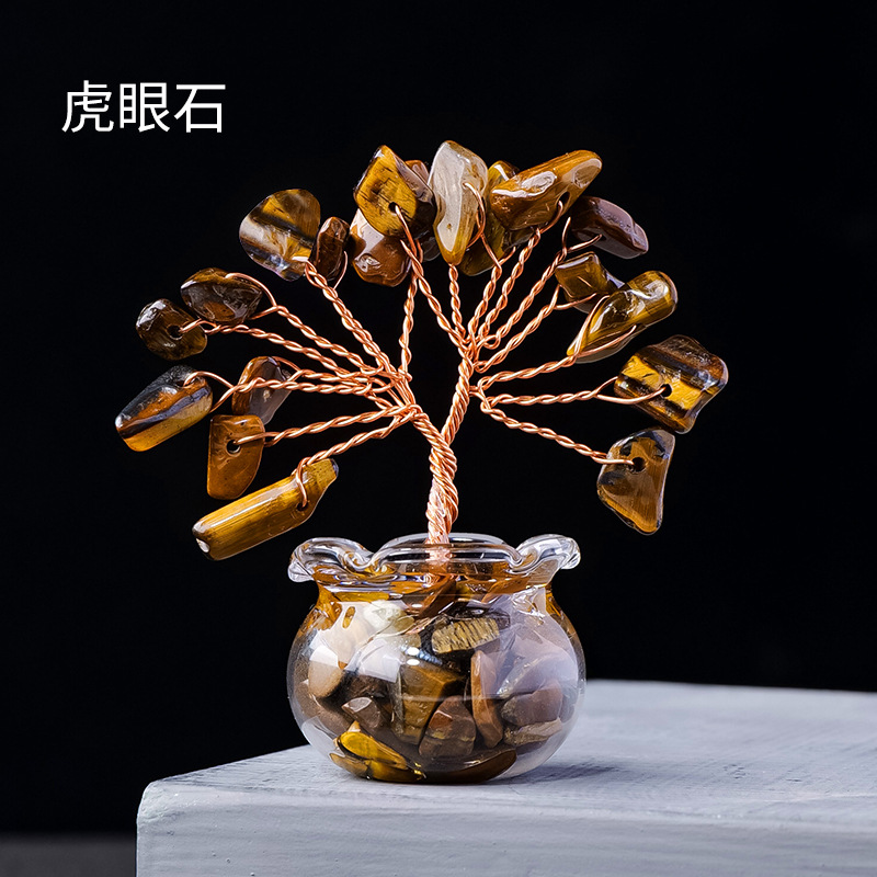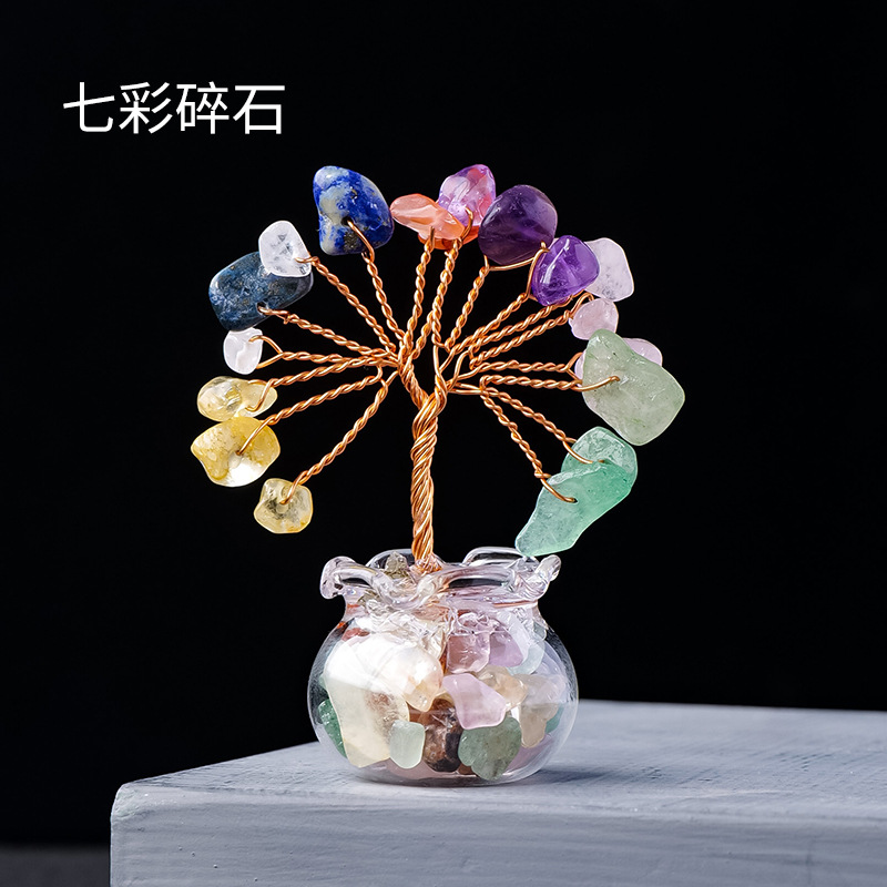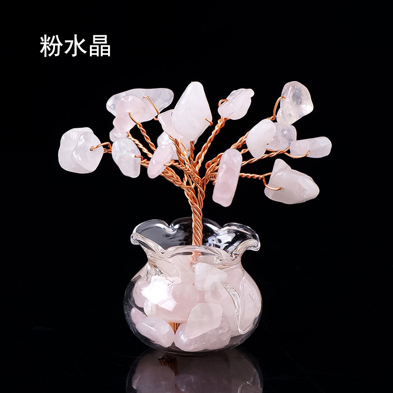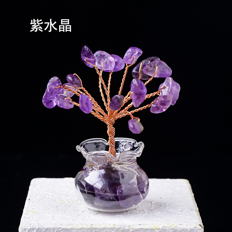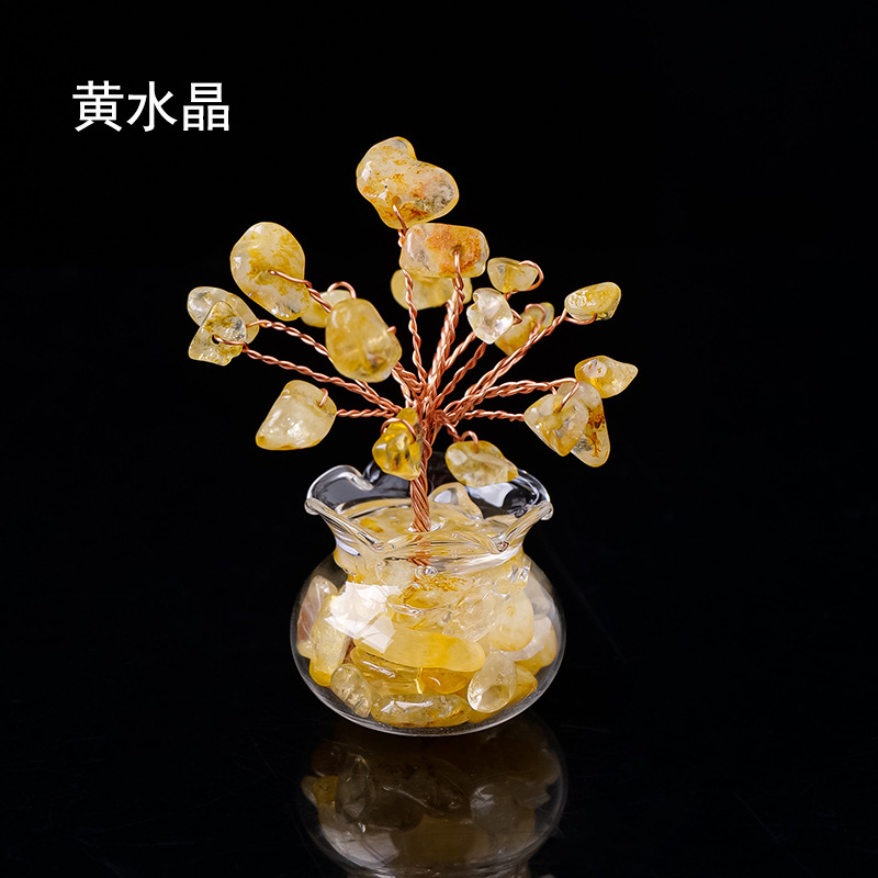 跨境水晶树批发天然水晶碎石发财树手工编家居车载装饰工艺品摆件