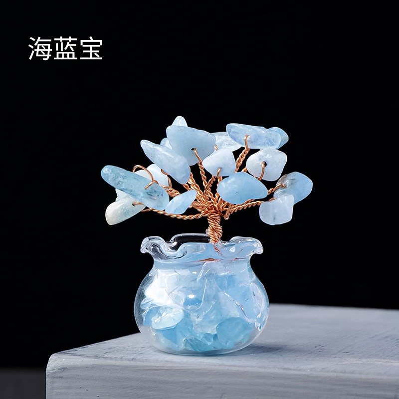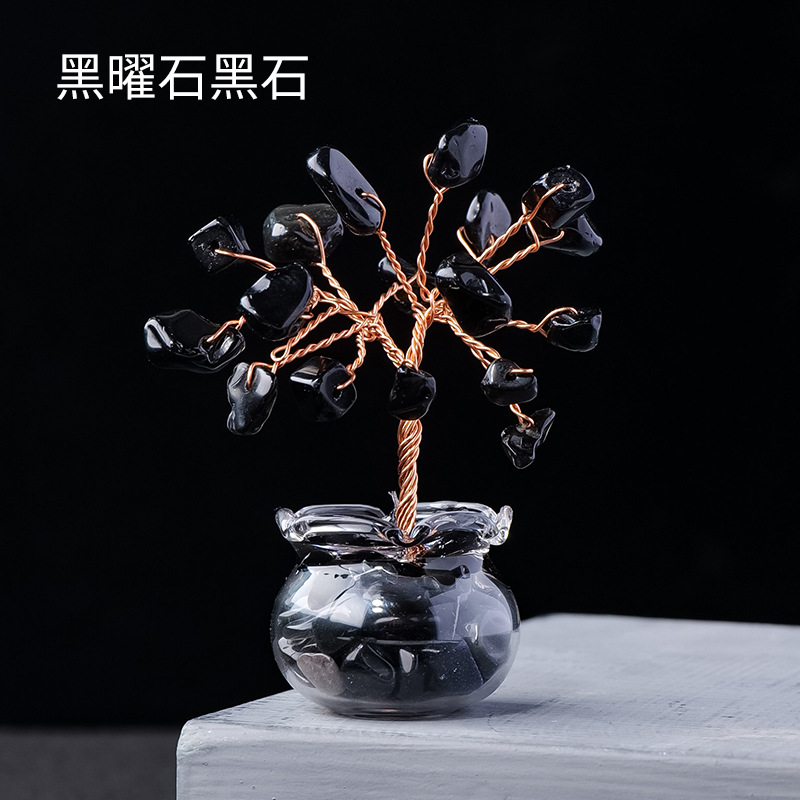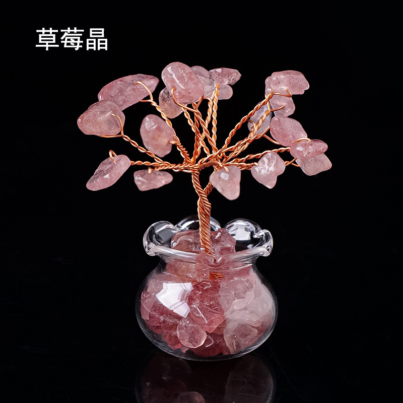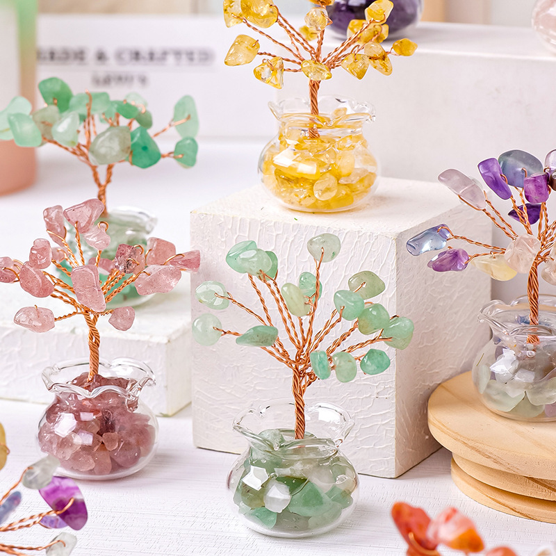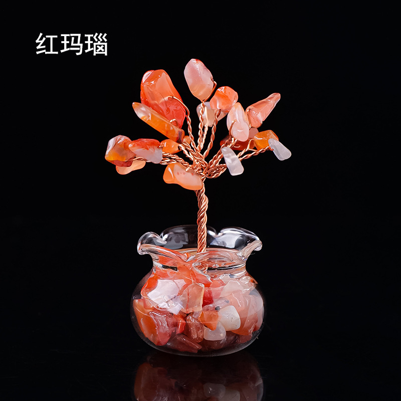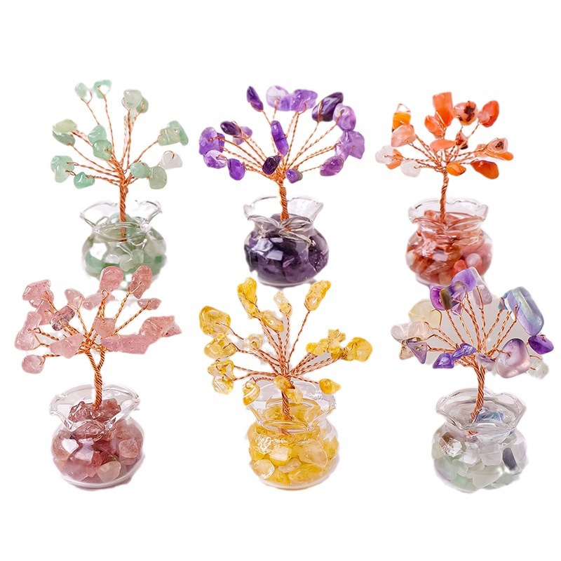 跨境水晶树批发天然水晶碎石发财树手工编家居车载装饰工艺品摆件