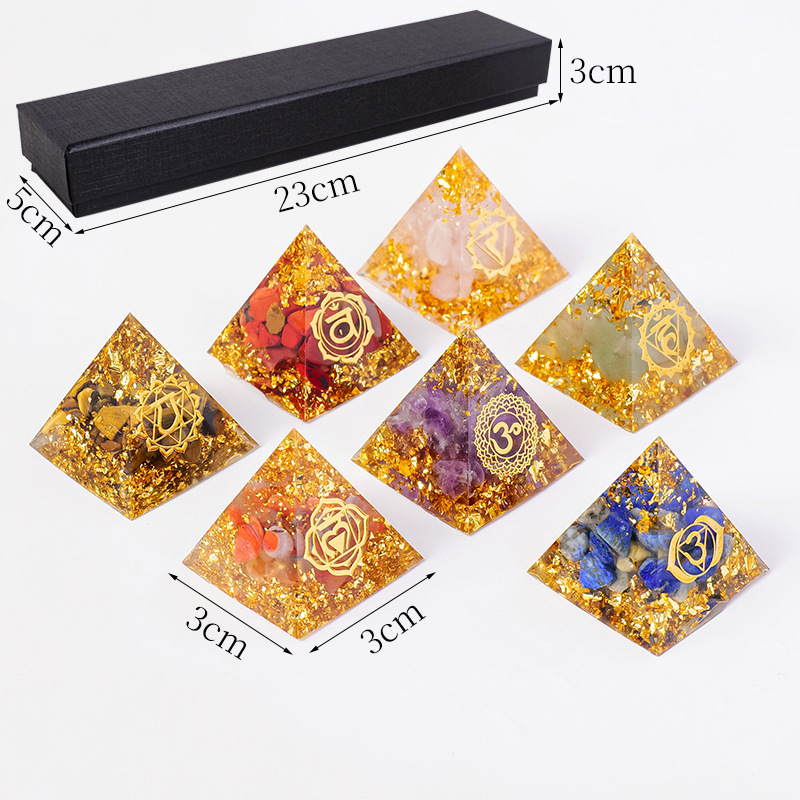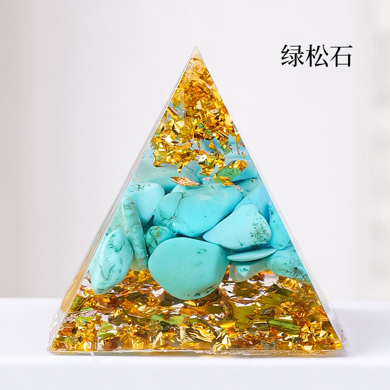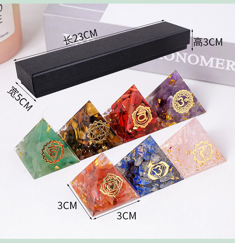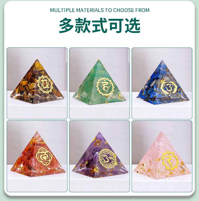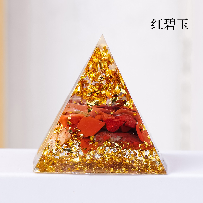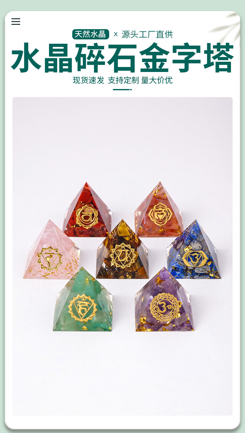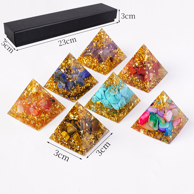 外贸新品3CM水晶碎石滴胶金字塔摆件 居家办公桌面能量塔摆件批发
