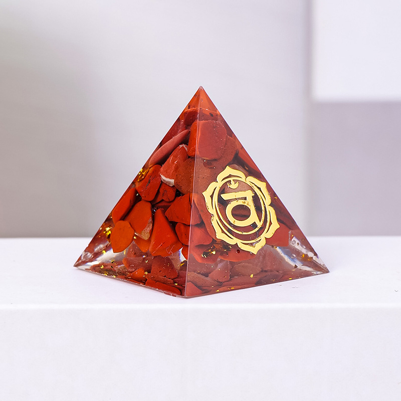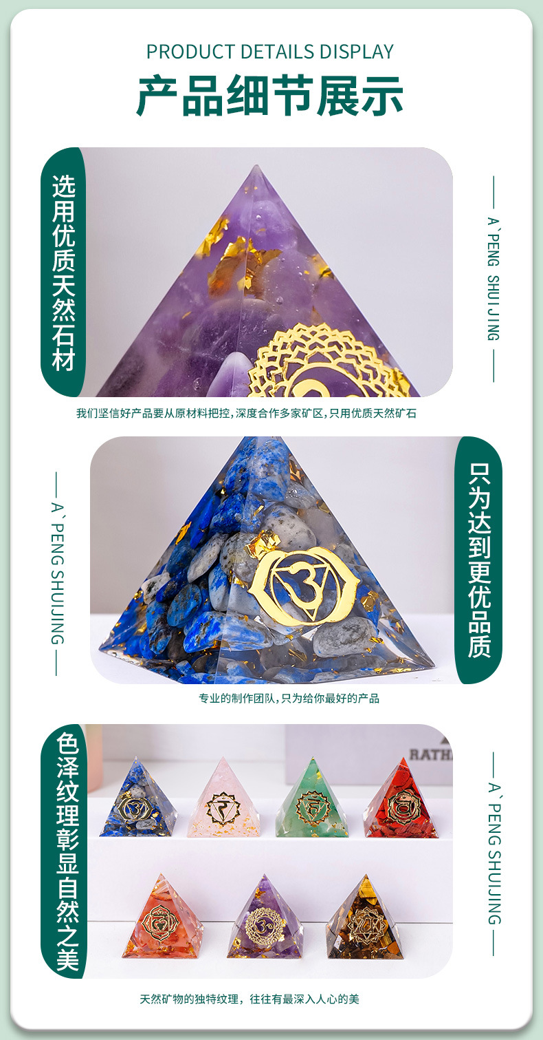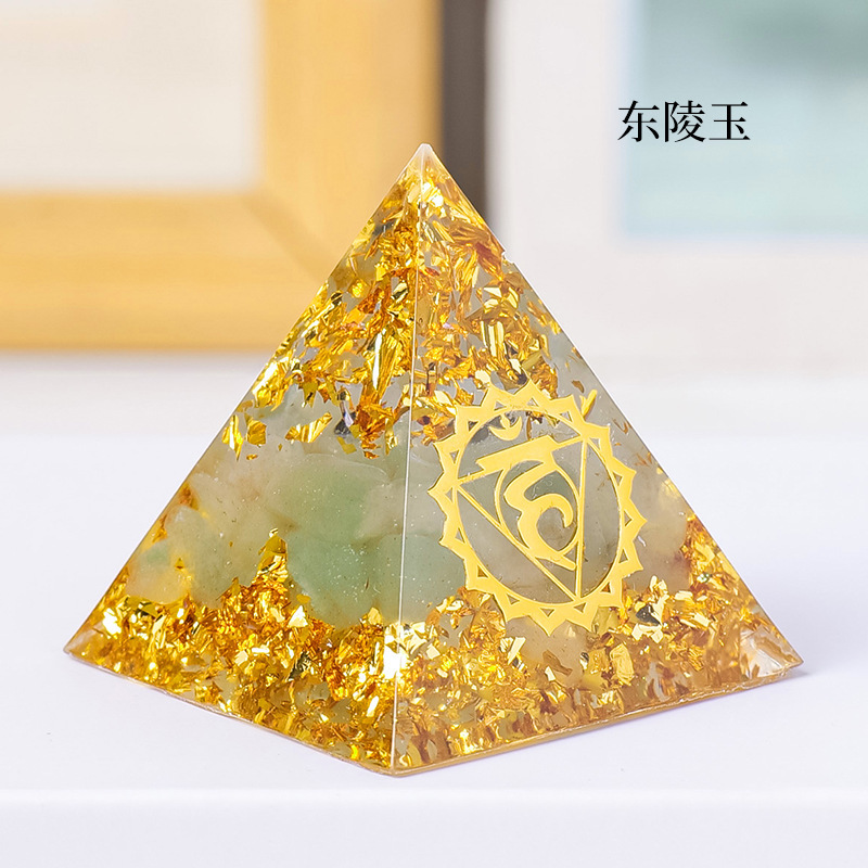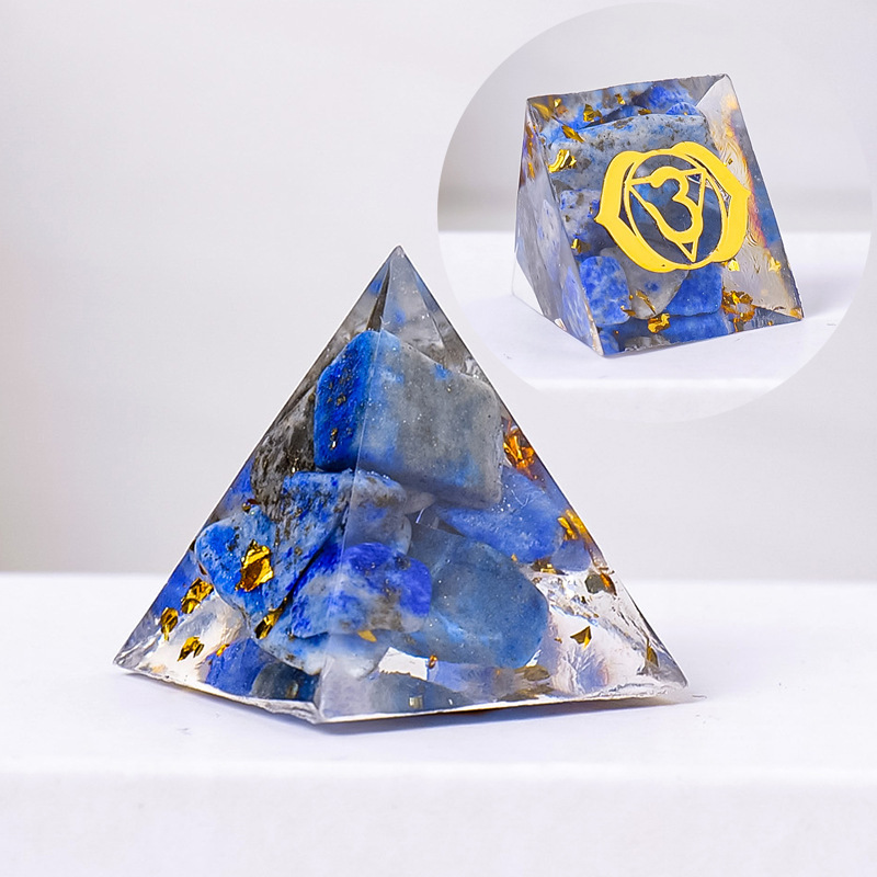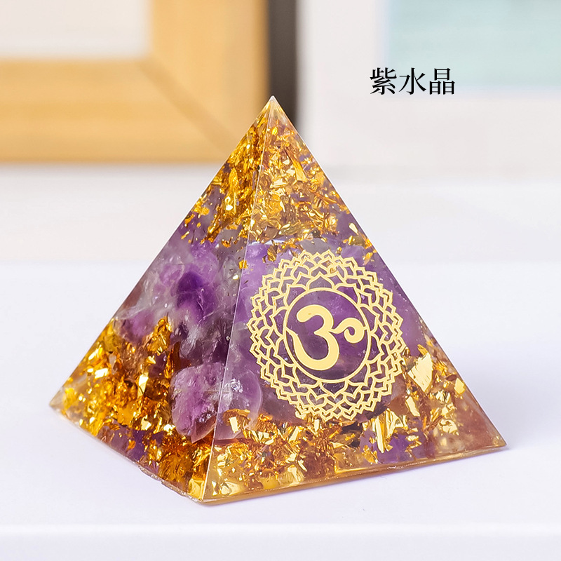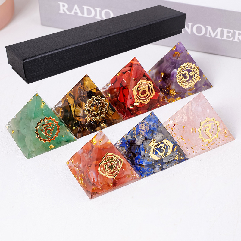 外贸新品3CM水晶碎石滴胶金字塔摆件 居家办公桌面能量塔摆件批发