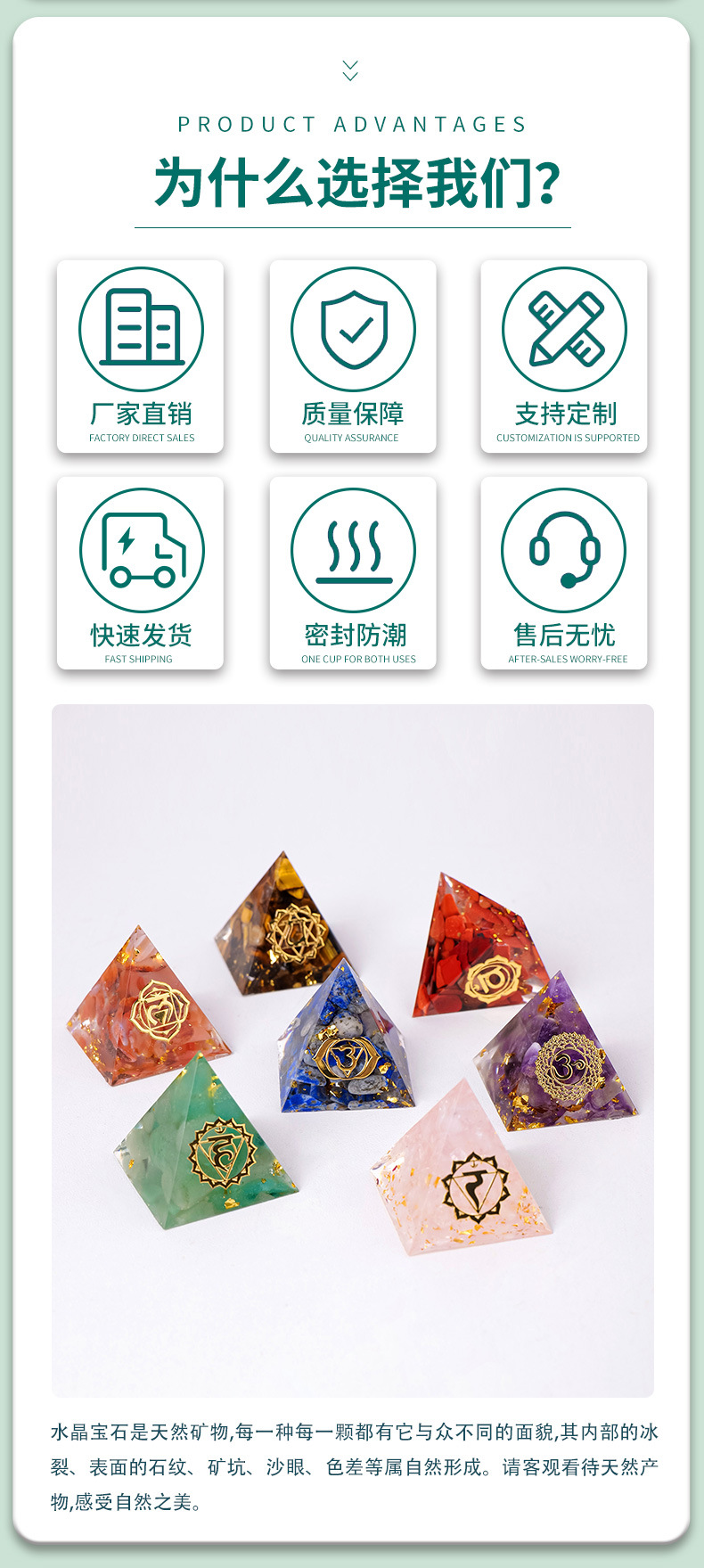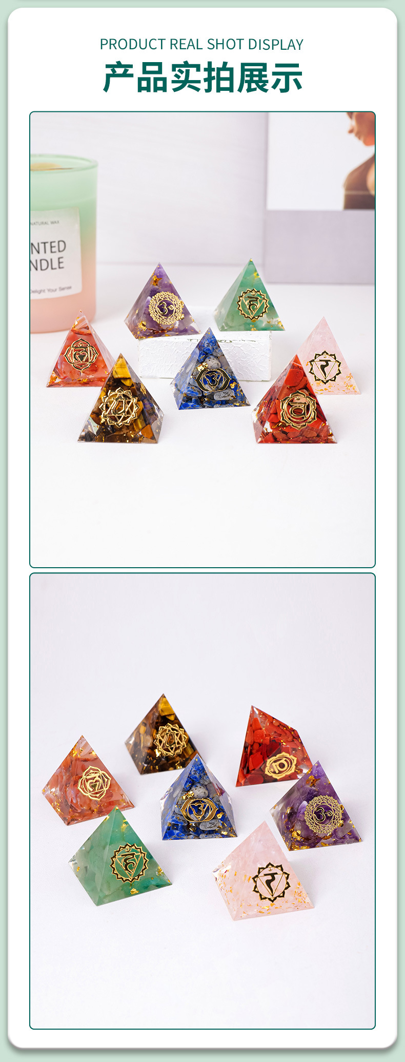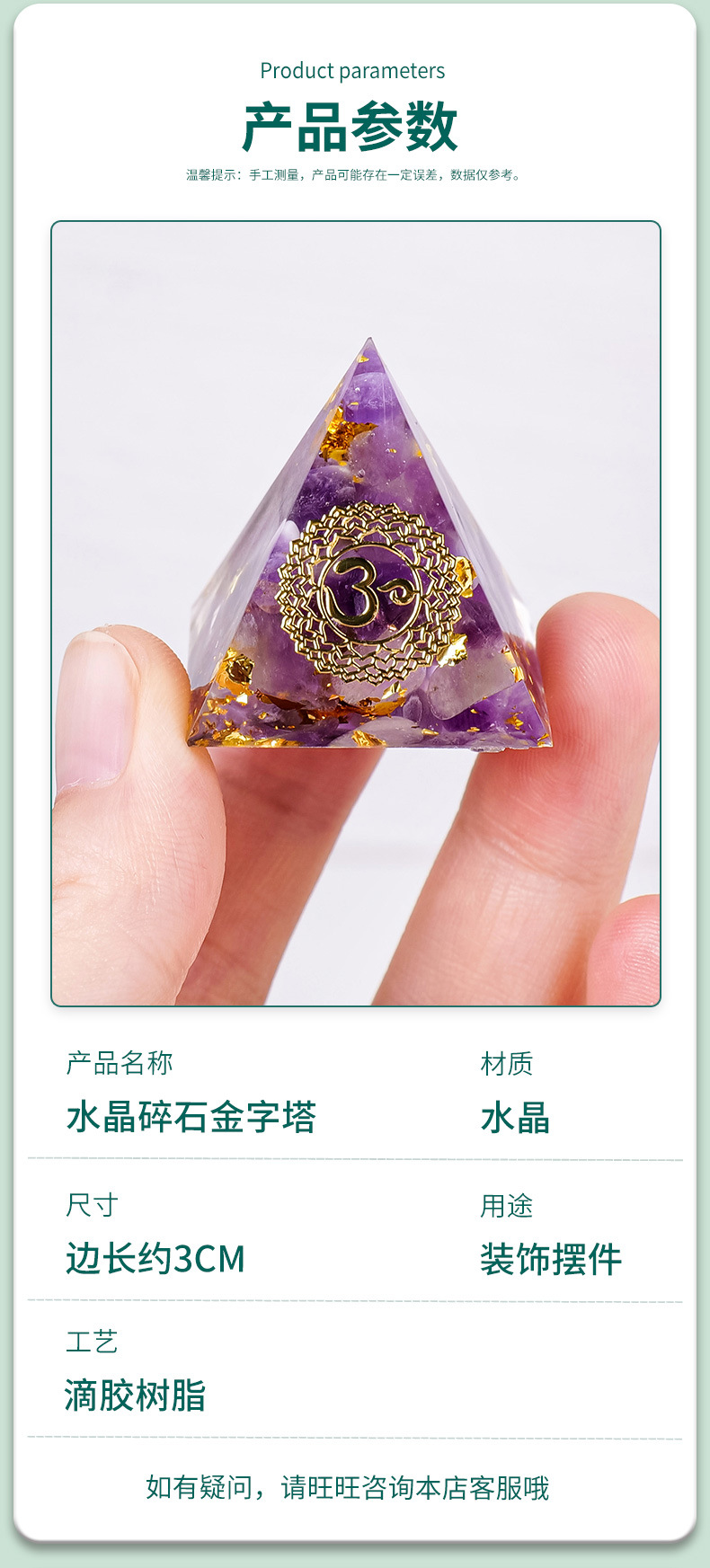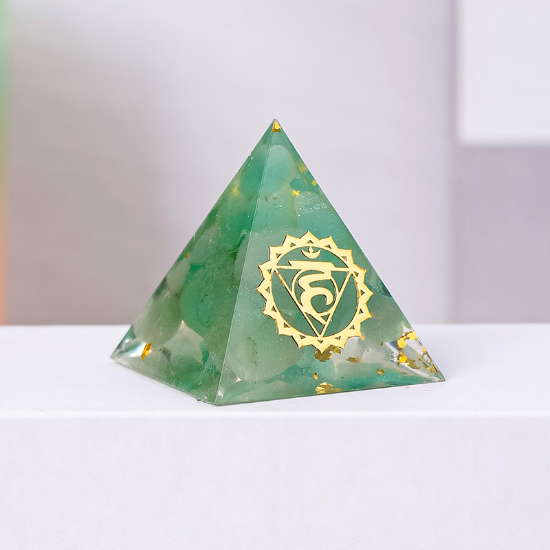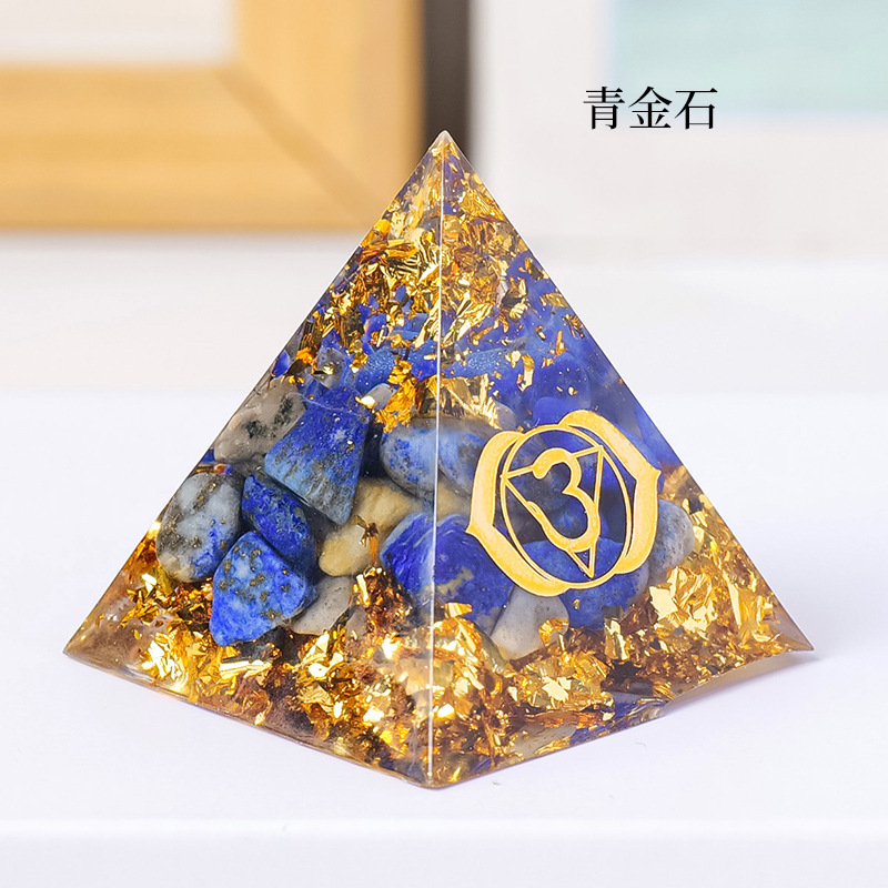 外贸新品3CM水晶碎石滴胶金字塔摆件 居家办公桌面能量塔摆件批发