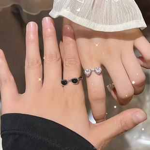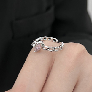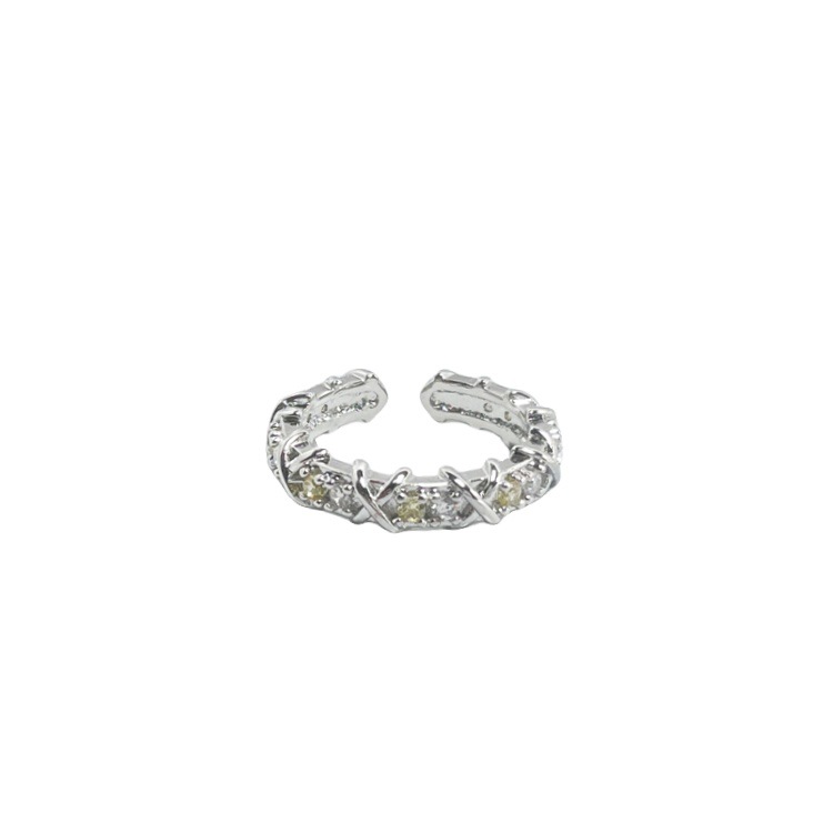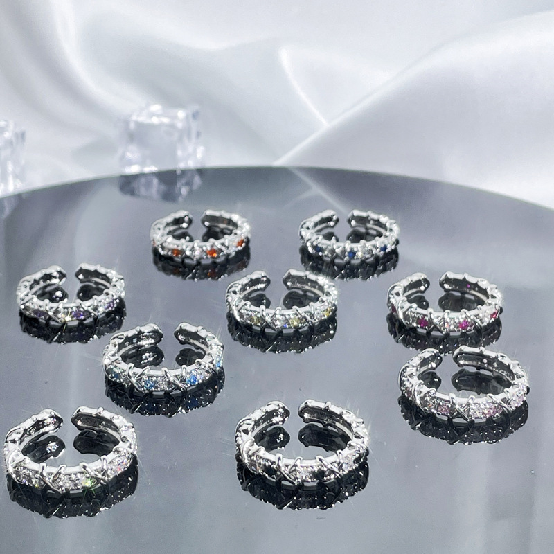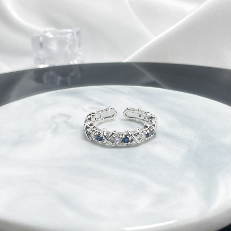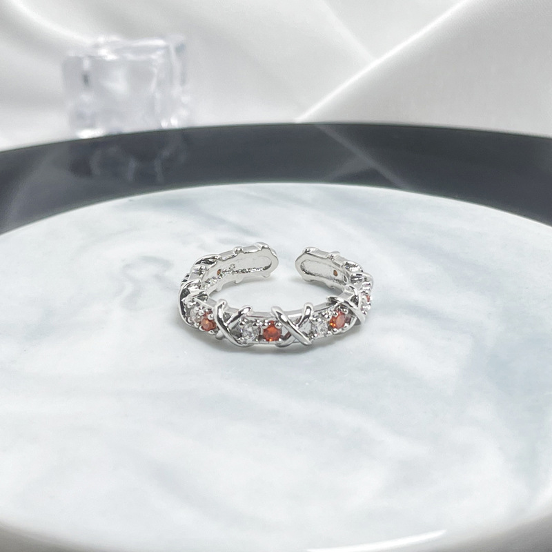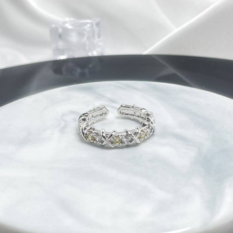 法式轻奢交叉多色锆石设计感戒指女小众百搭高级感闪钻开口食指戒