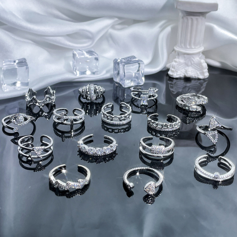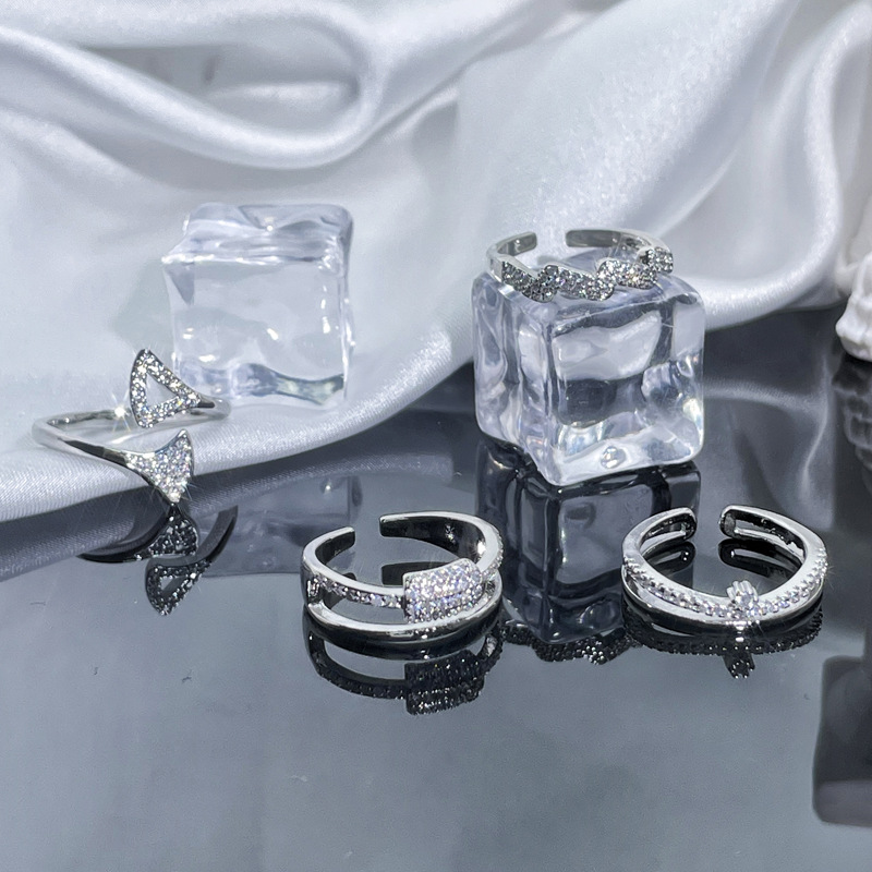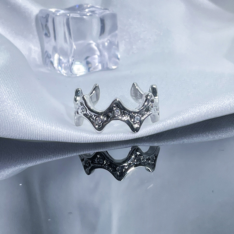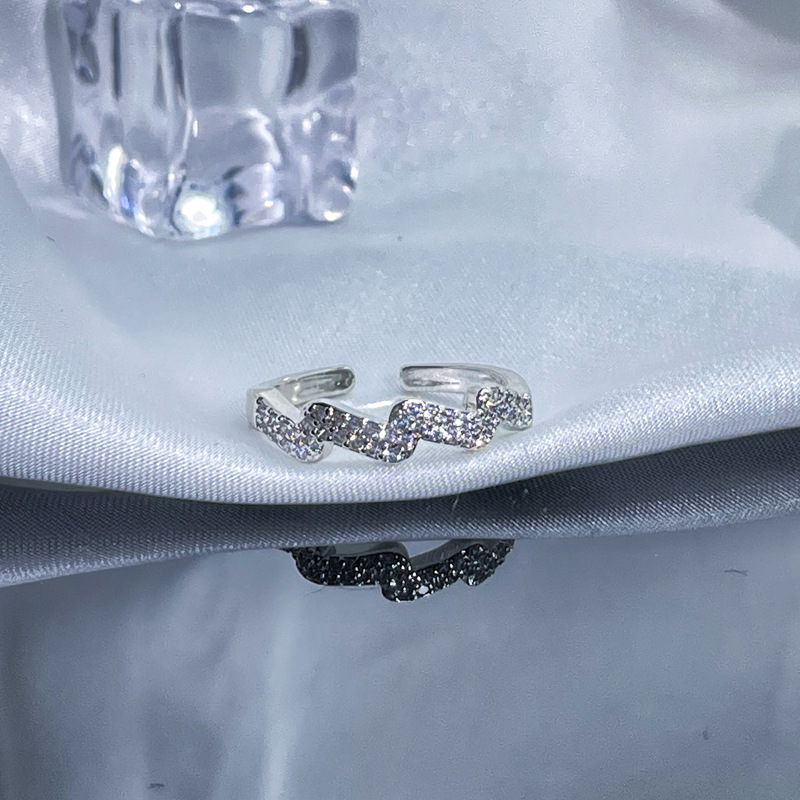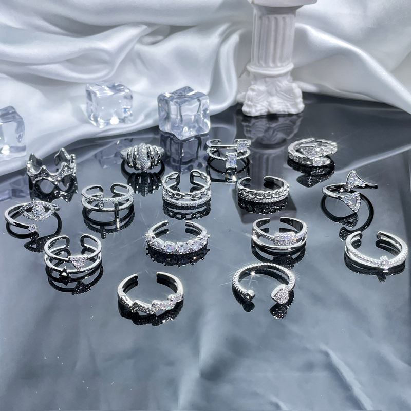 高级感不规则镶嵌锆石气质开口戒ins冷淡风轻奢时尚辣妹甜酷指环