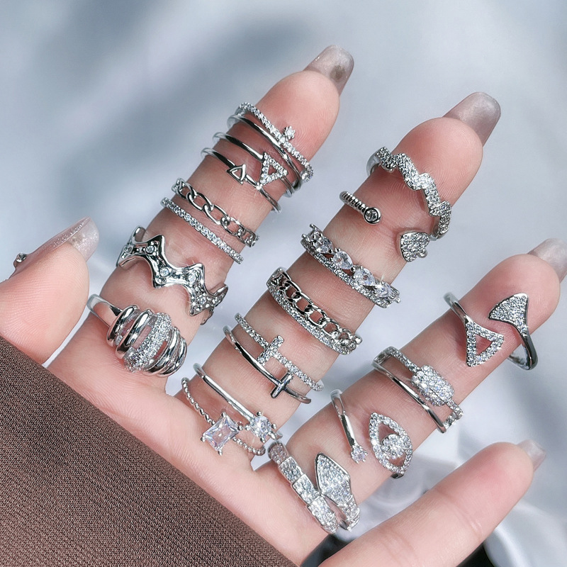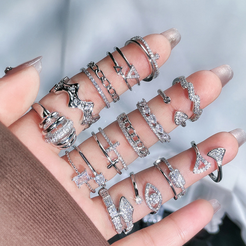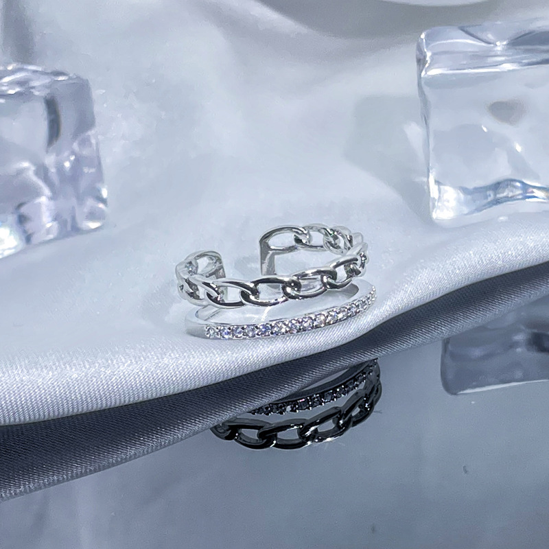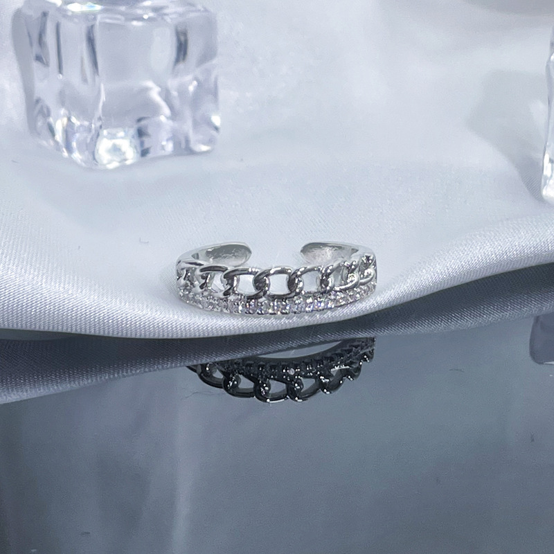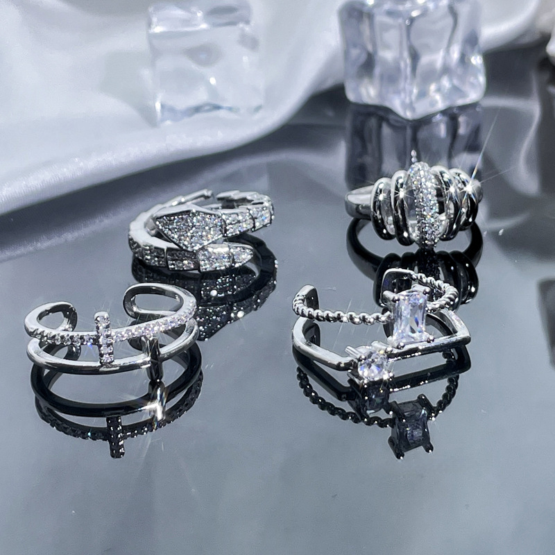 高级感不规则镶嵌锆石气质开口戒ins冷淡风轻奢时尚辣妹甜酷指环