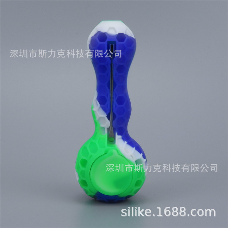 源头工厂 欧美爆款蜜蜂烟斗 蜂巢烟斗现货硅胶烟斗带金属勺玻璃碗