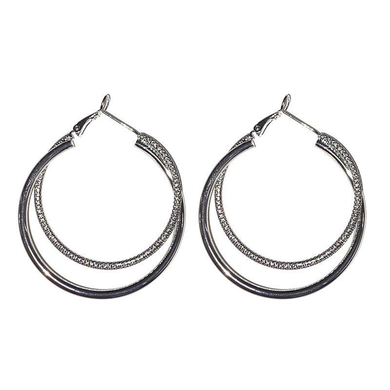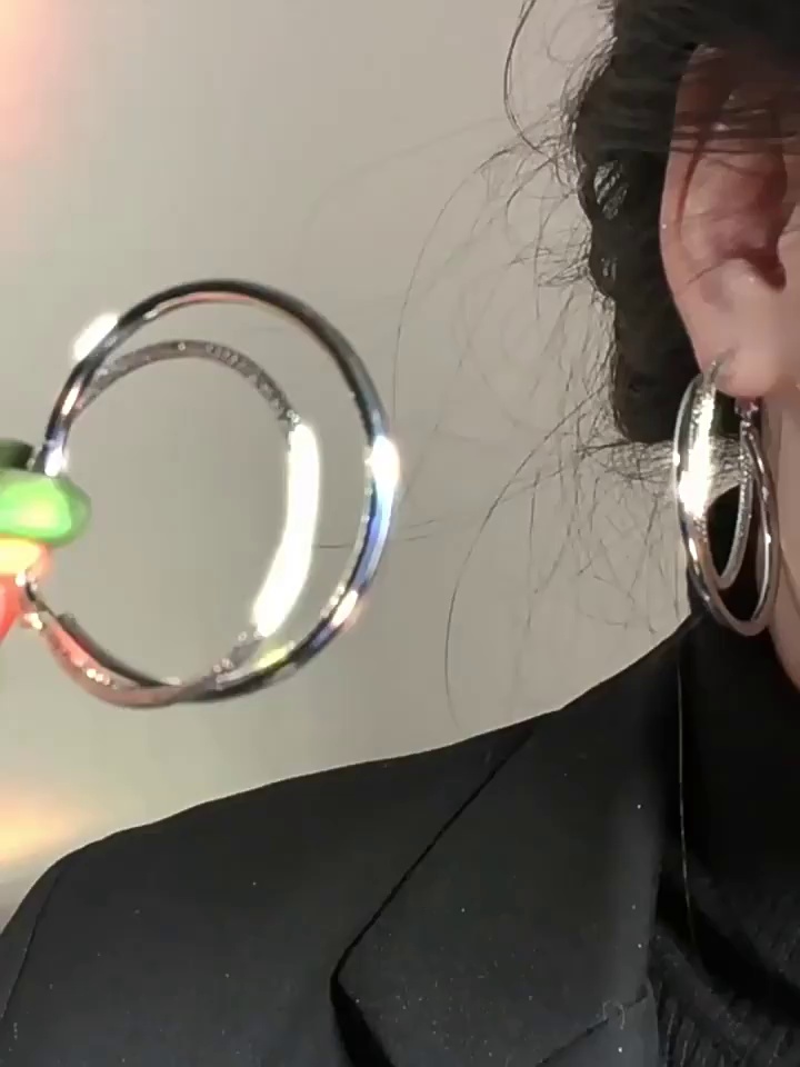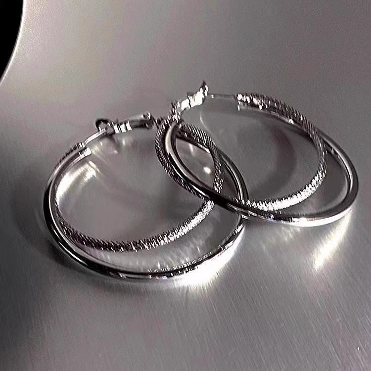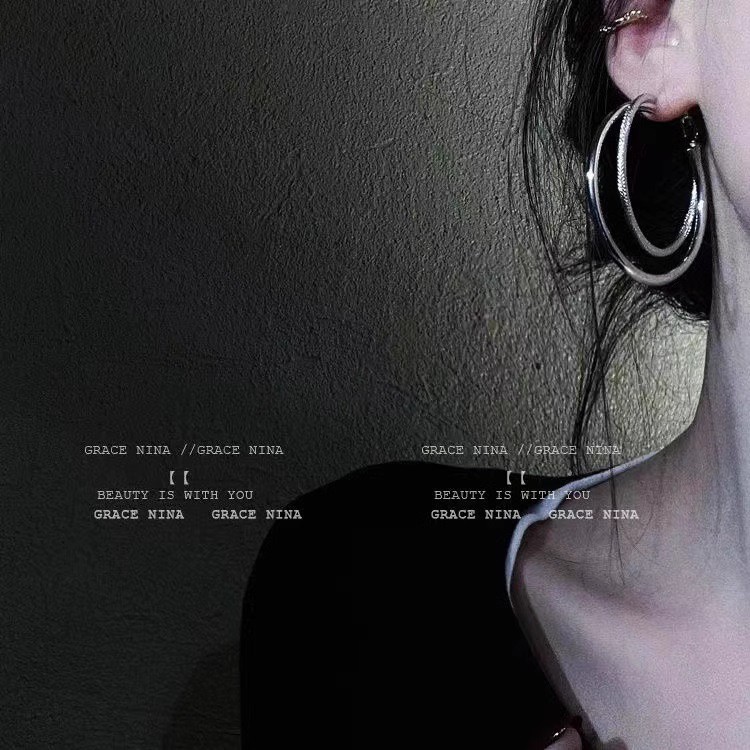 耳环冷淡风银色素圈耳圈耳钉网红同款耳饰金属感夸张大圆圈耳环女