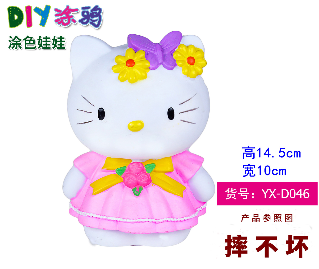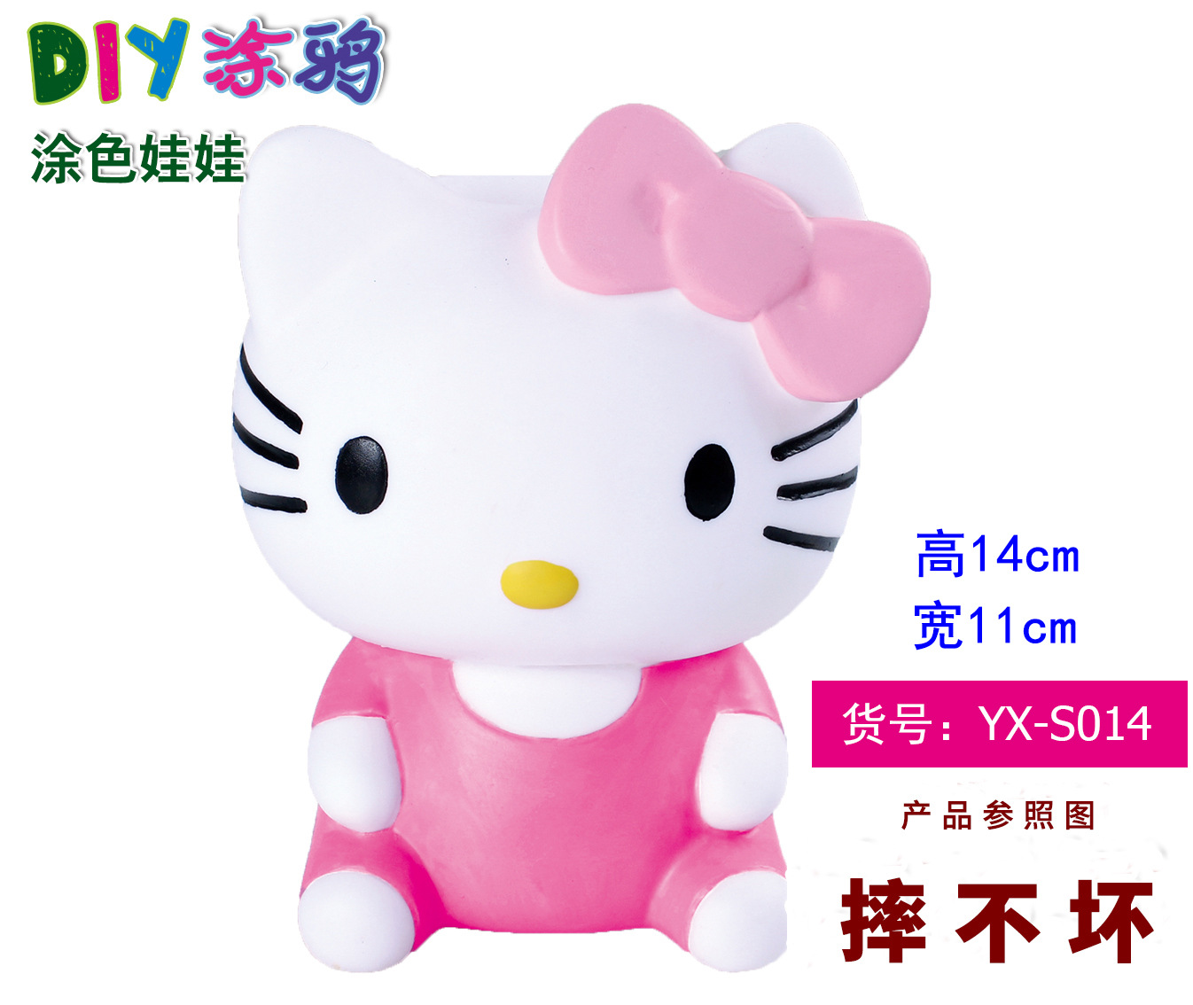 KT猫耐摔搪胶彩绘白胚存钱罐儿童手工涂色玩具夜市地摊石膏娃娃