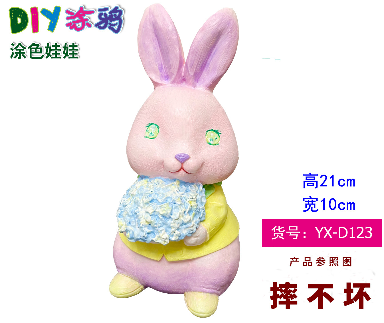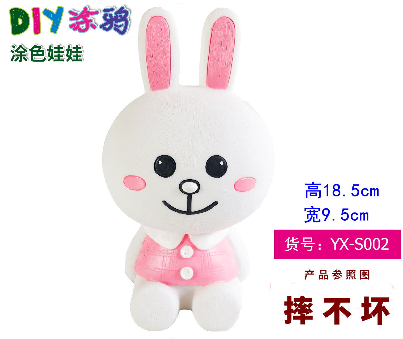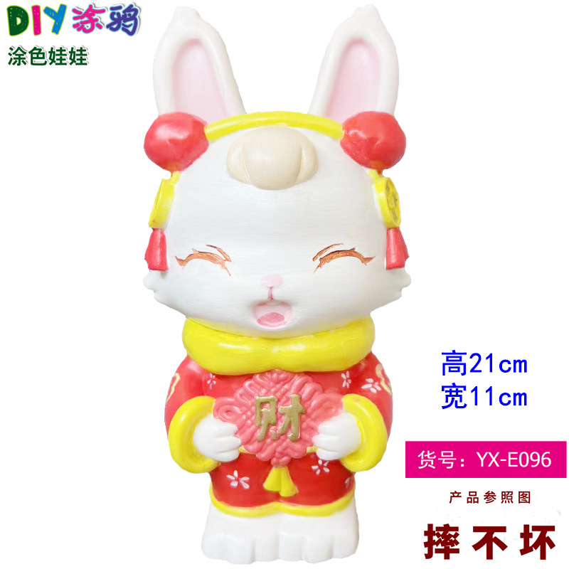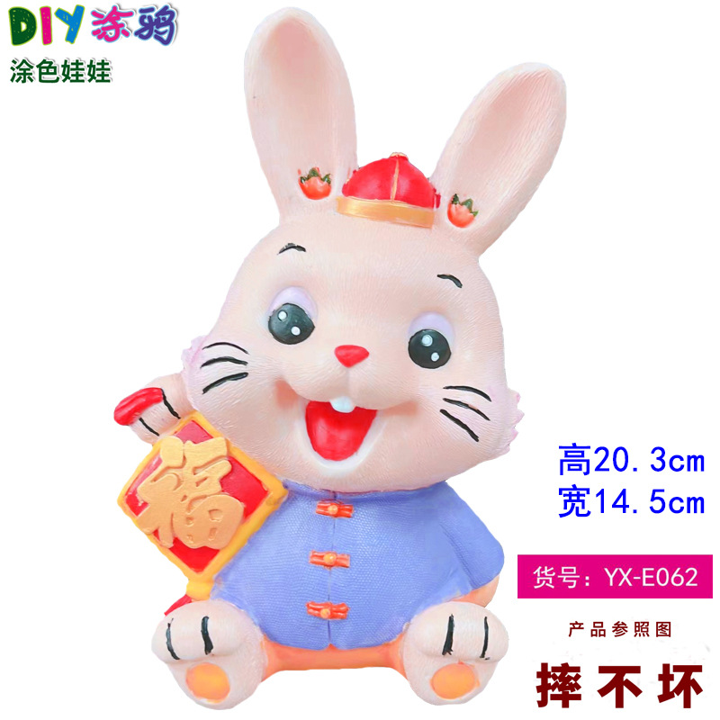 兔子兔年新款摔不坏搪胶彩绘娃娃存钱罐儿童diy手工玩具 非石膏白