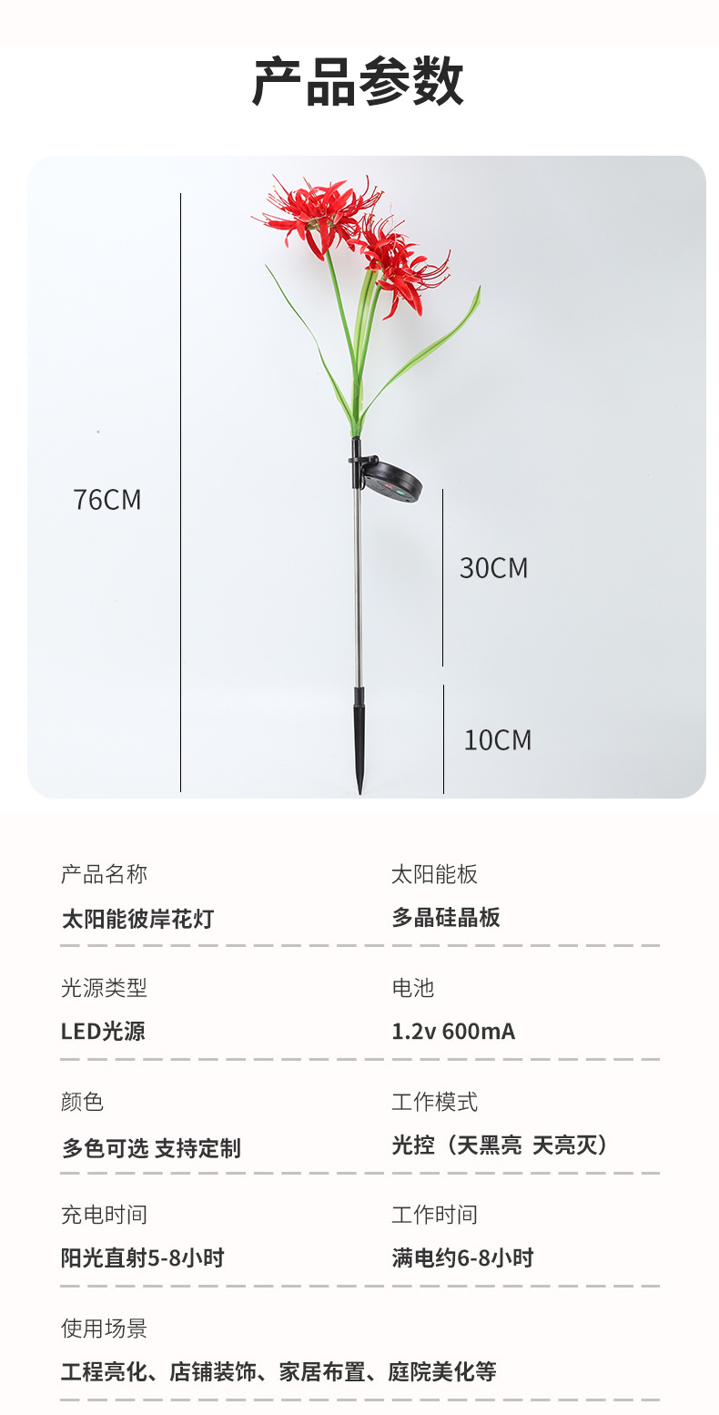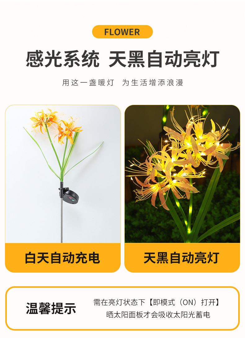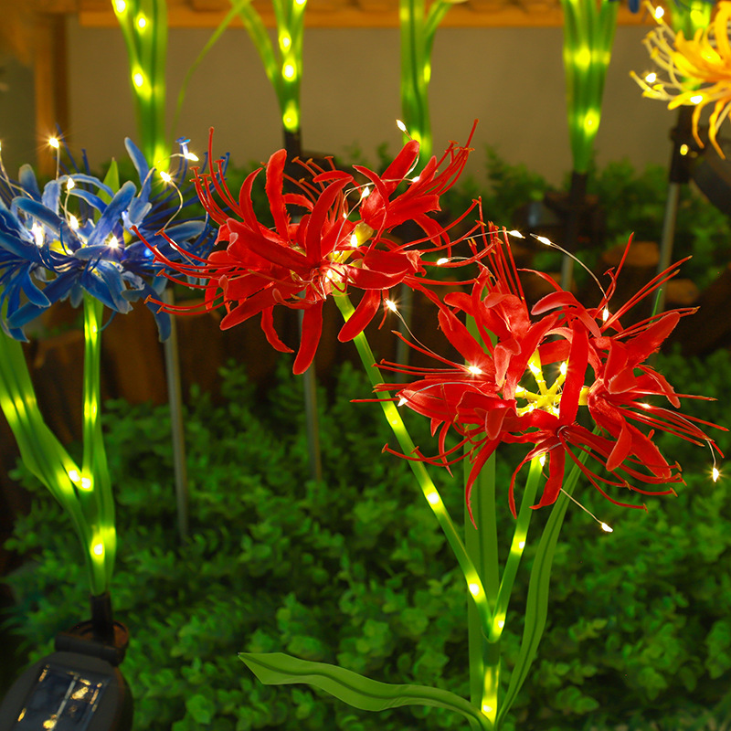 跨境新品太阳能彼岸花地插灯别墅花园曼珠沙华地插灯永生花草坪灯