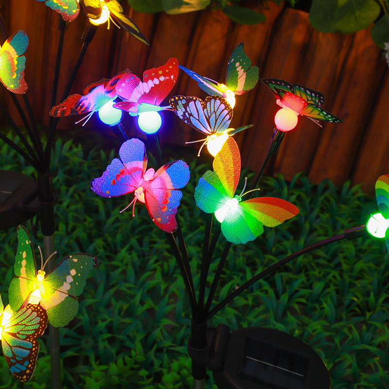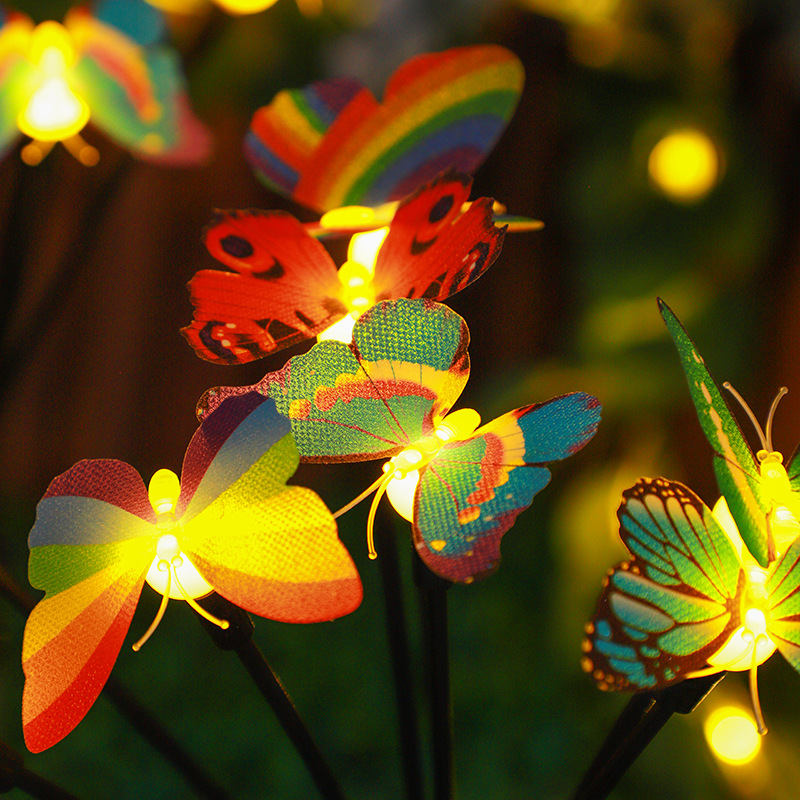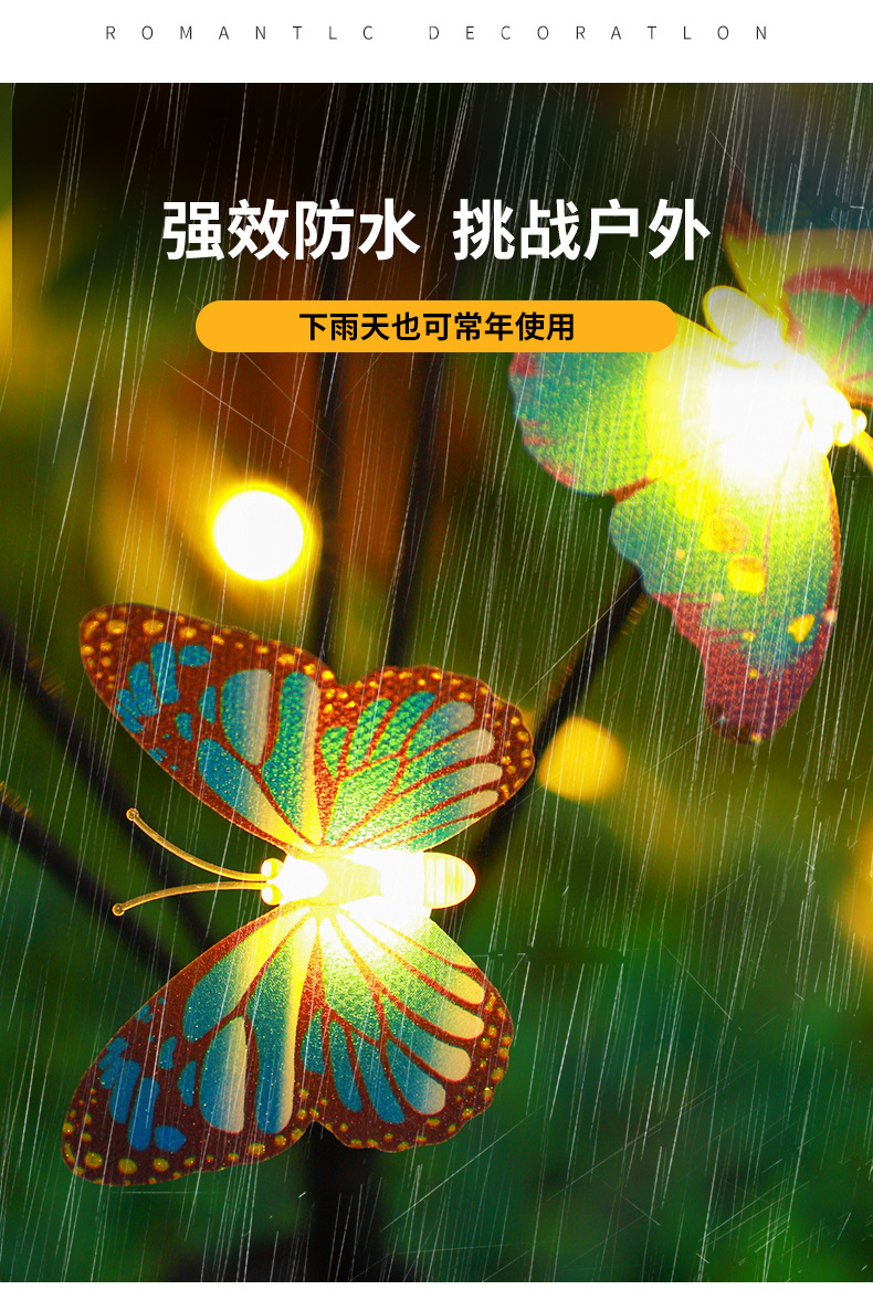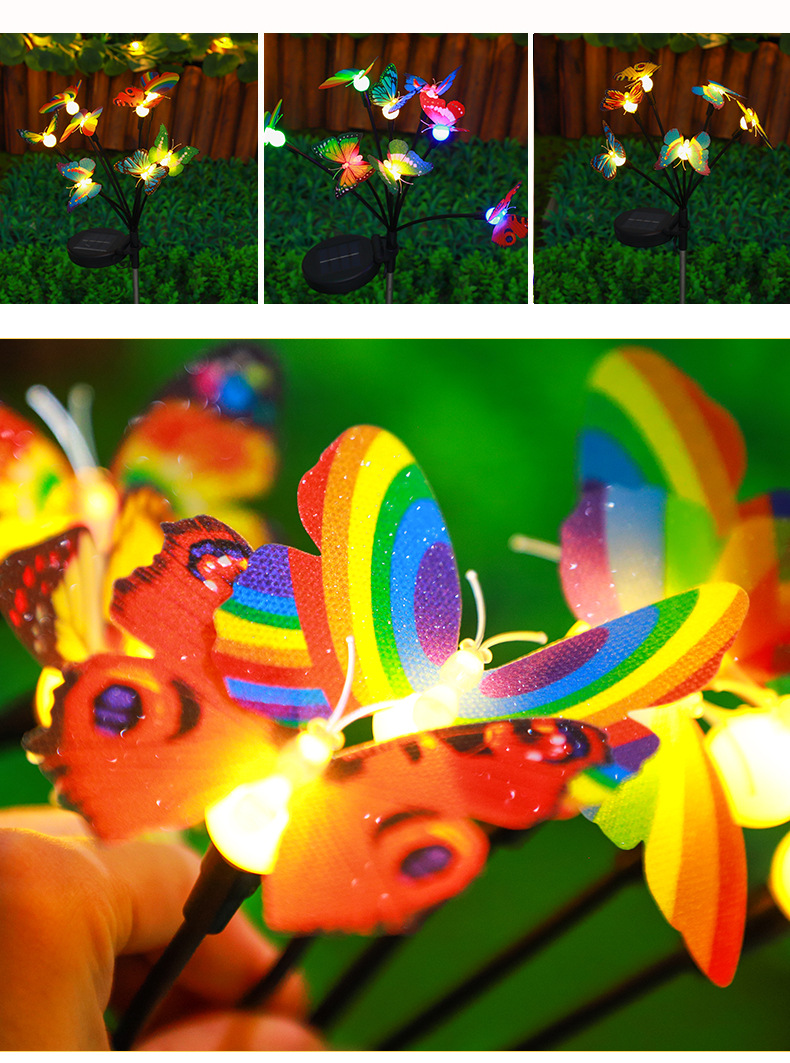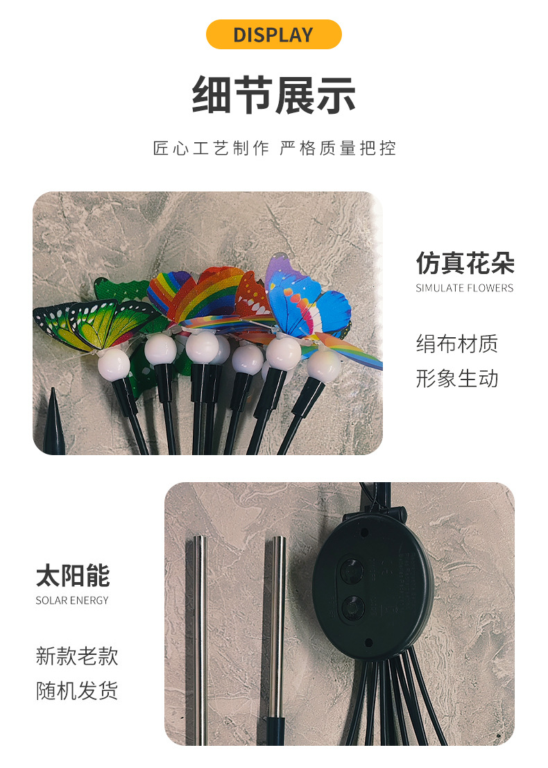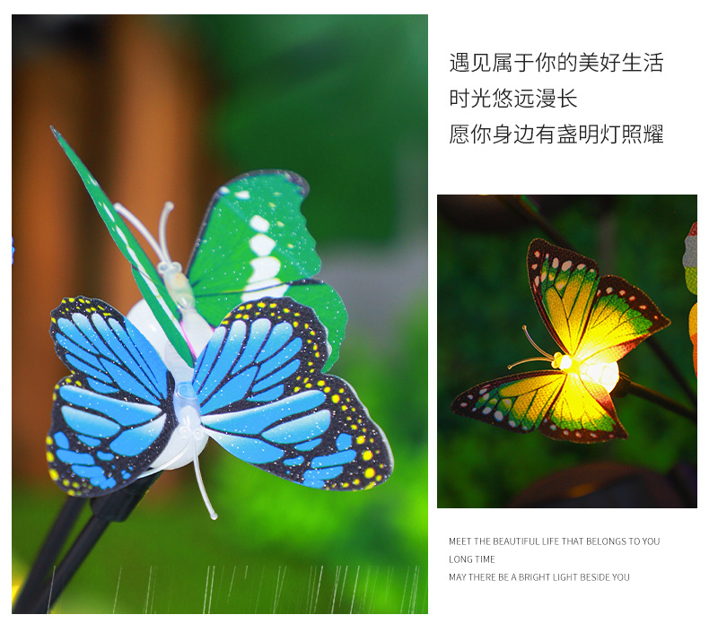 亚马逊新款太阳能仿真蝴蝶地插灯庭院装饰太阳能仿真蝴蝶萤火虫灯