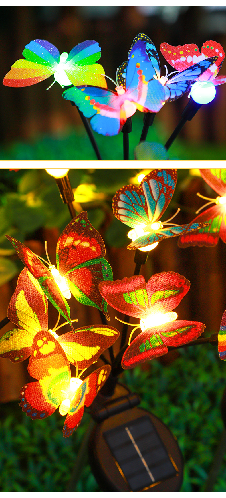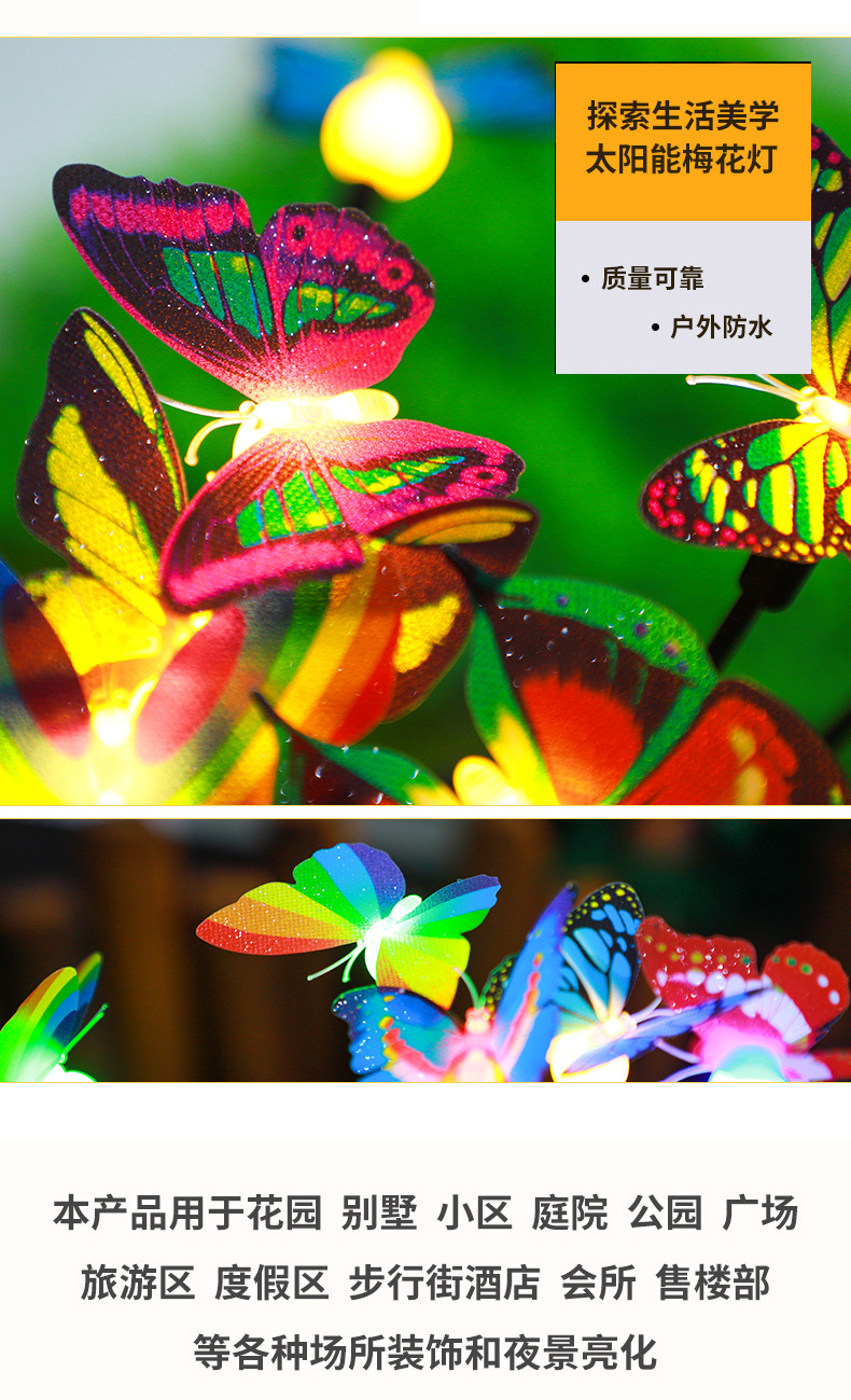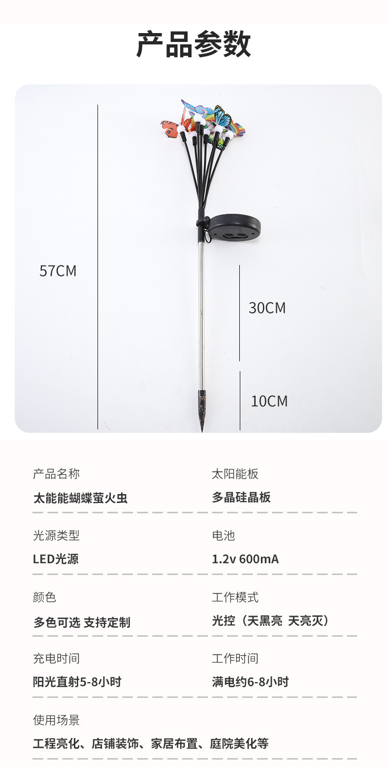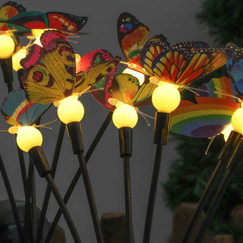 亚马逊新款太阳能仿真蝴蝶地插灯庭院装饰太阳能仿真蝴蝶萤火虫灯