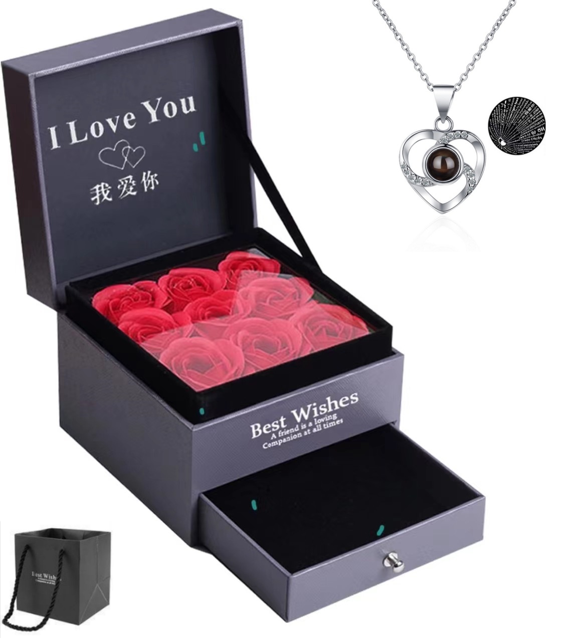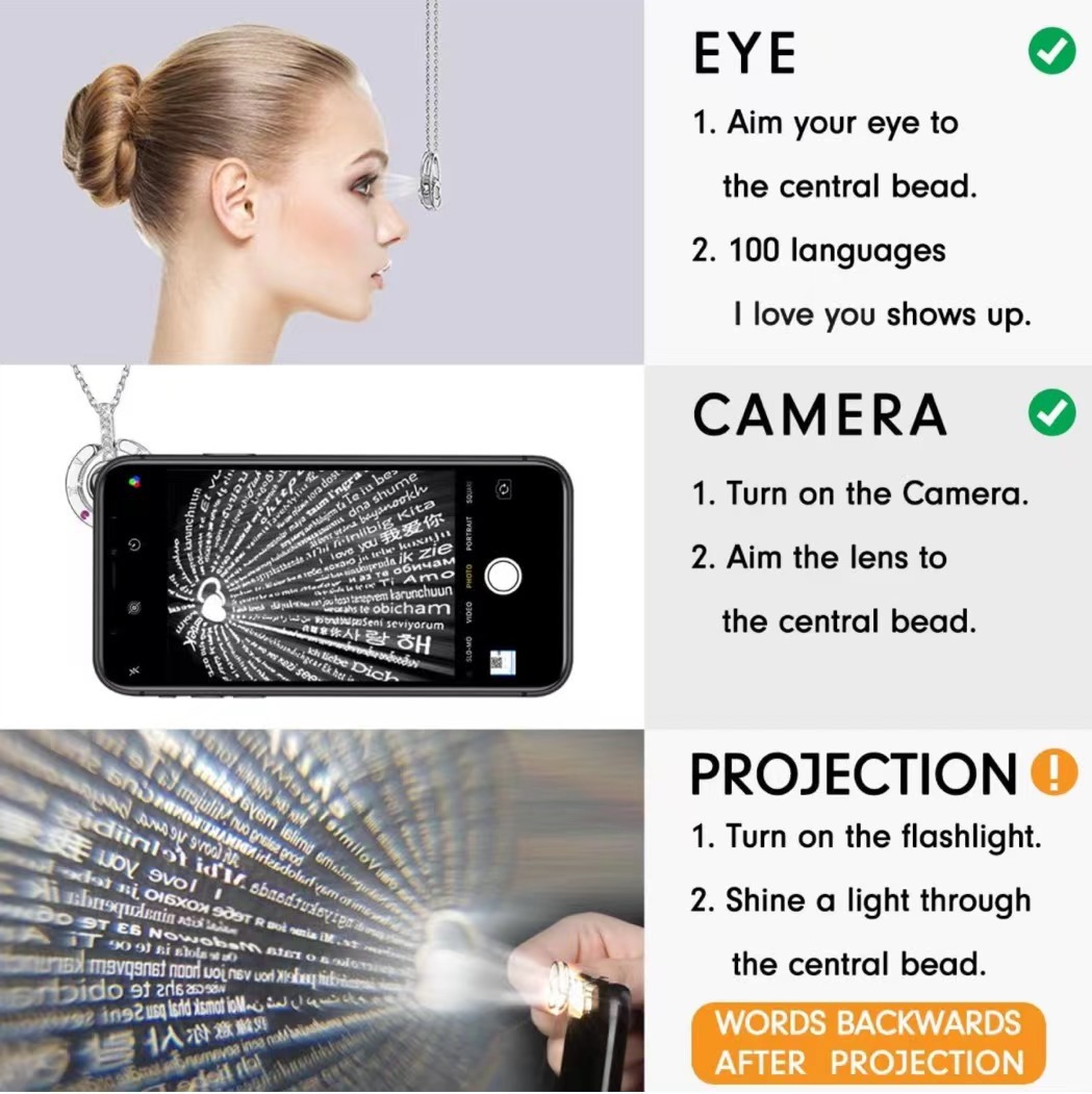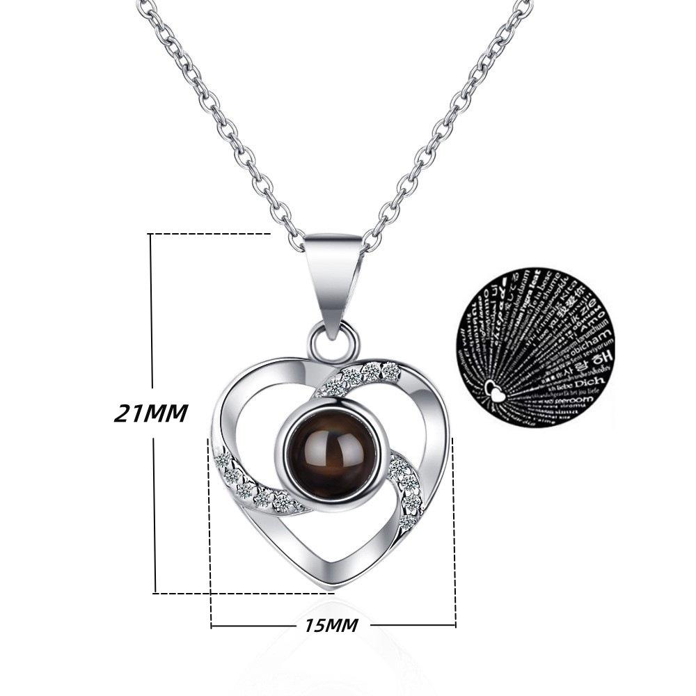 严选配饰亚马逊爆款100种语言我爱你投影项链女跨境热采圆心吊坠