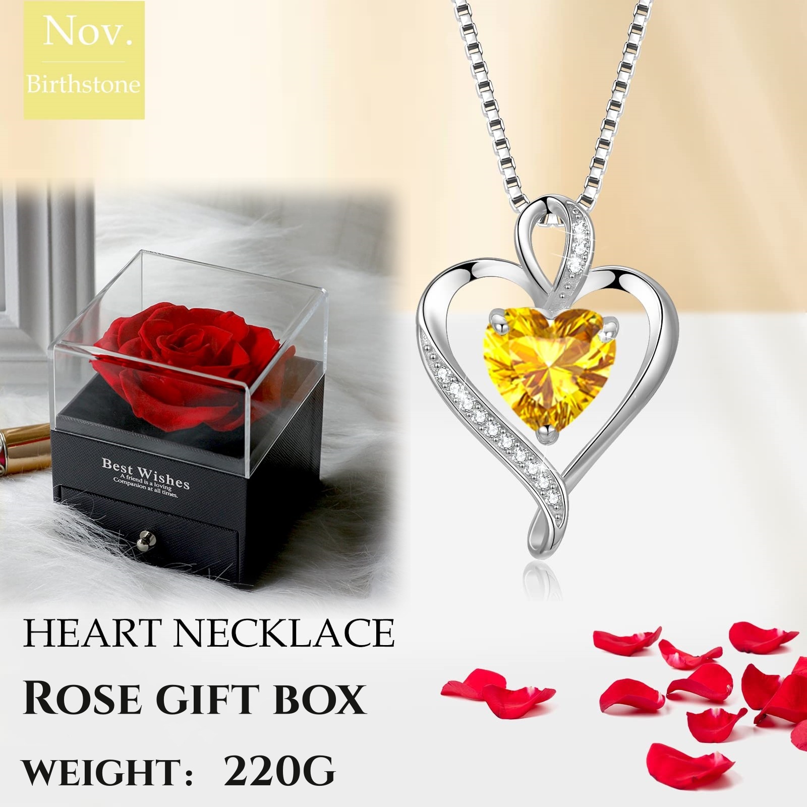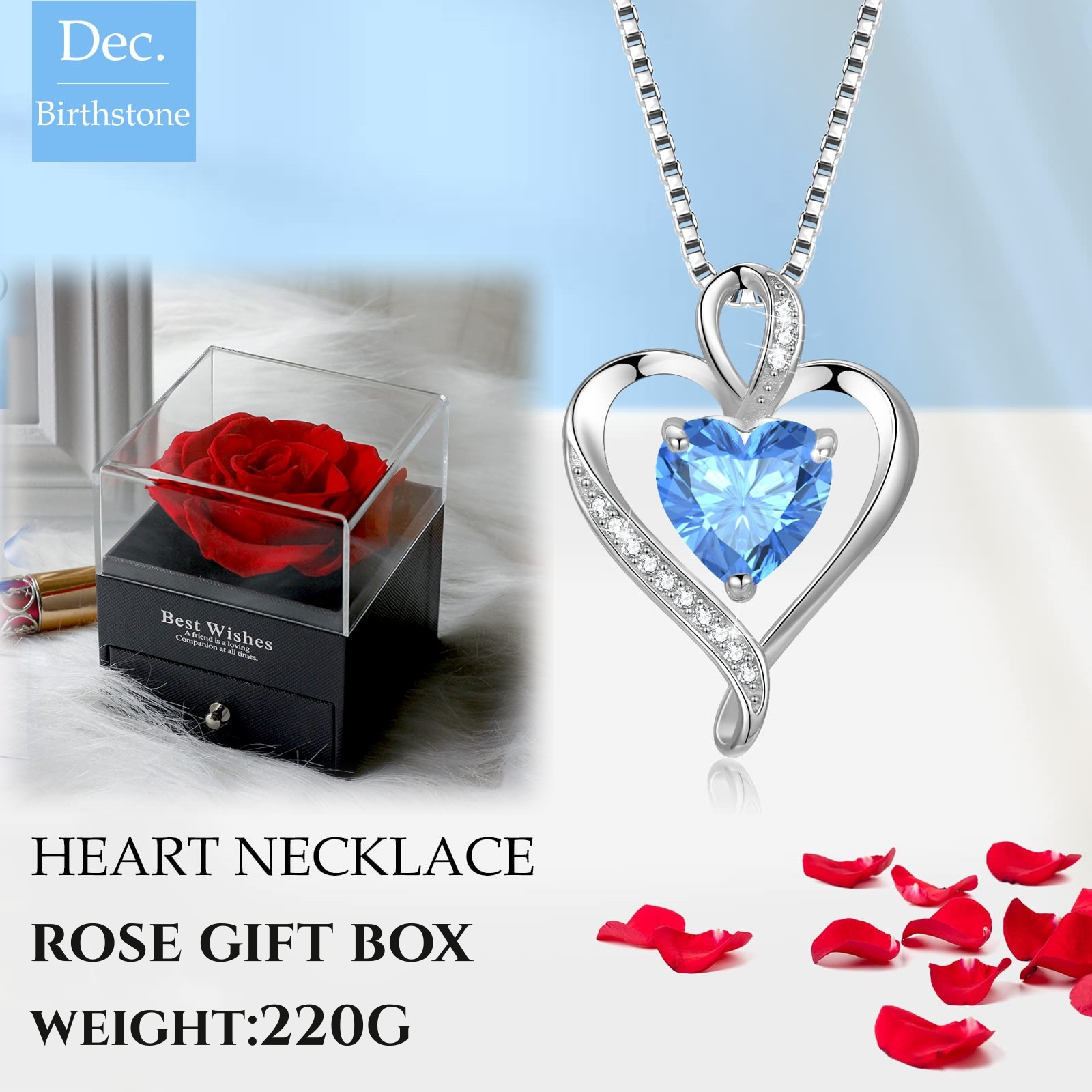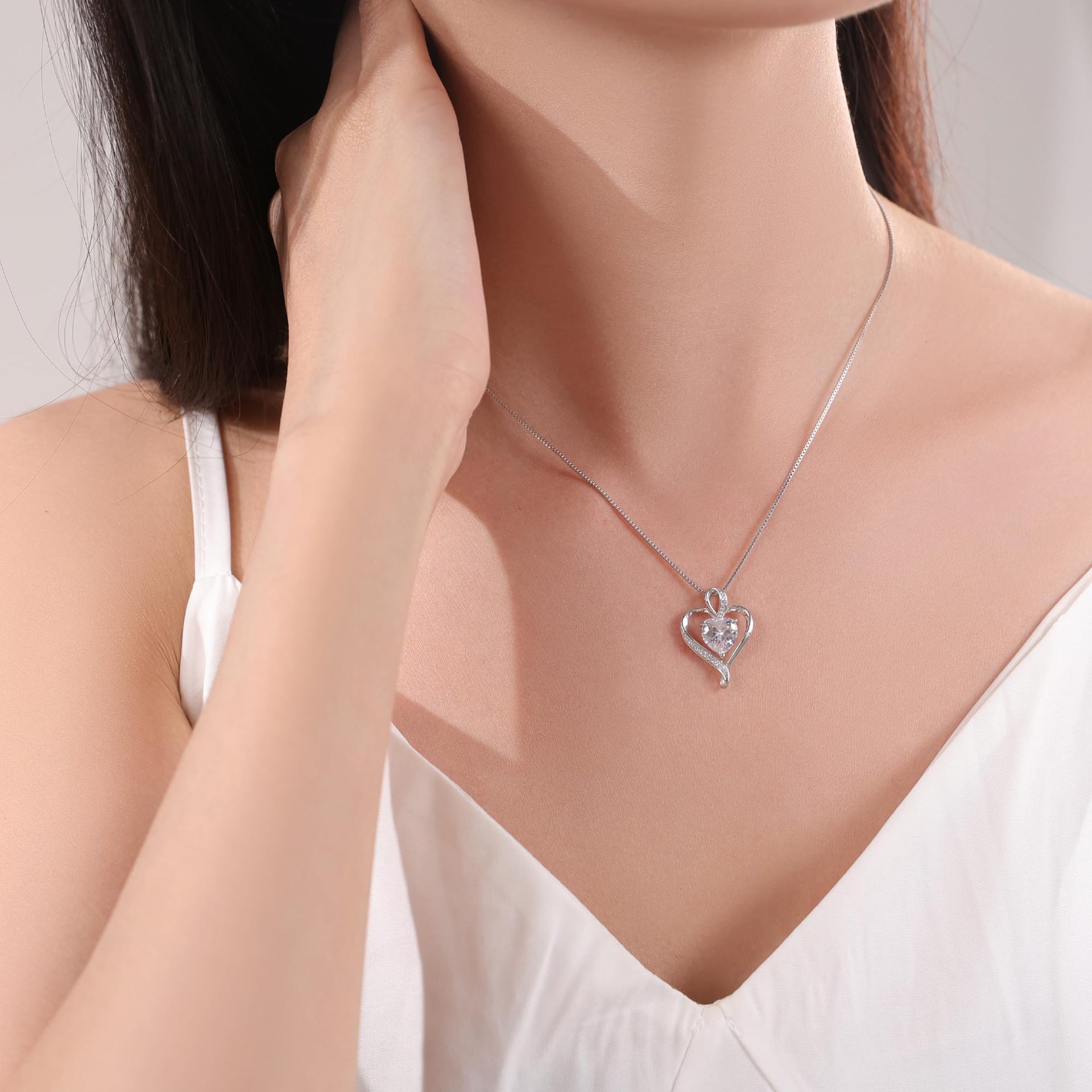 亚马逊跨境爆款时尚高级感心形项链女十二生辰石锁骨链爱心吊坠男