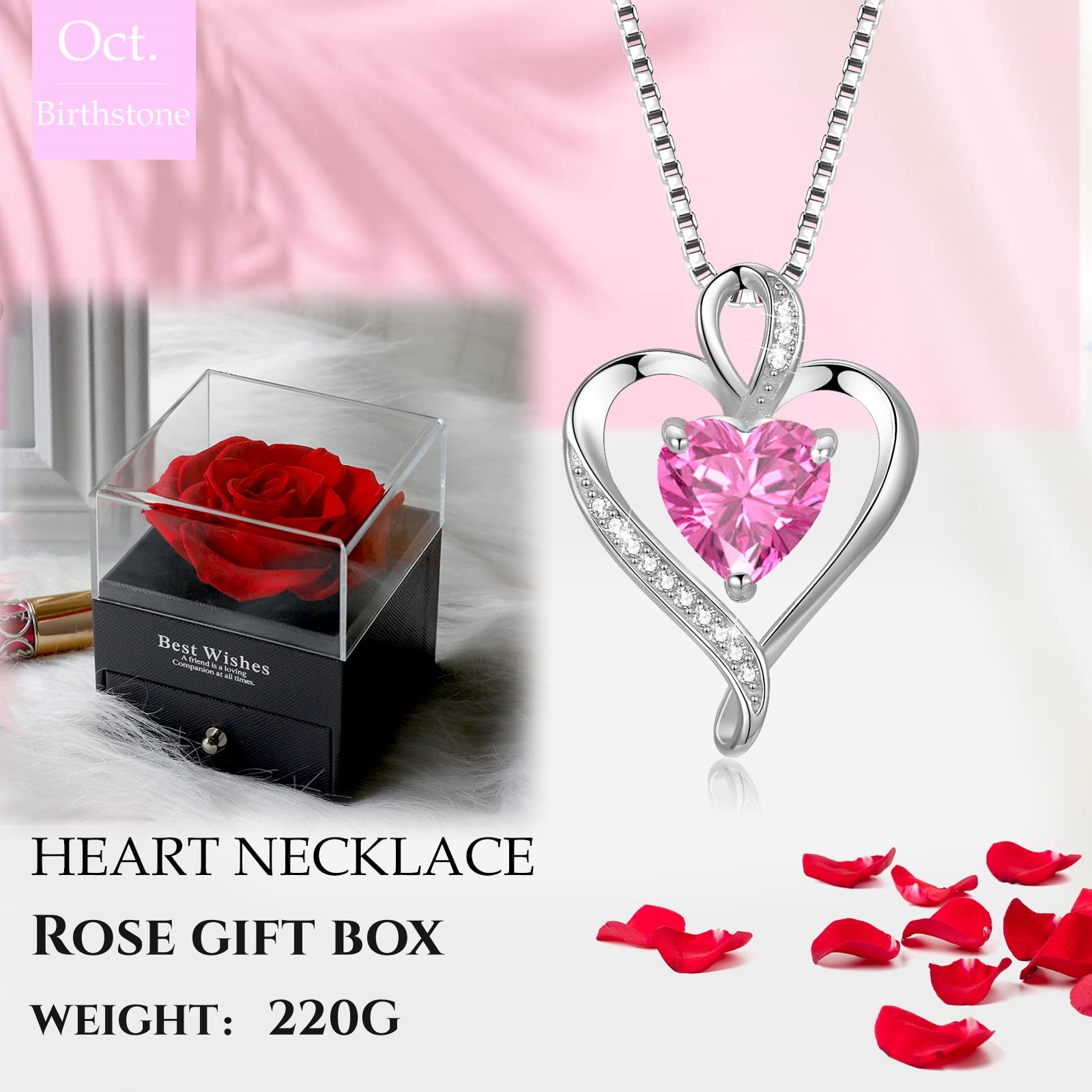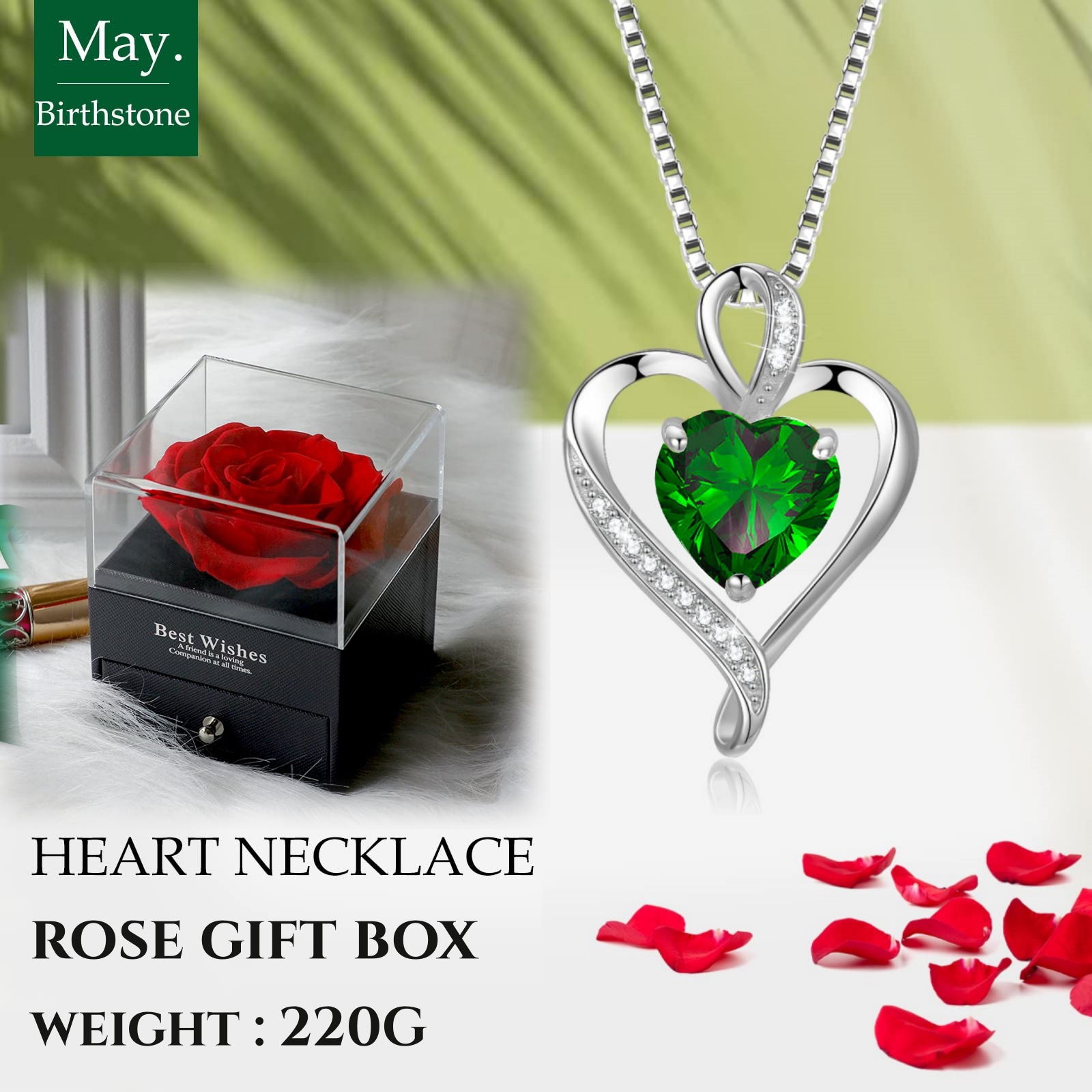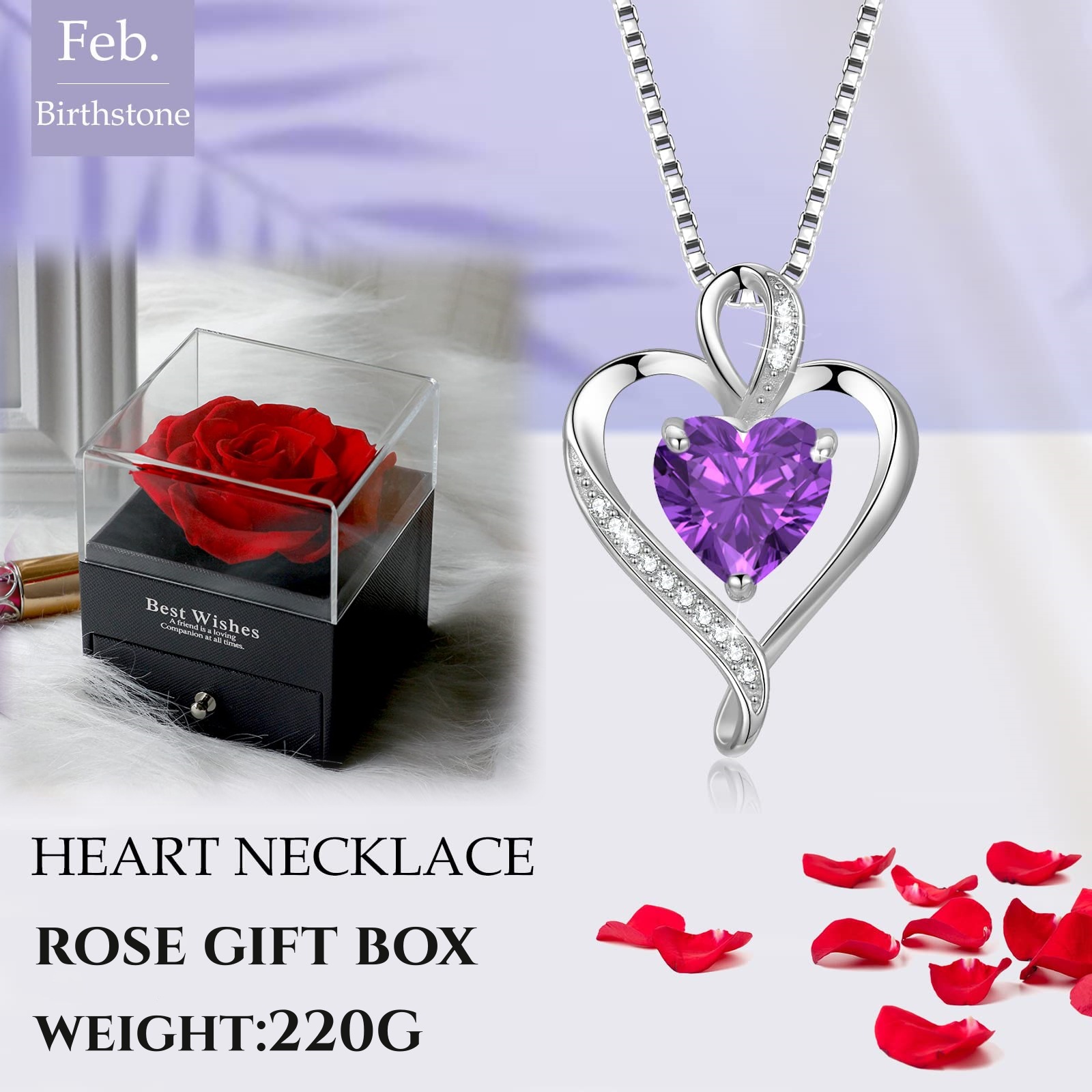 亚马逊跨境爆款时尚高级感心形项链女十二生辰石锁骨链爱心吊坠男