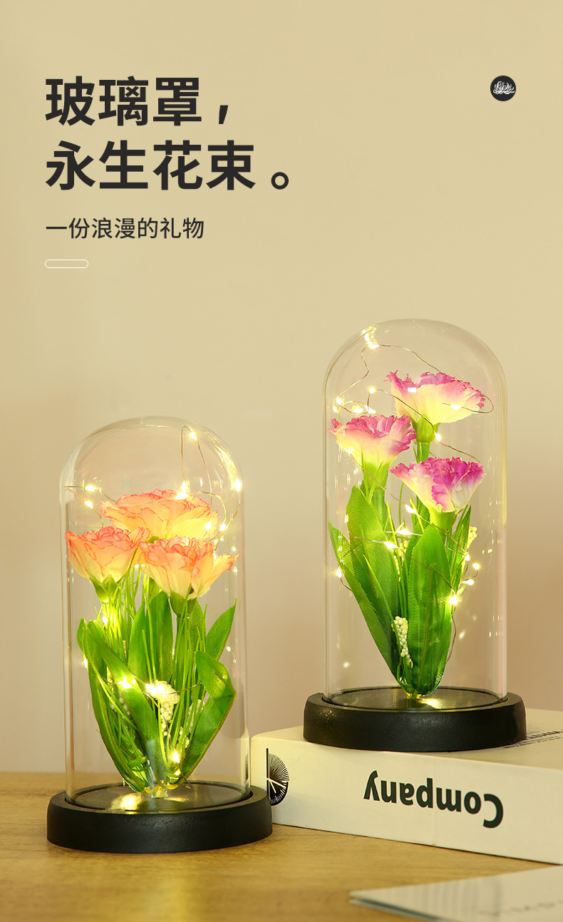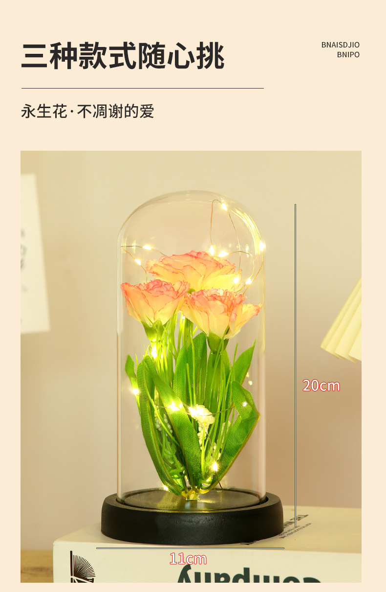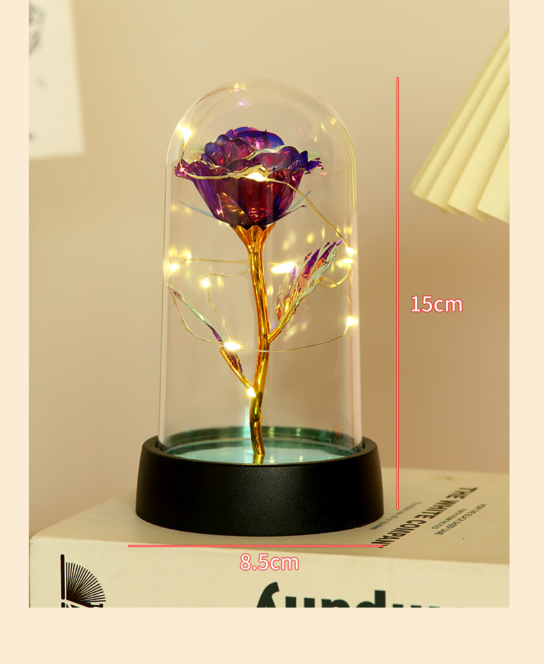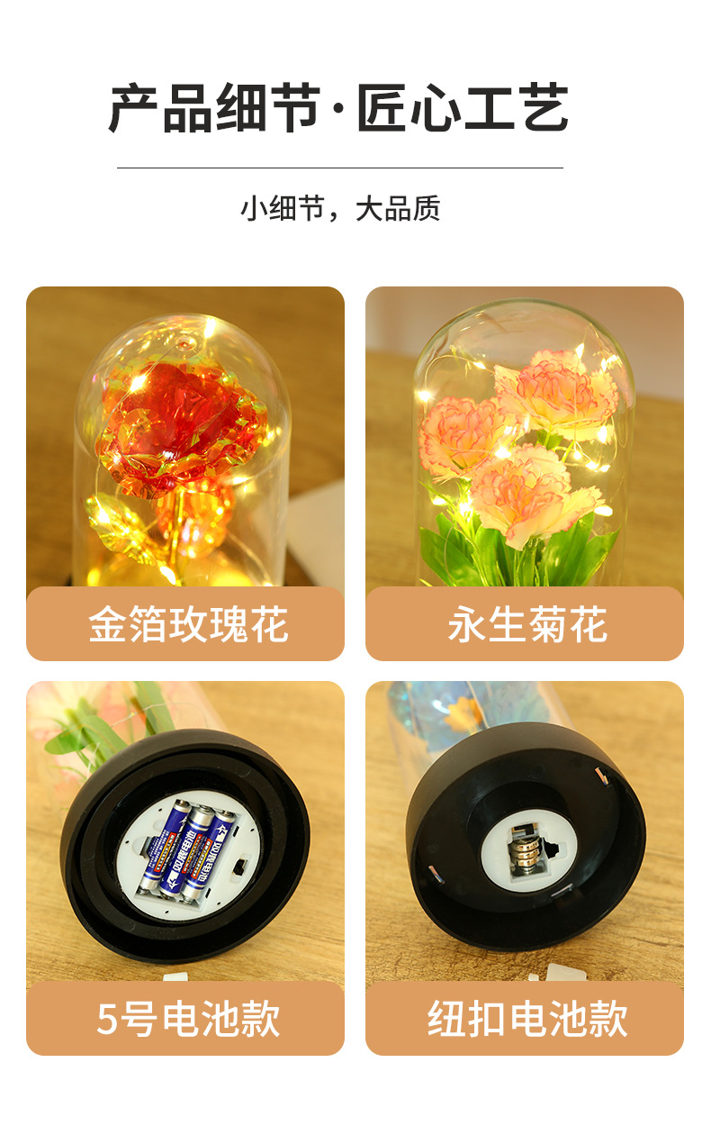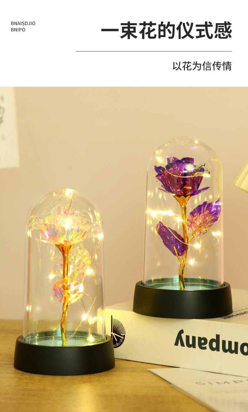 金箔玫瑰花玻璃罩情人节礼物跨境永生花创意摆件小夜灯生日礼品