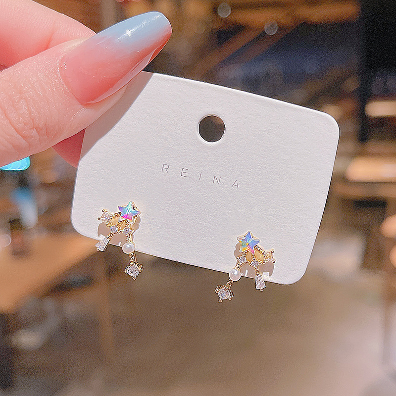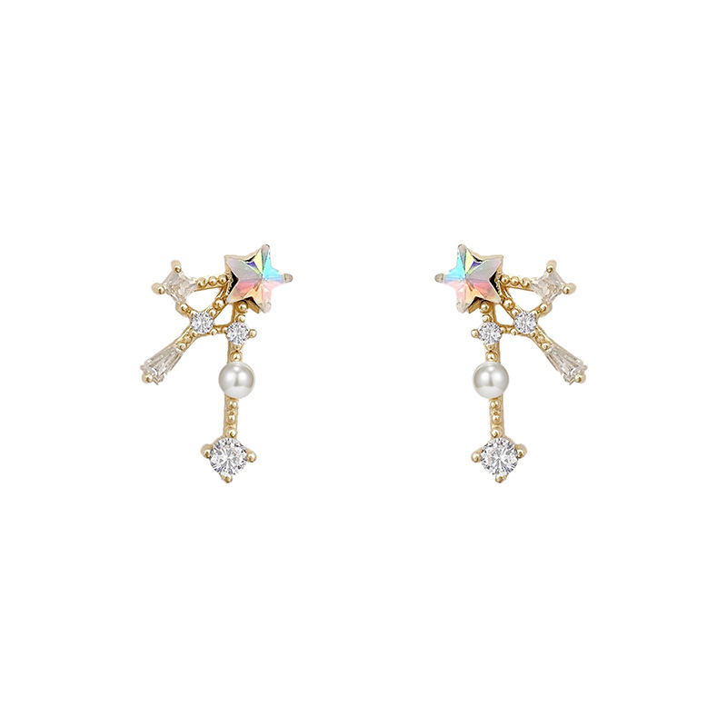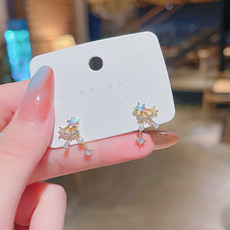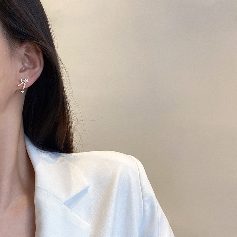 S925银针日韩风新款满天星锆石设计感耳环女气质简约时尚耳钉耳饰