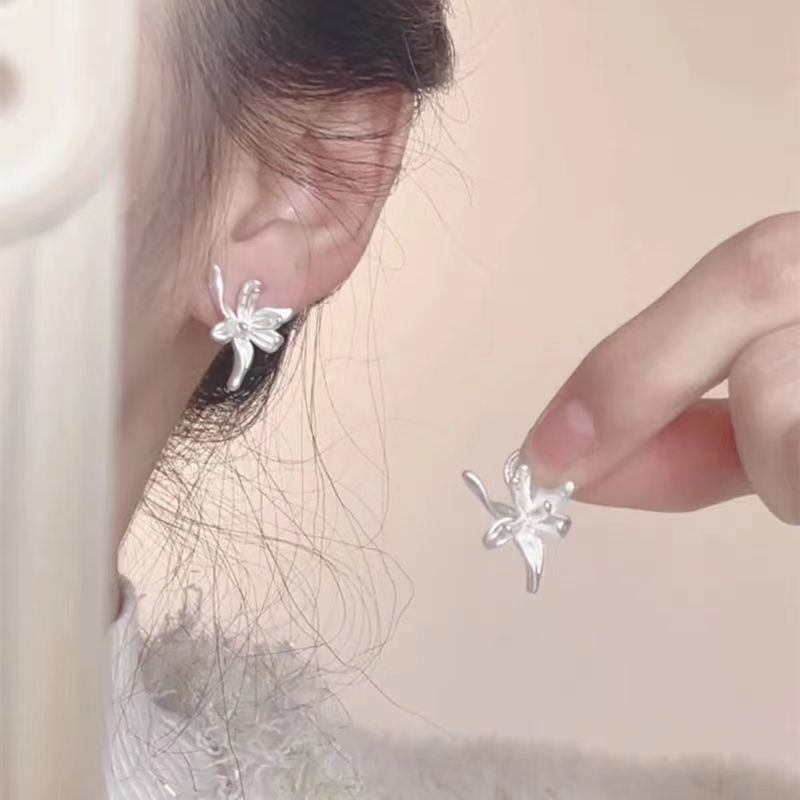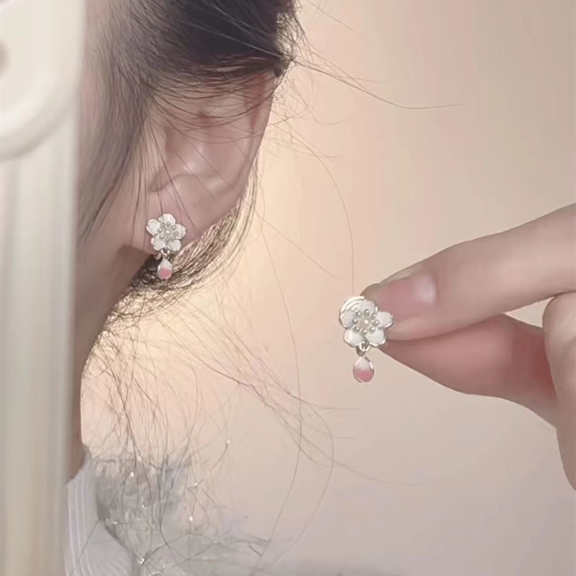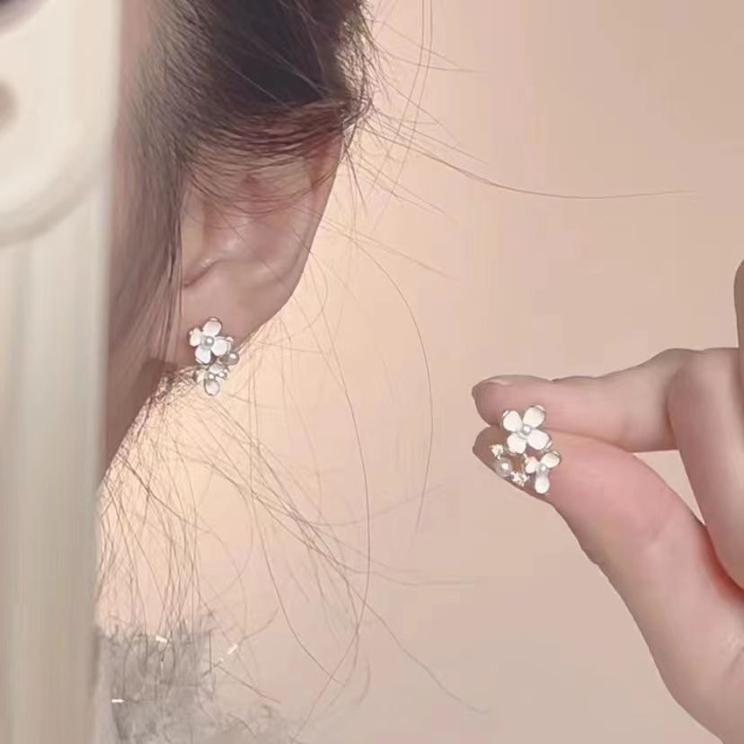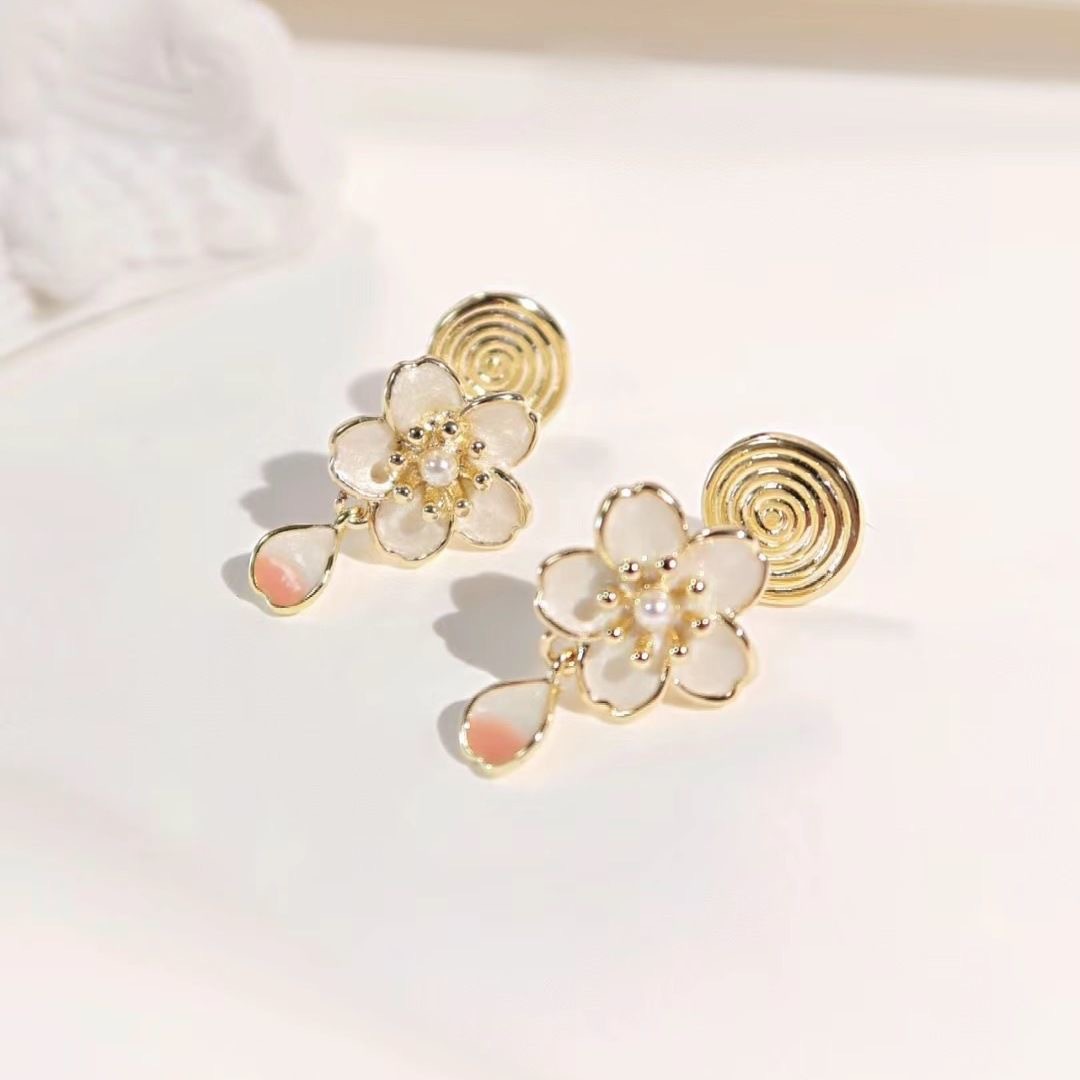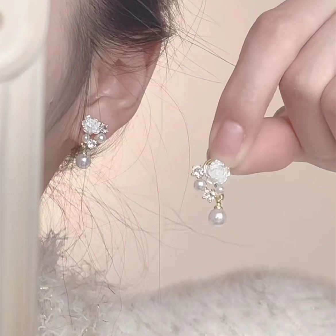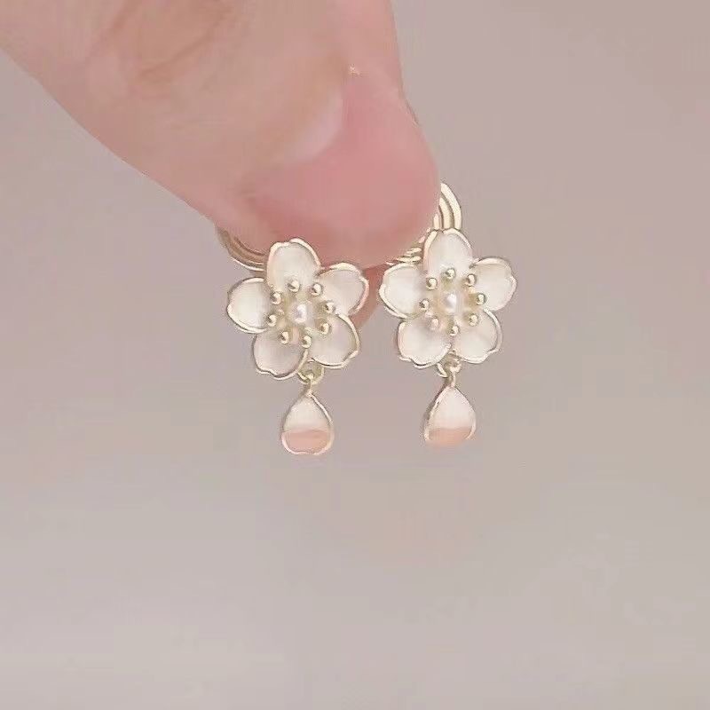 白色山茶花耳夹女2024新款复古花朵气质蚊香盘无耳洞耳骨夹女