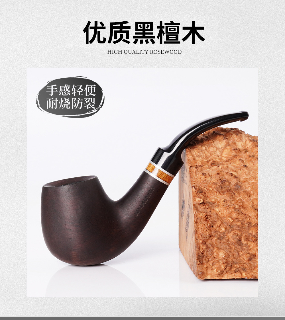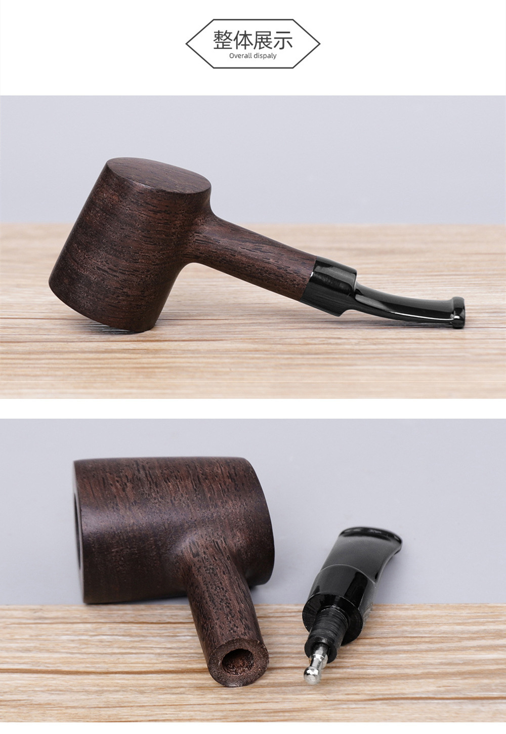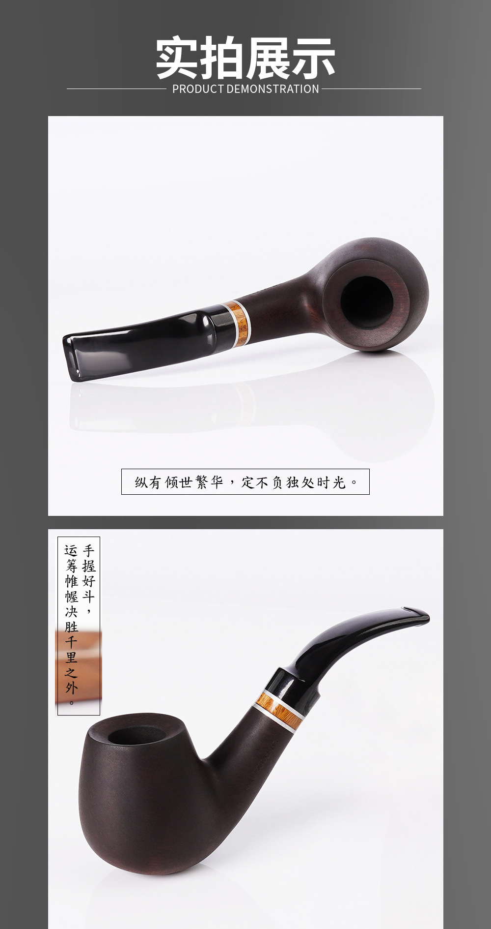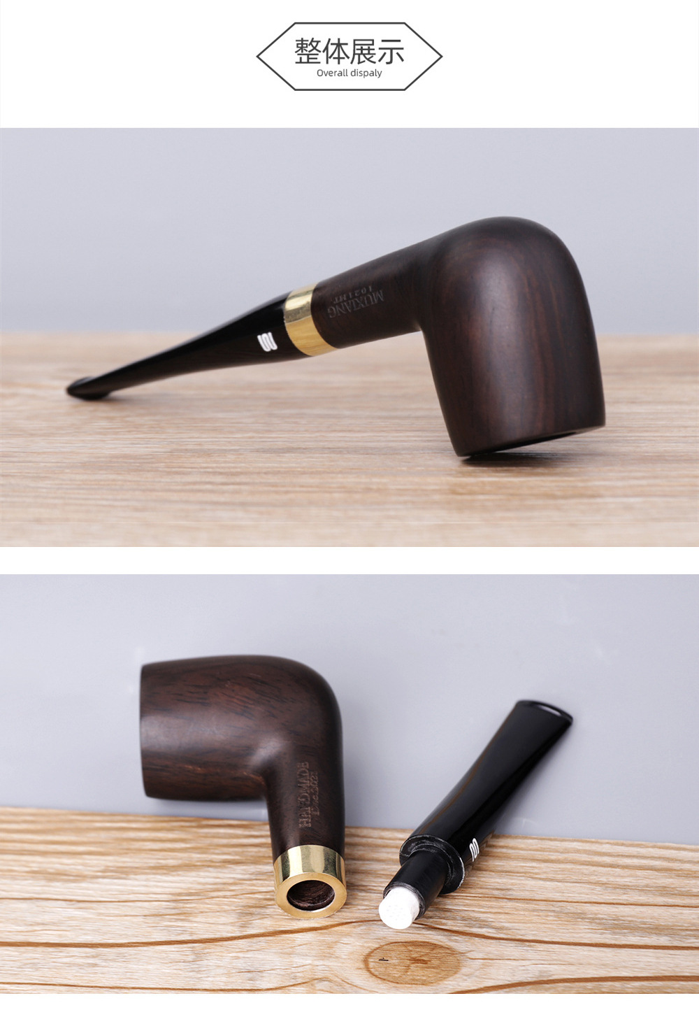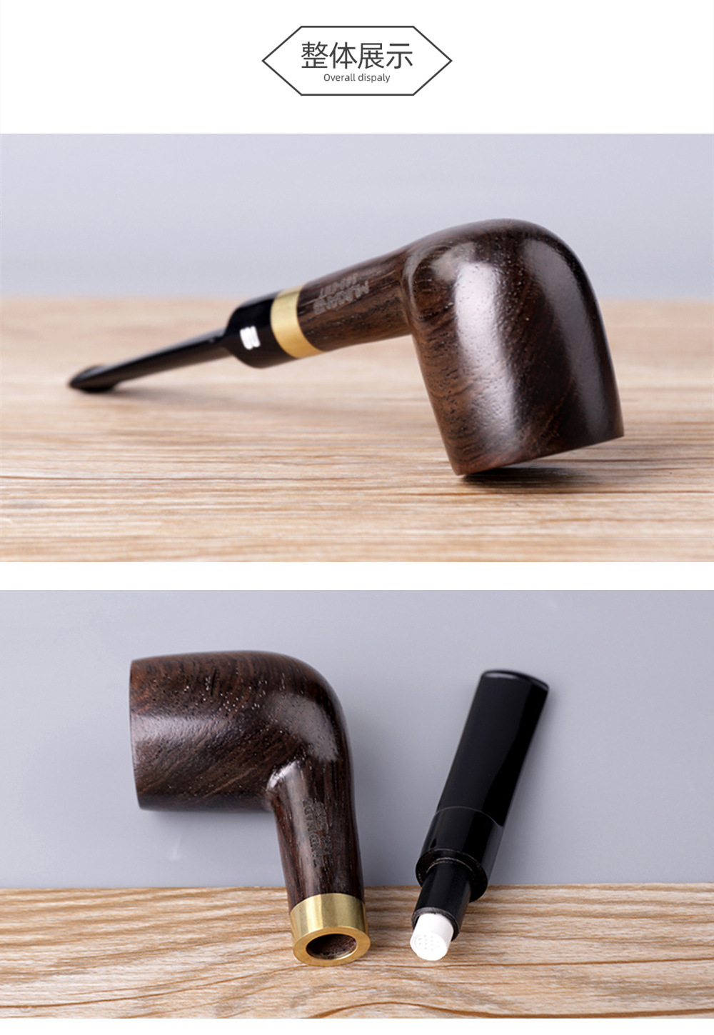 木香手工黑檀木烟斗木制烟具烟袋锅两用铜锅旱烟斗实木烟斗批发