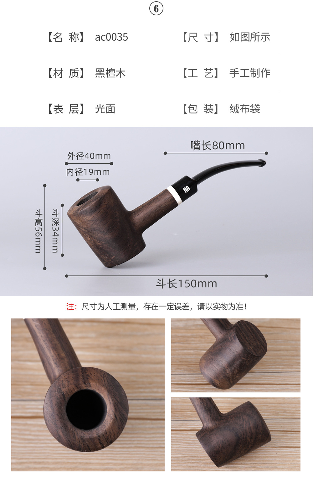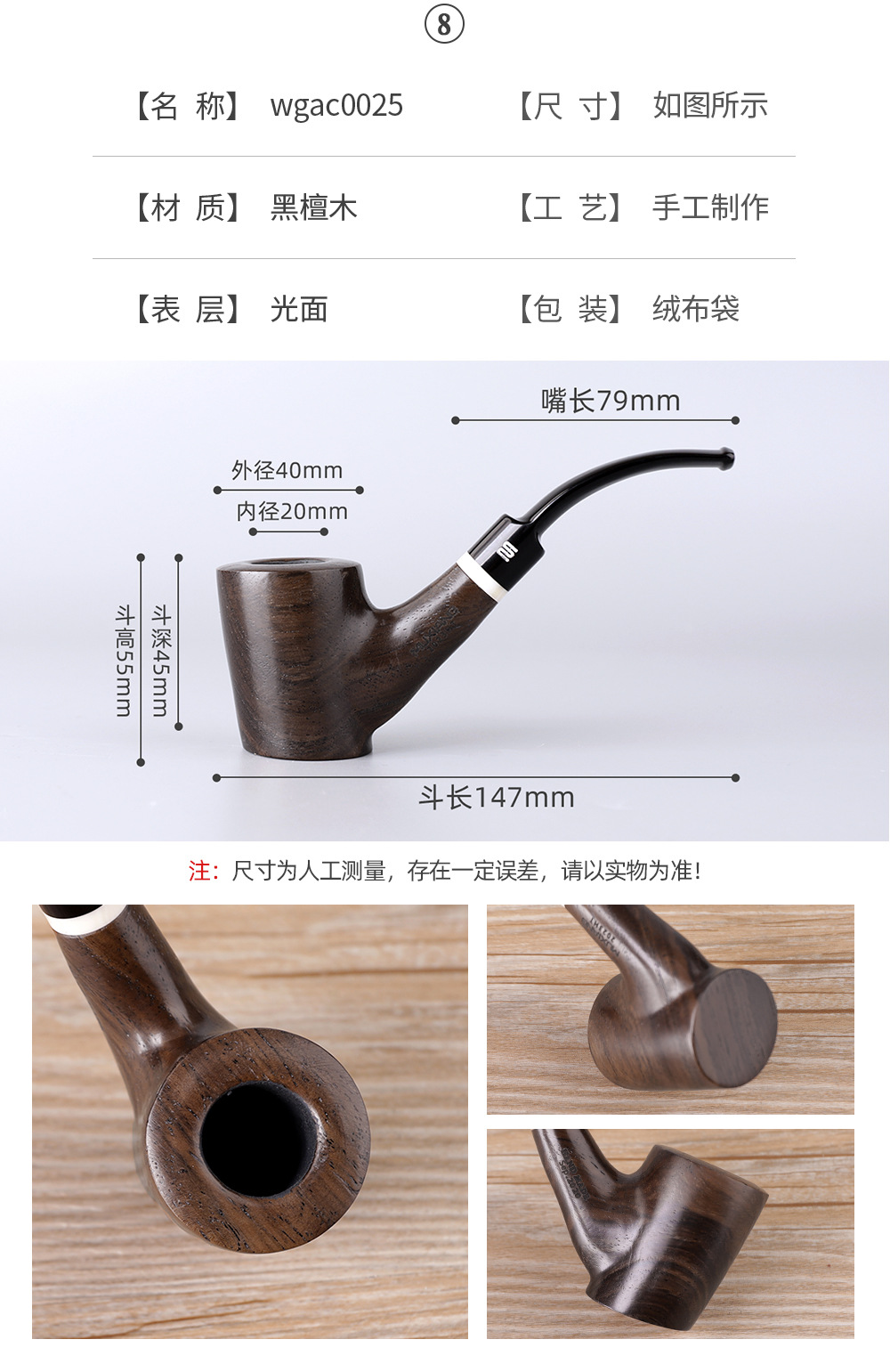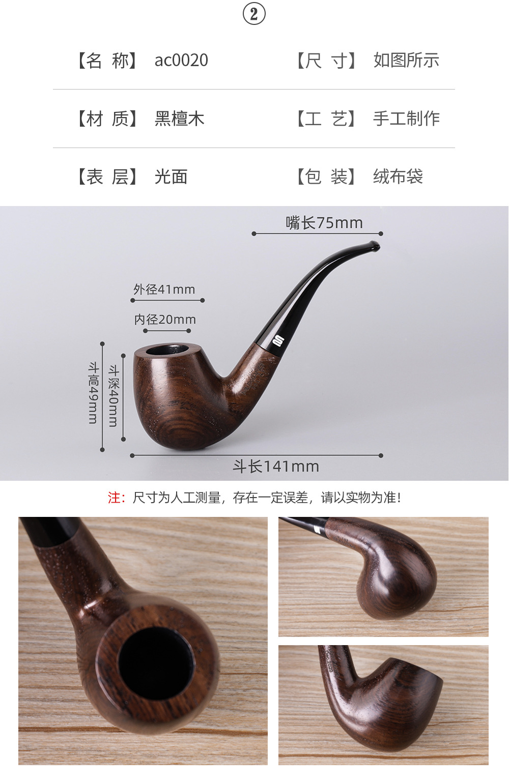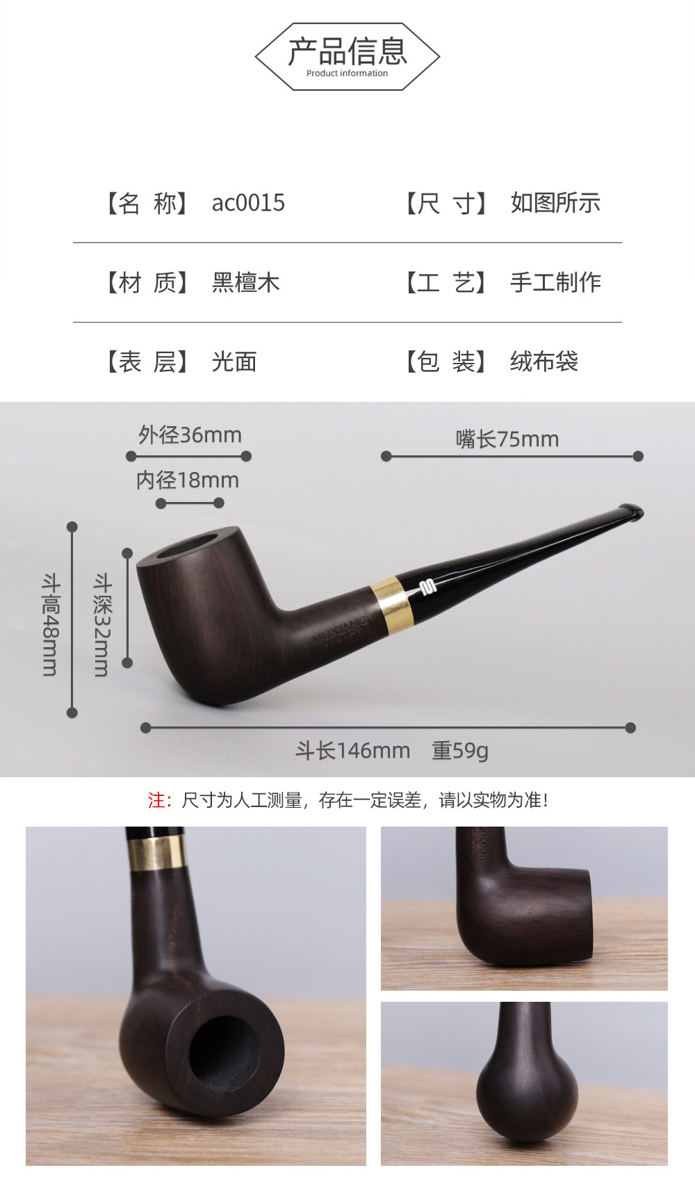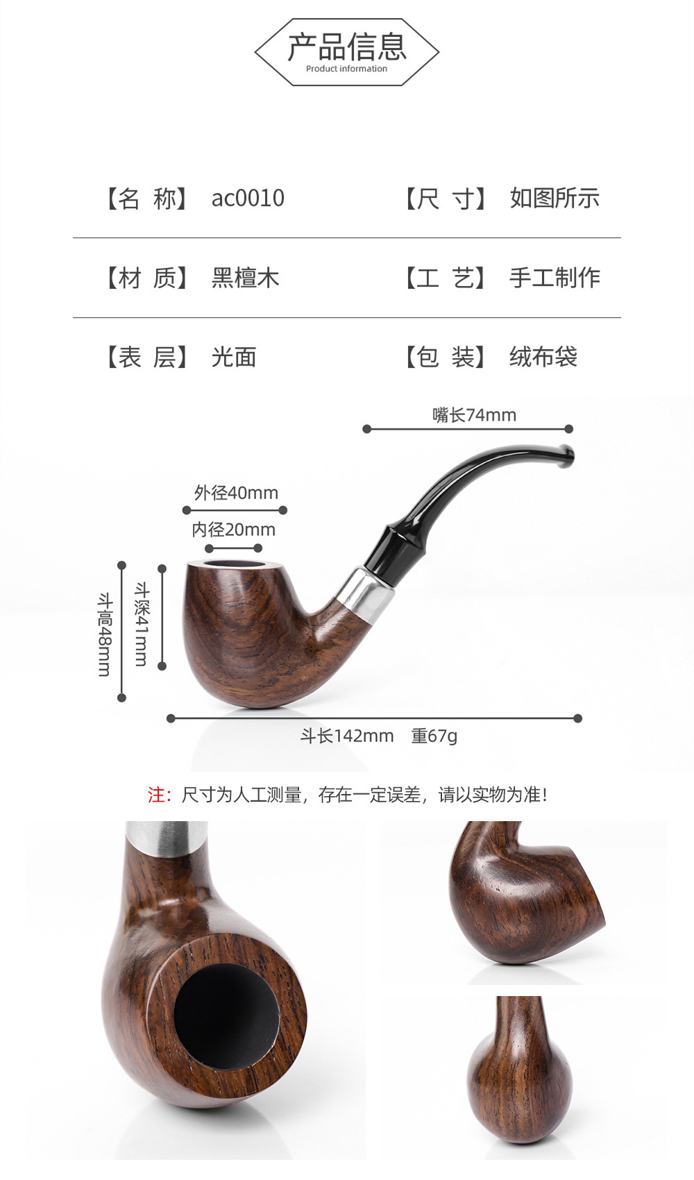 木香手工黑檀木烟斗木制烟具烟袋锅两用铜锅旱烟斗实木烟斗批发