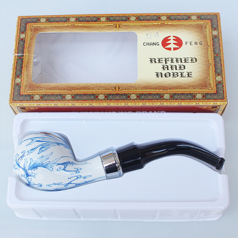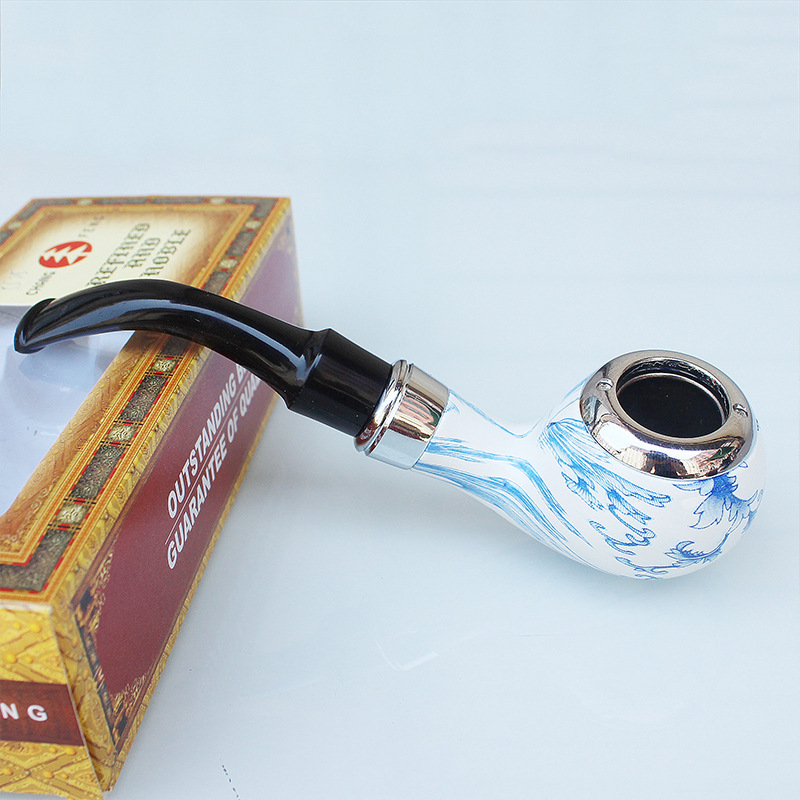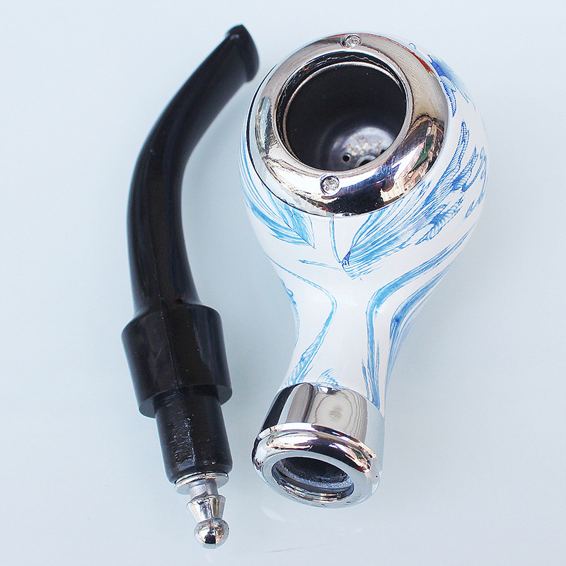 跨境热销青花瓷色胶木烟斗 经典弯式旱烟斗 CF5525 铁锅烟丝斗