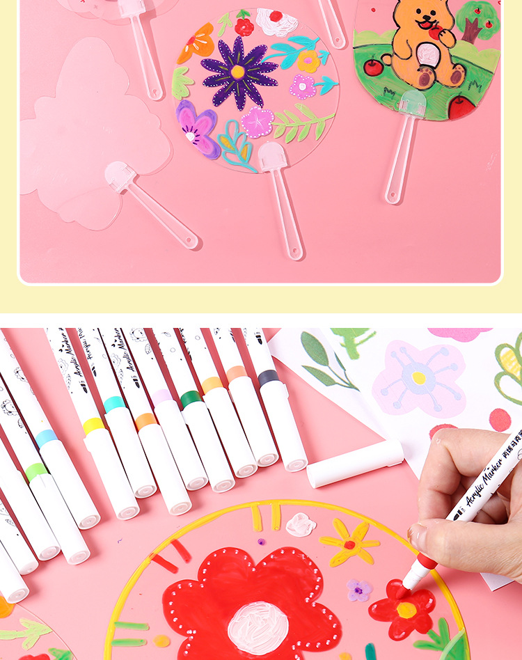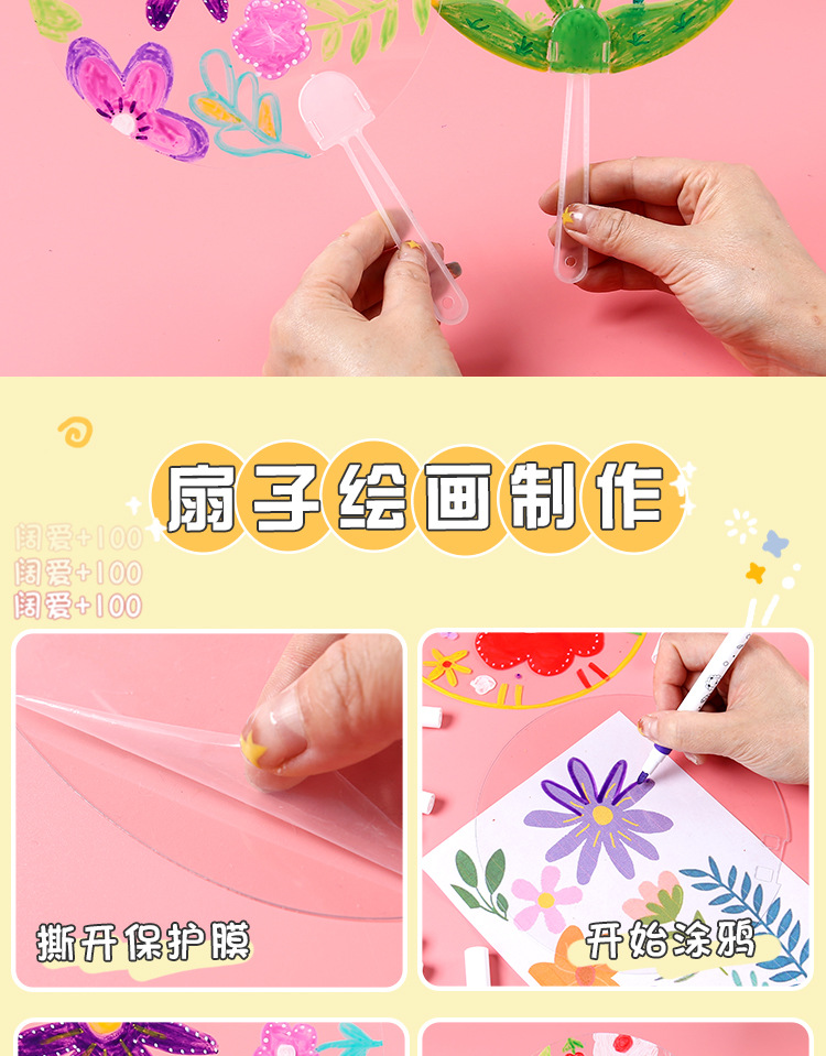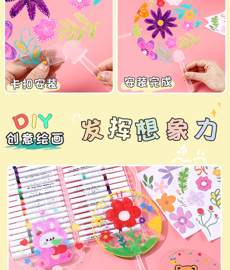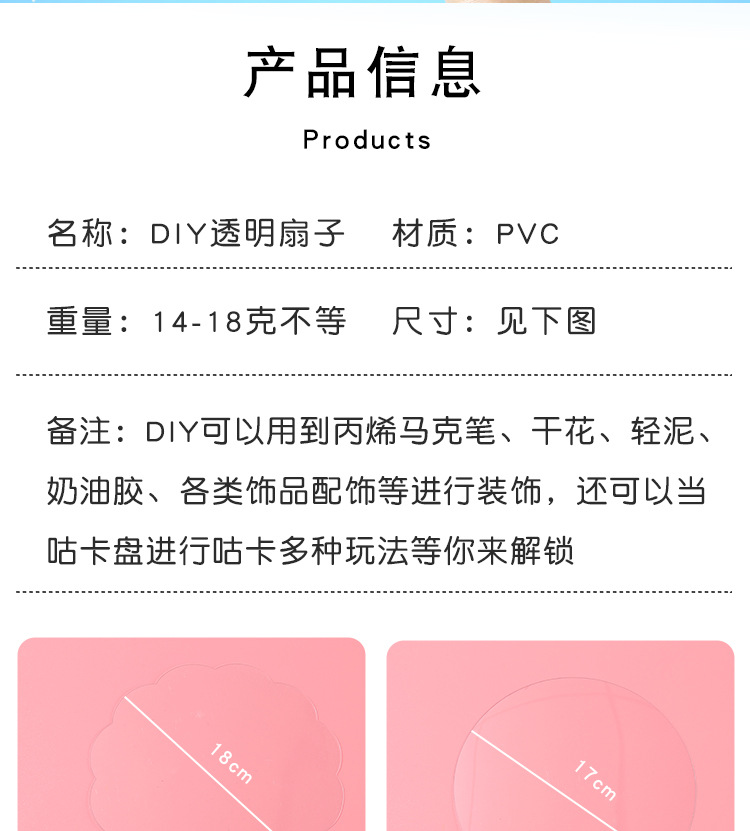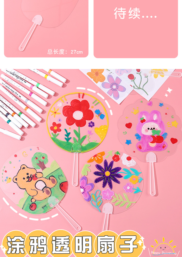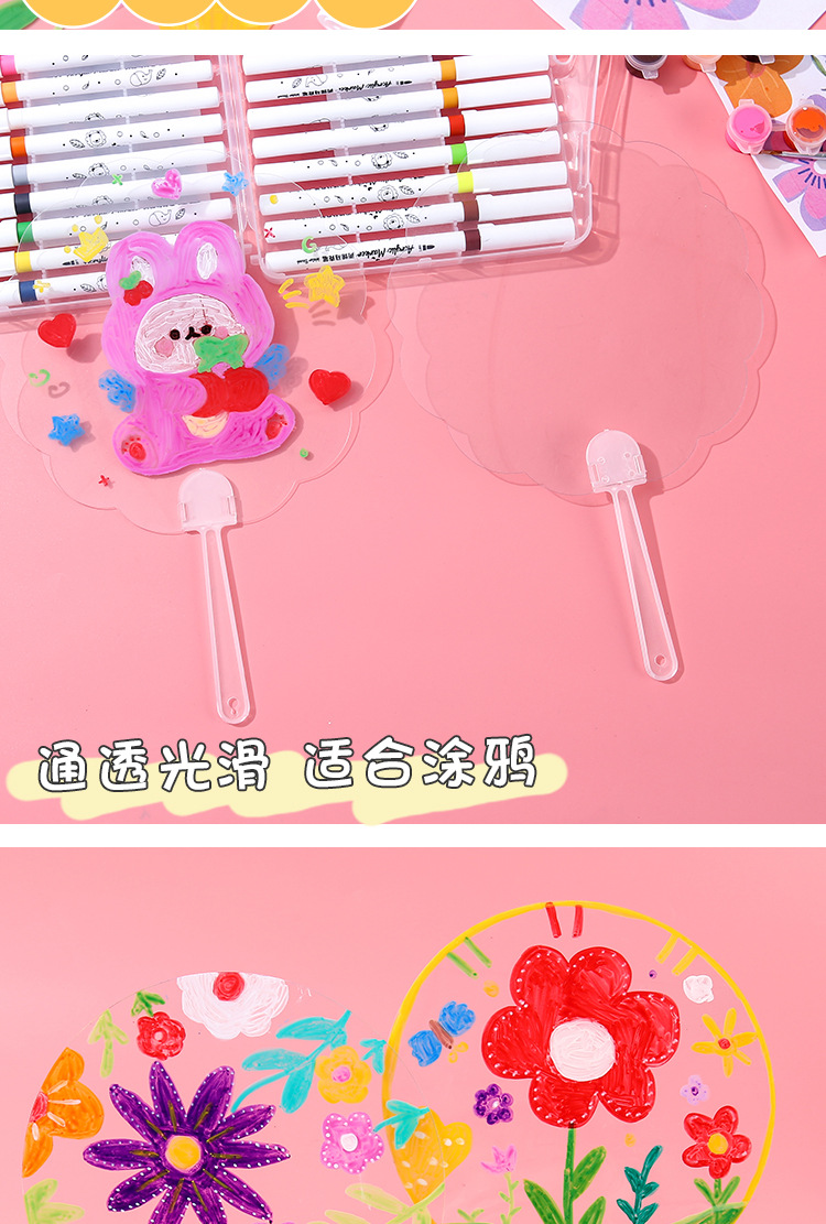 PVC透明涂鸦圆扇儿童手工绘画透明扇子涂鸦diy空白绘画团扇材料包