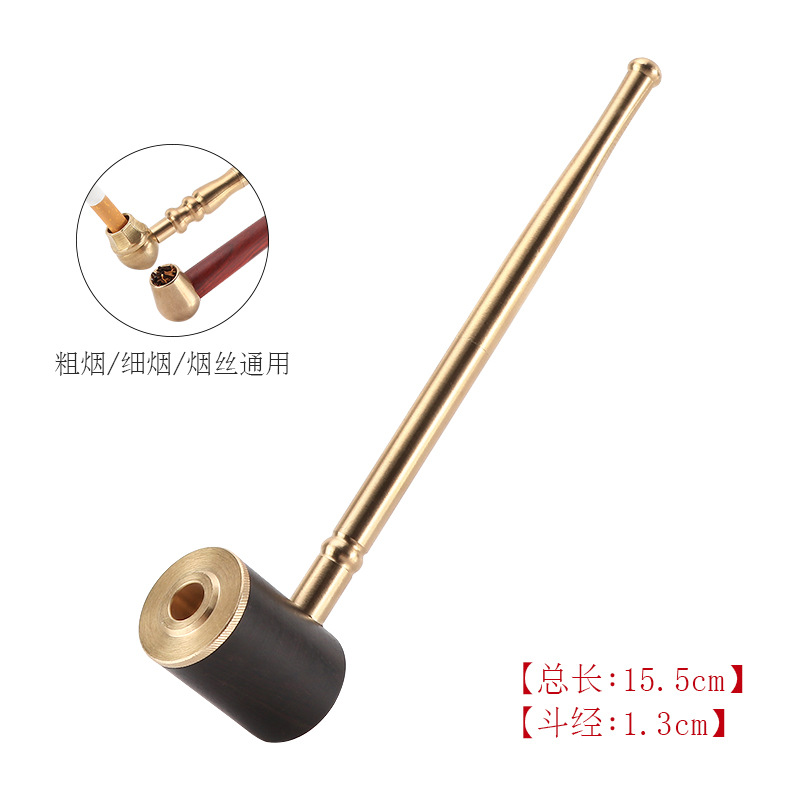 敦豪烟具黄铜两用旱烟杆烟袋 老式丝斗直杆铜烟锅粗烟男士铜烟斗