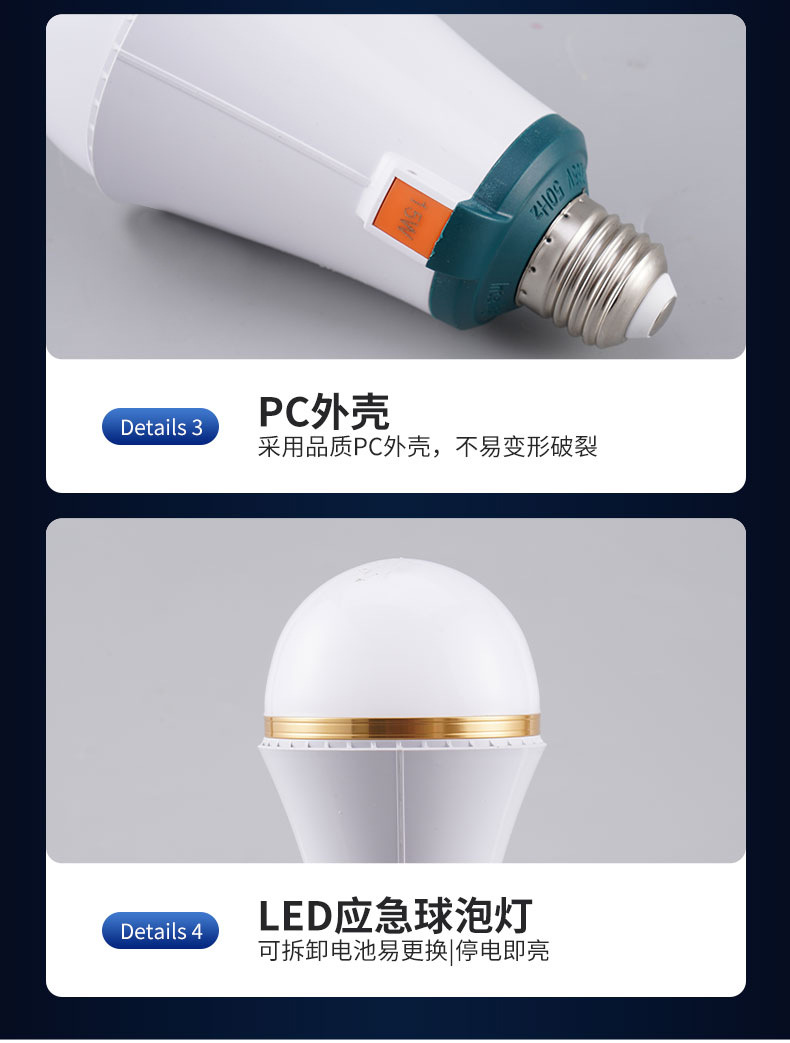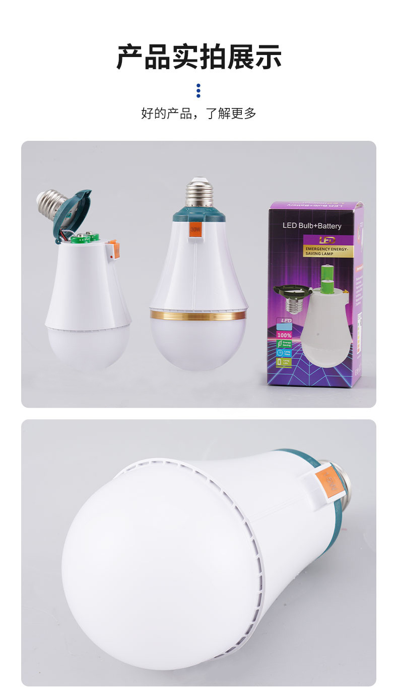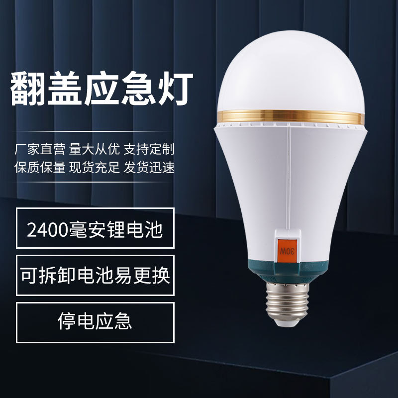 产品E27两节锂电池20W充电灯停电翻盖应急灯充电灯泡地摊灯泡定制