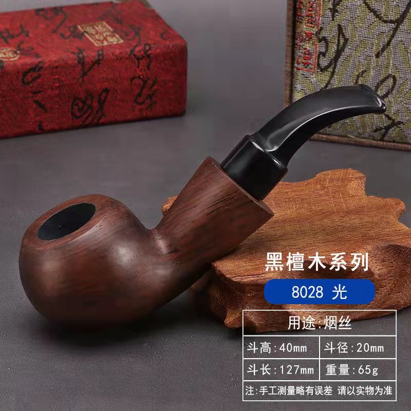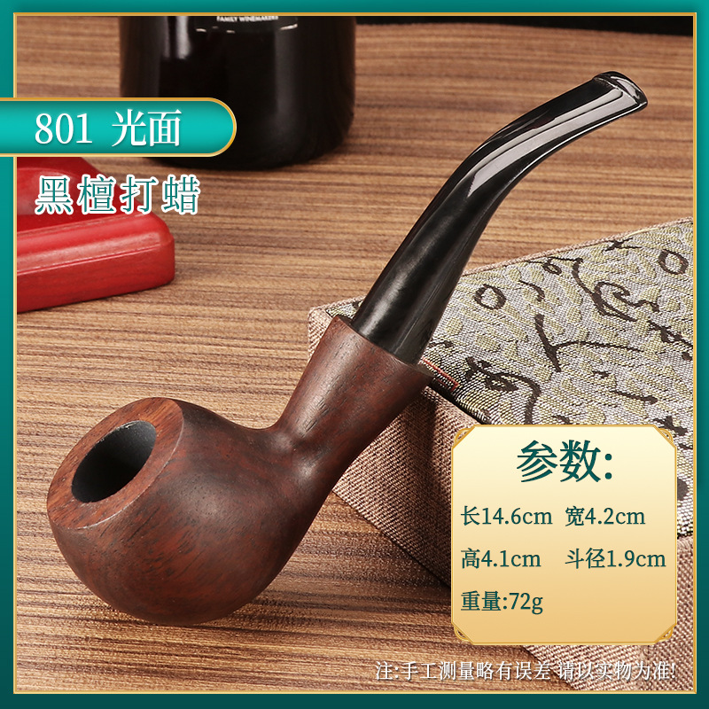 黑檀实木9MM活性炭过滤芯烟斗木质打蜡不喷漆烟丝锅男士实用烟杆