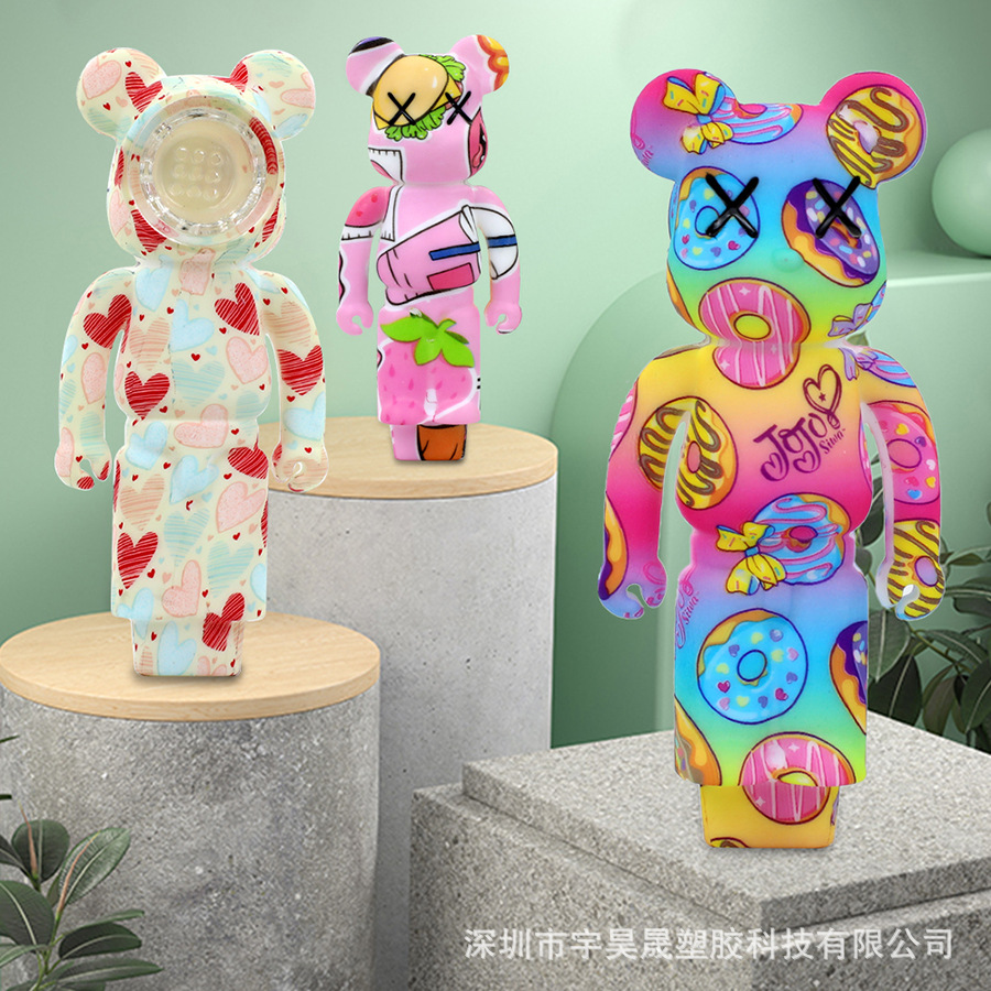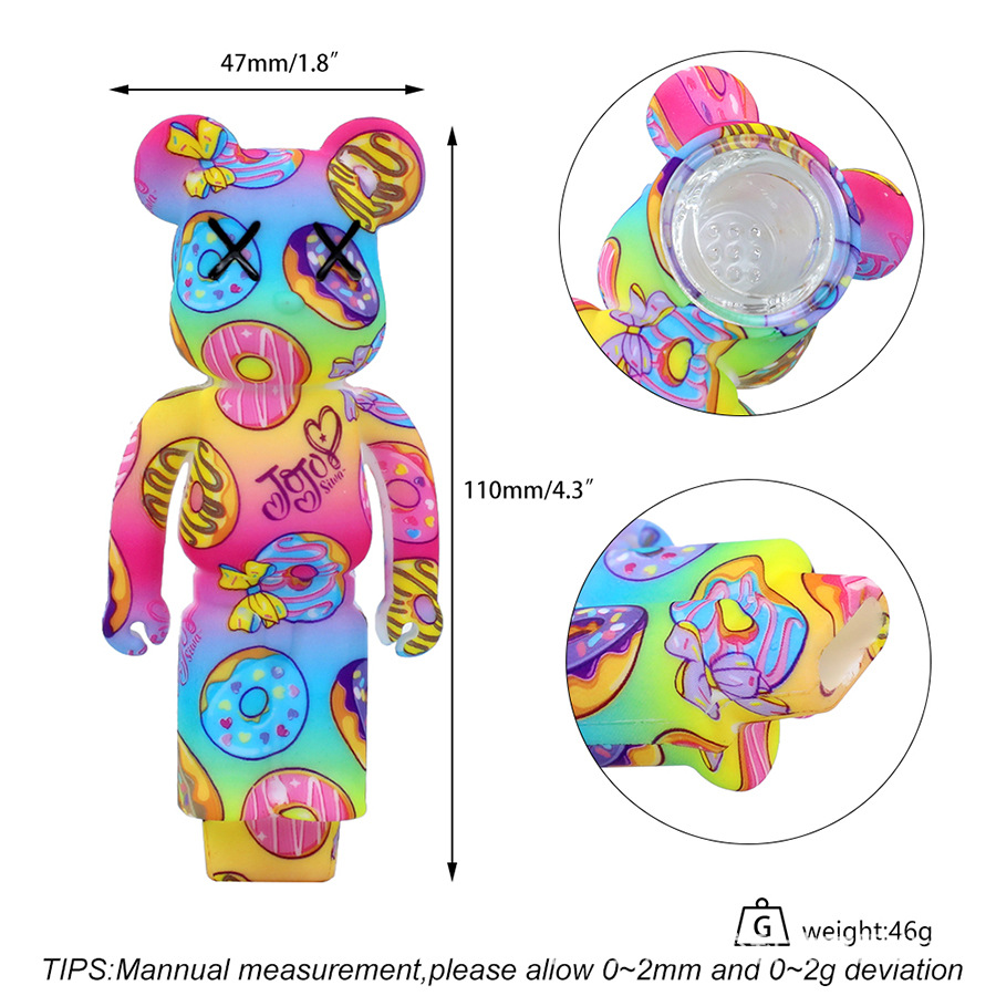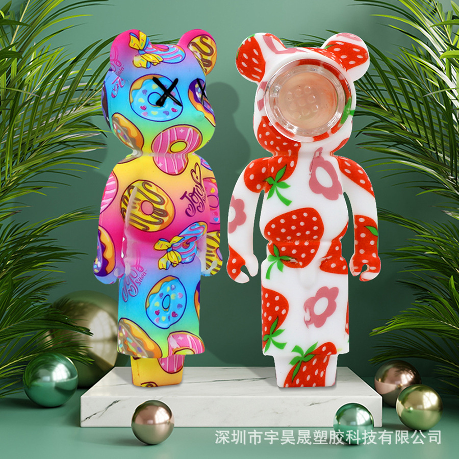 厂家直销创意暴力熊硅胶混色烟杆玻璃烟斗配件玻璃碗可拆卸烟具