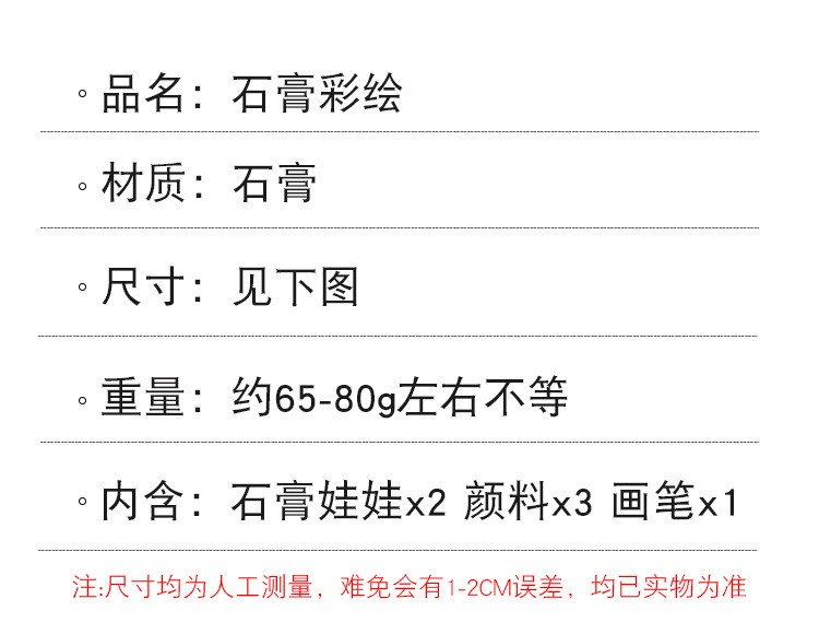 六一儿童节礼物diy手工彩绘涂色石膏娃娃白坯幼儿园卡通涂鸦玩具