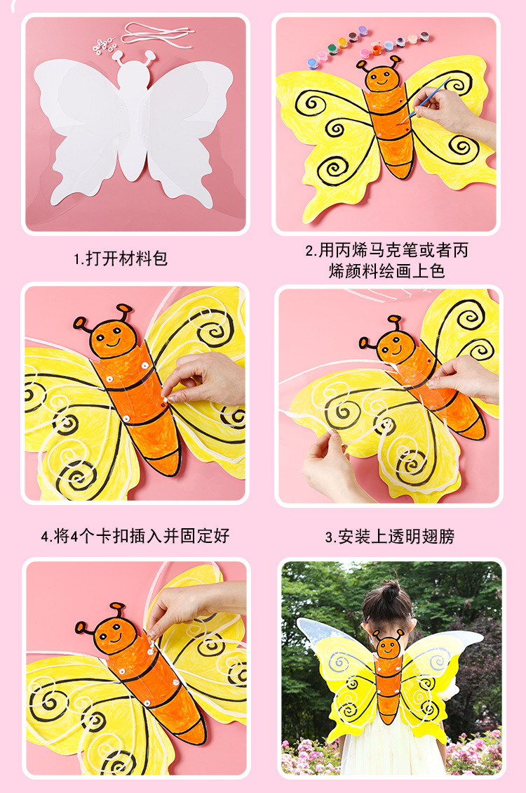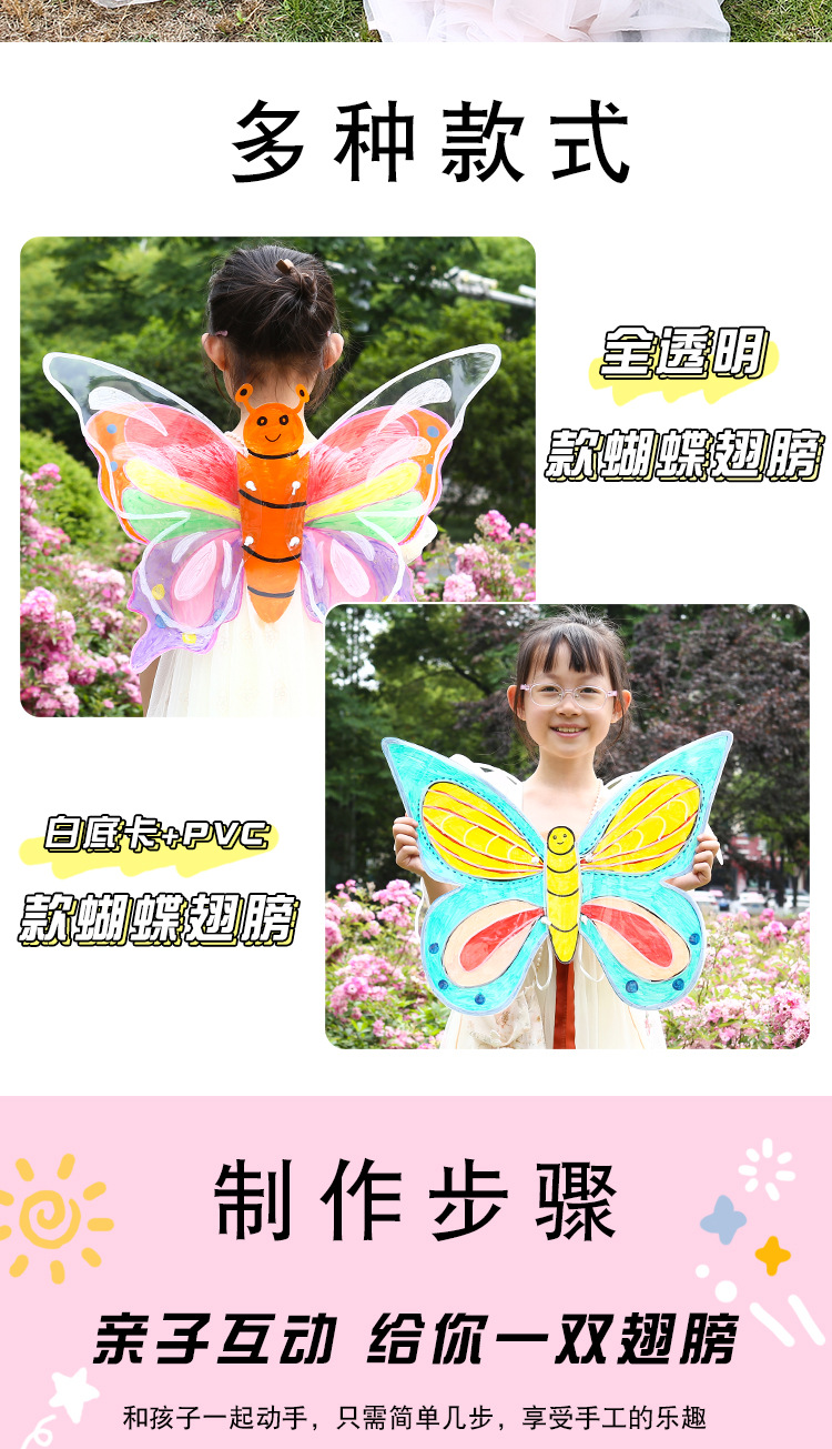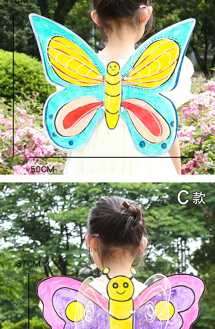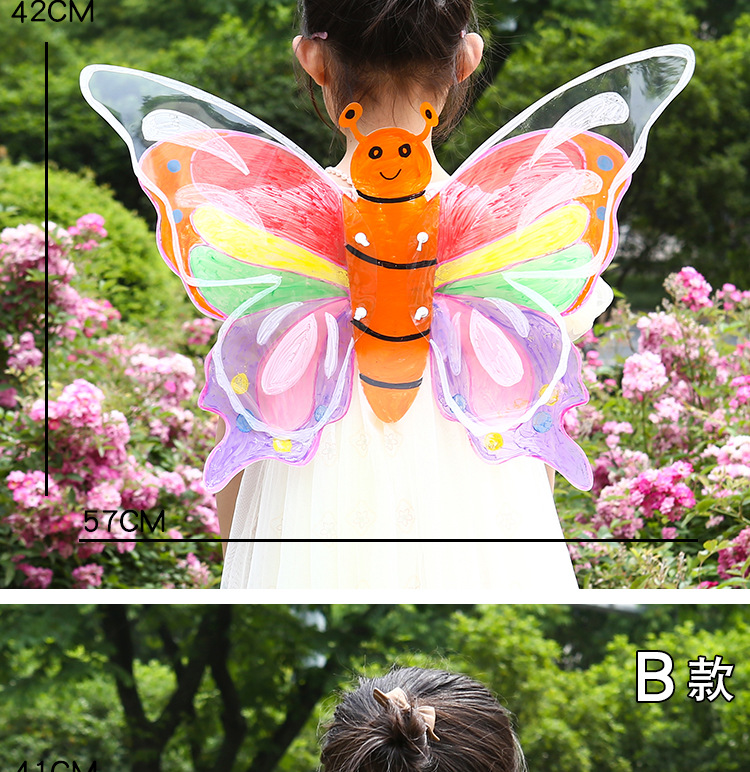 手工diy彩绘透明蝴蝶翅膀儿童立体彩绘翅膀材料包美术绘画玩具