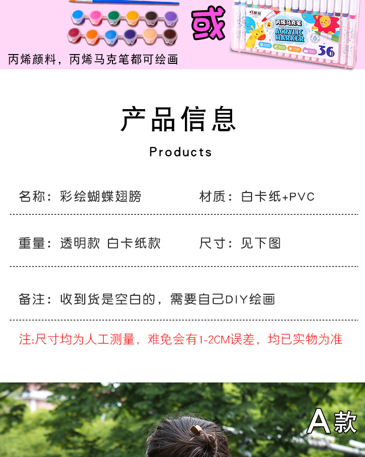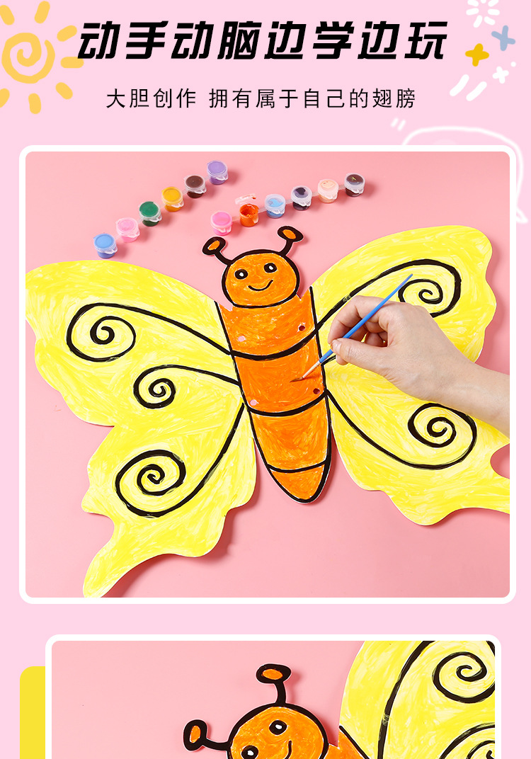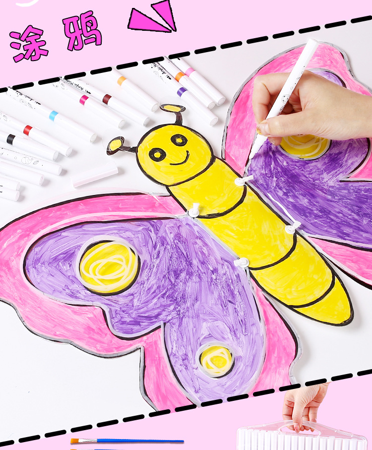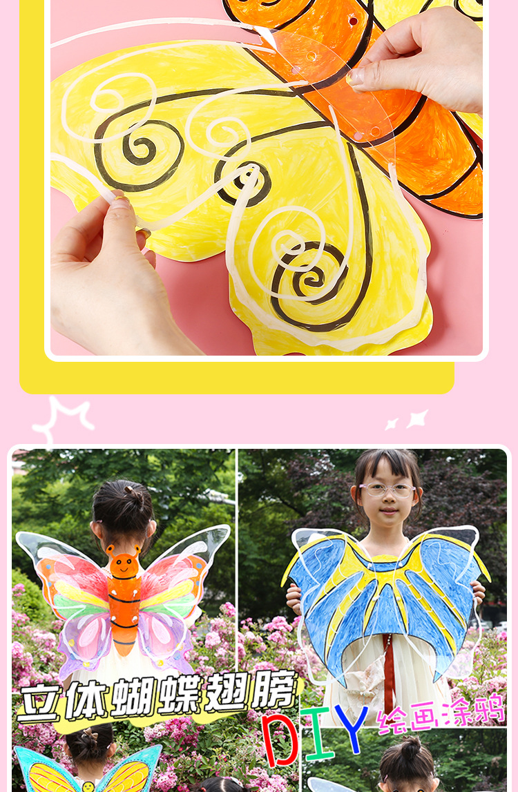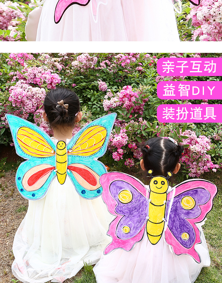 手工diy彩绘透明蝴蝶翅膀儿童立体彩绘翅膀材料包美术绘画玩具