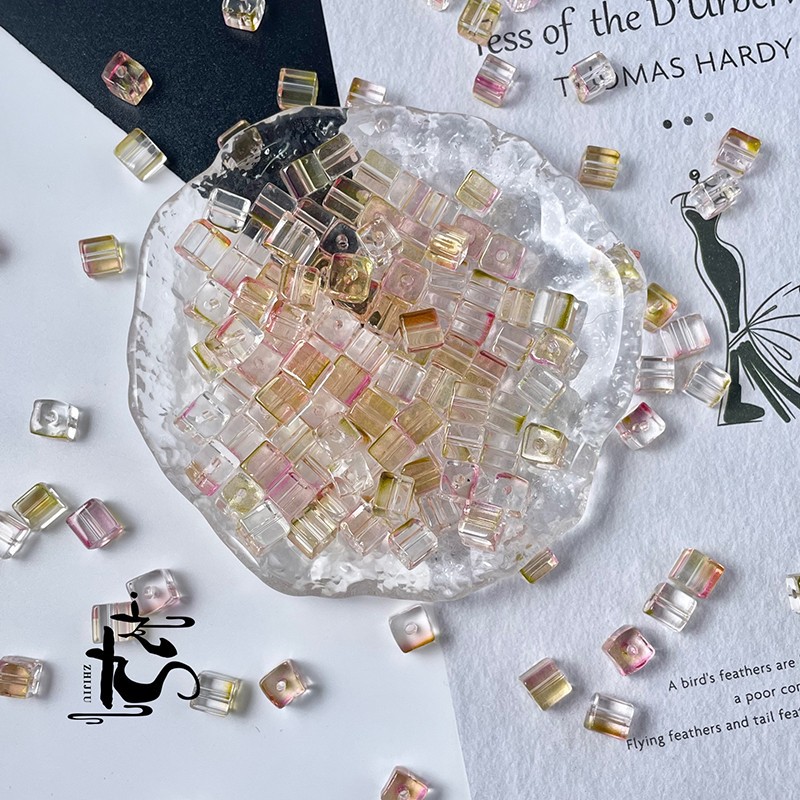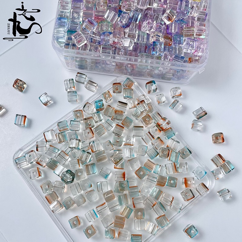 厂家批发琉璃方糖6mm正方形水晶散珠子diy手工串珠手链制作材料